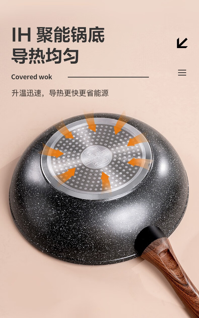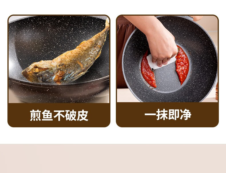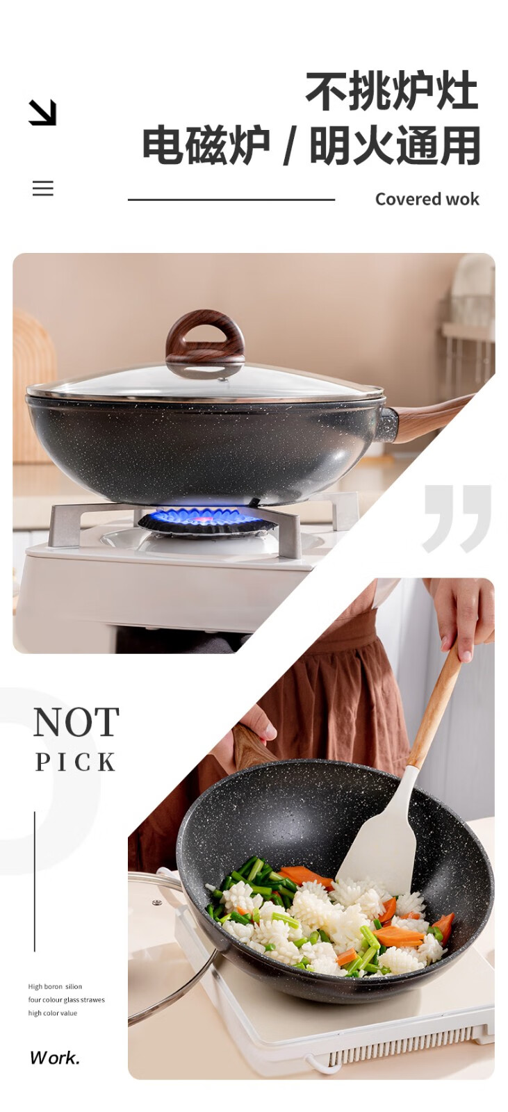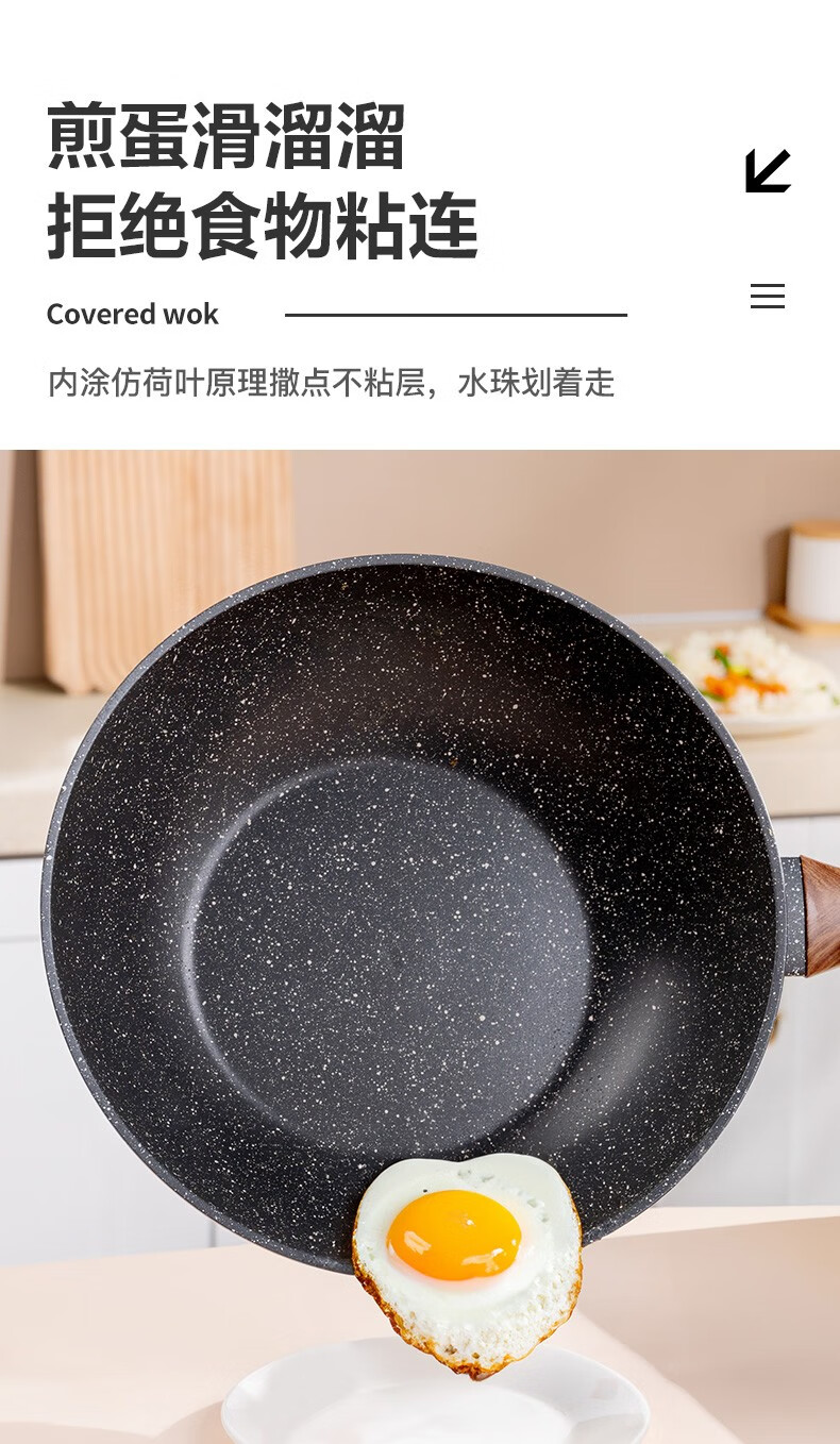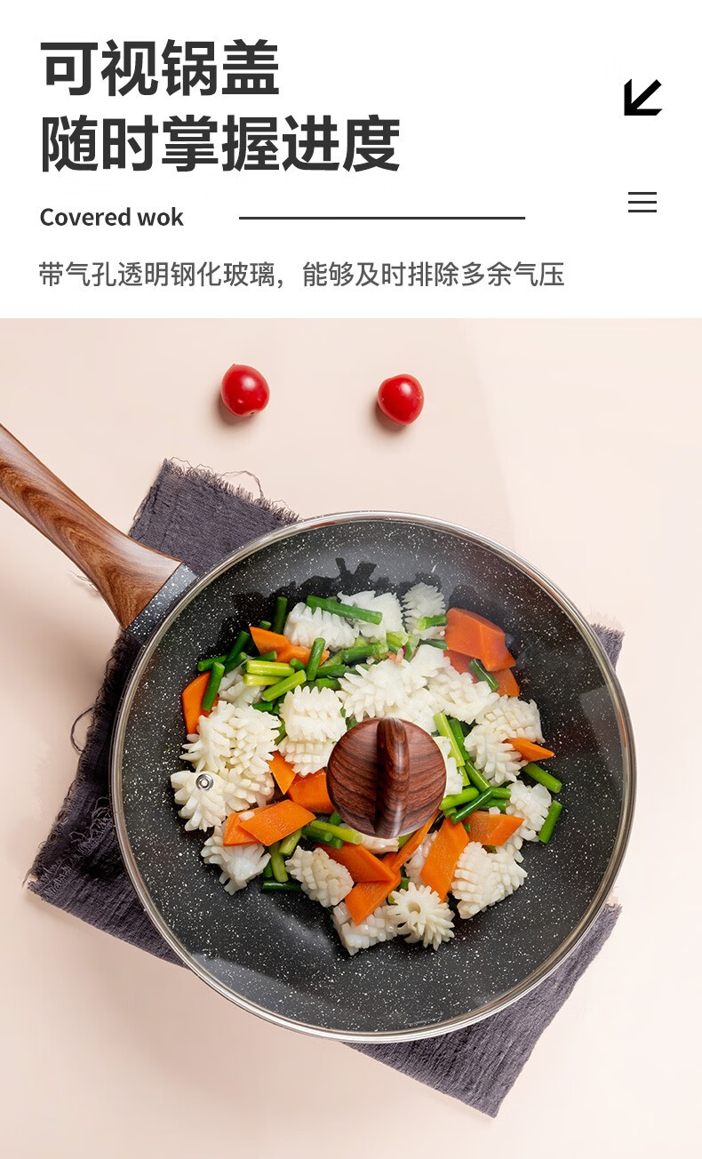 章丘炒菜锅传统老式炒锅家用锤花纹不粘铁锅无涂层锅燃气灶适用 【鱼鳞款】+锅盖(电磁炉燃气灶通用) 34cm