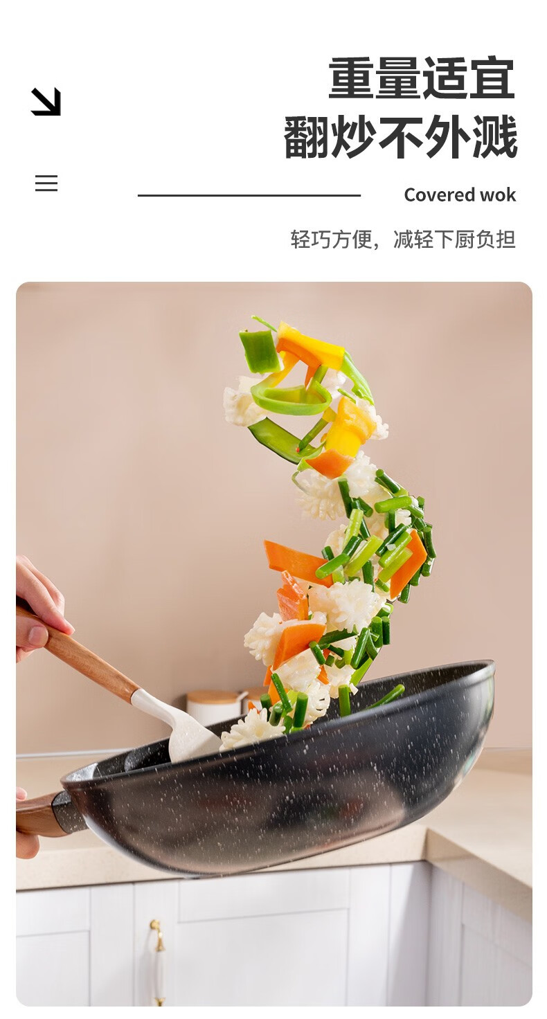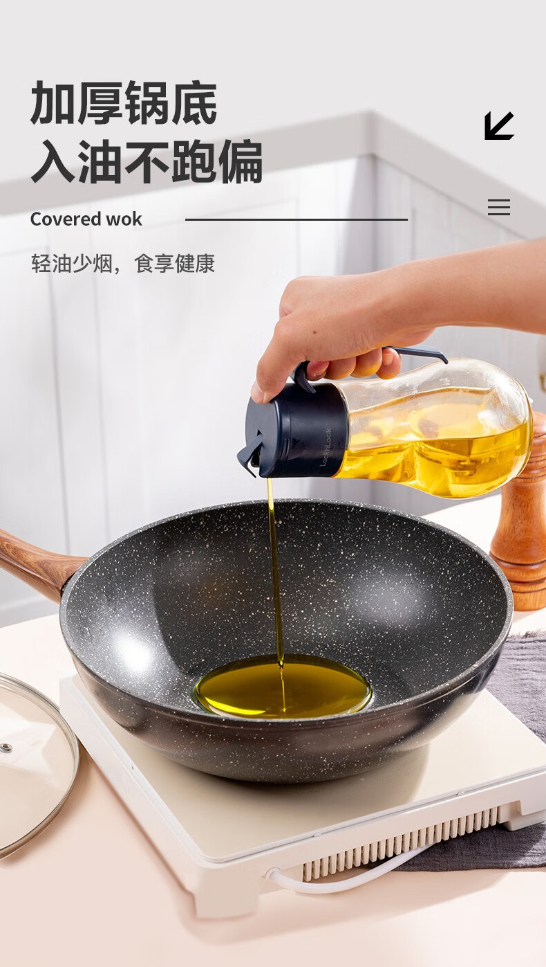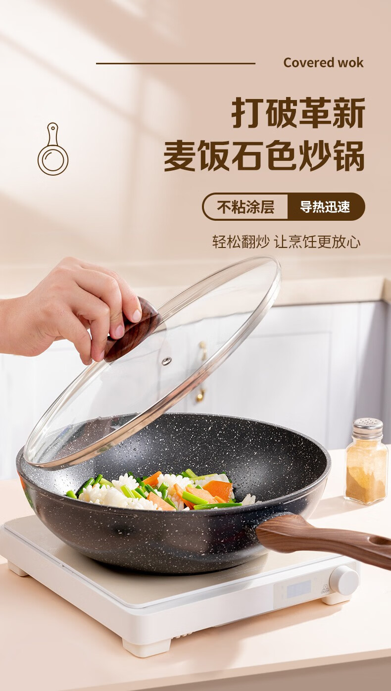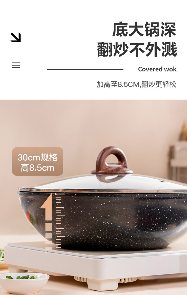 乐扣乐扣不粘锅炒锅麦饭石色炒菜锅家用不沾锅电磁炉燃气通用 【带硅胶铲】 30cm