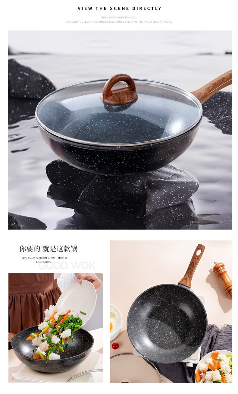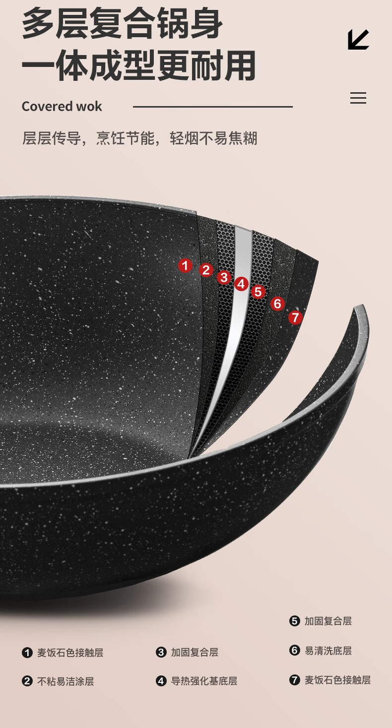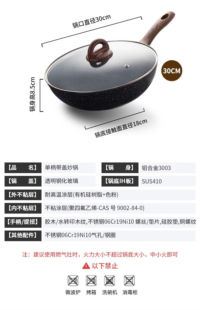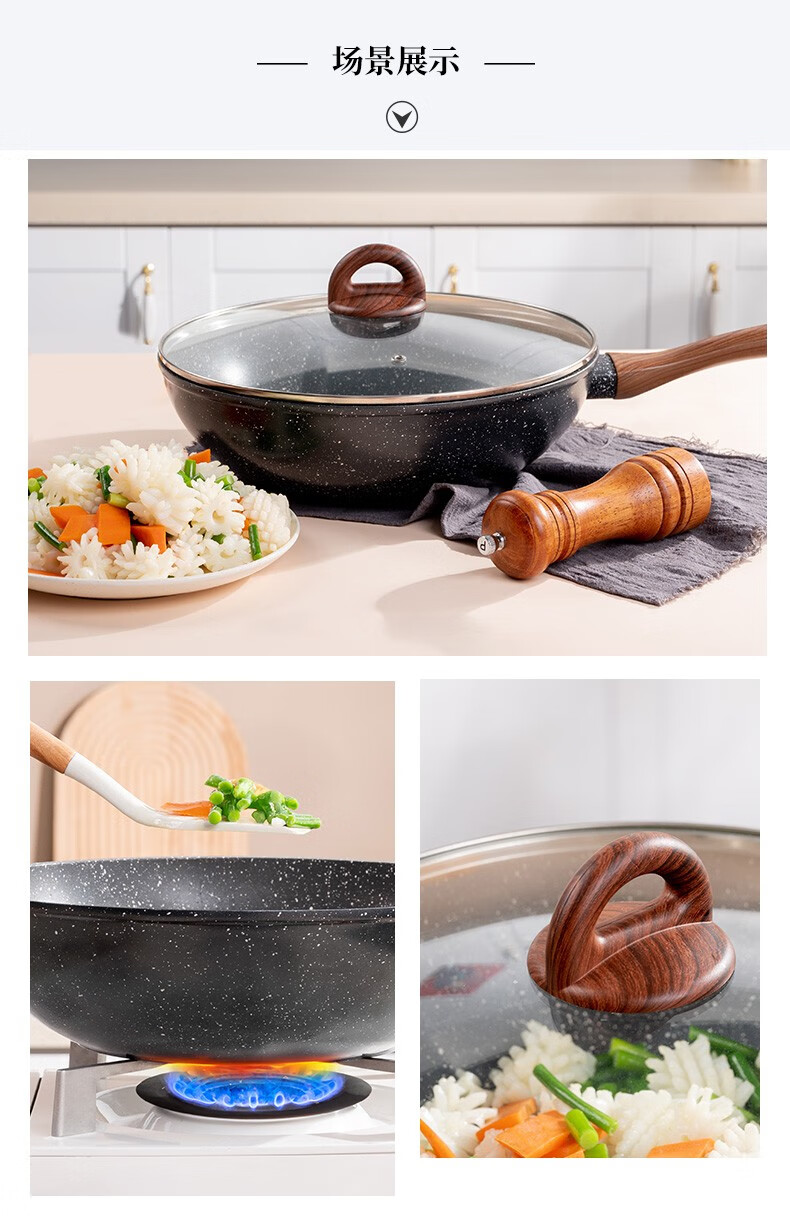 乐扣乐扣不粘锅炒锅麦饭石色炒菜锅家用不沾锅电磁炉燃气通用 【带硅胶铲】 30cm