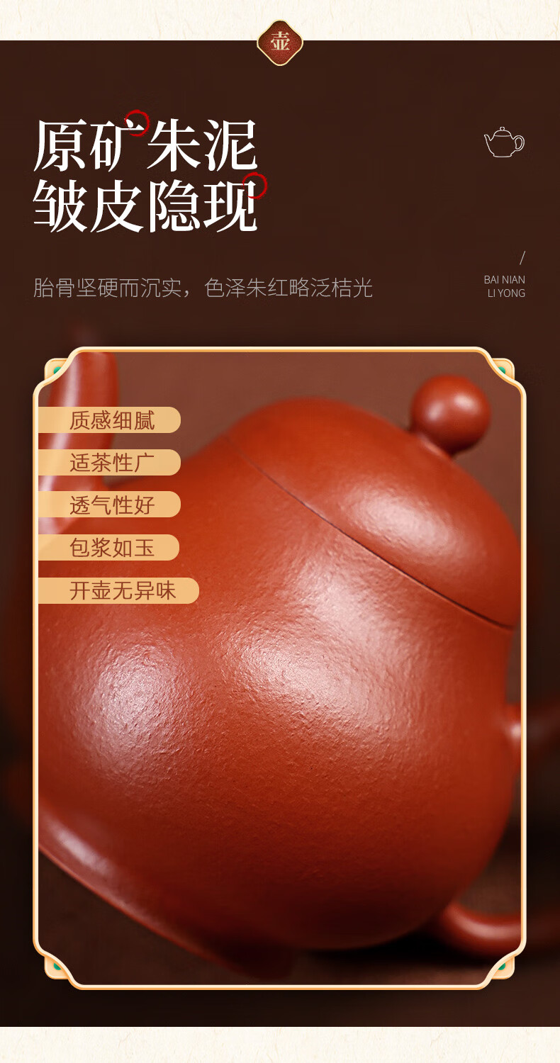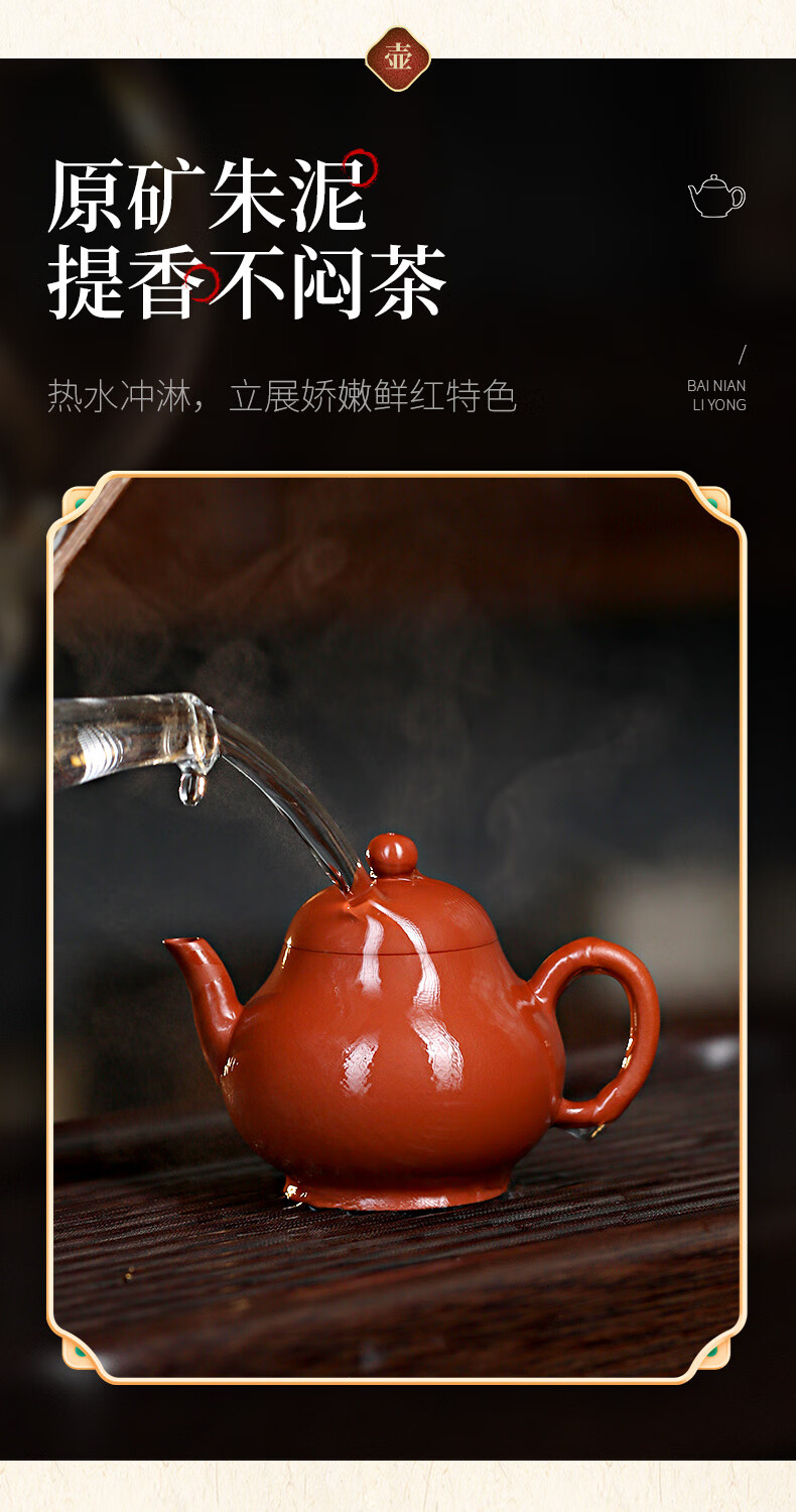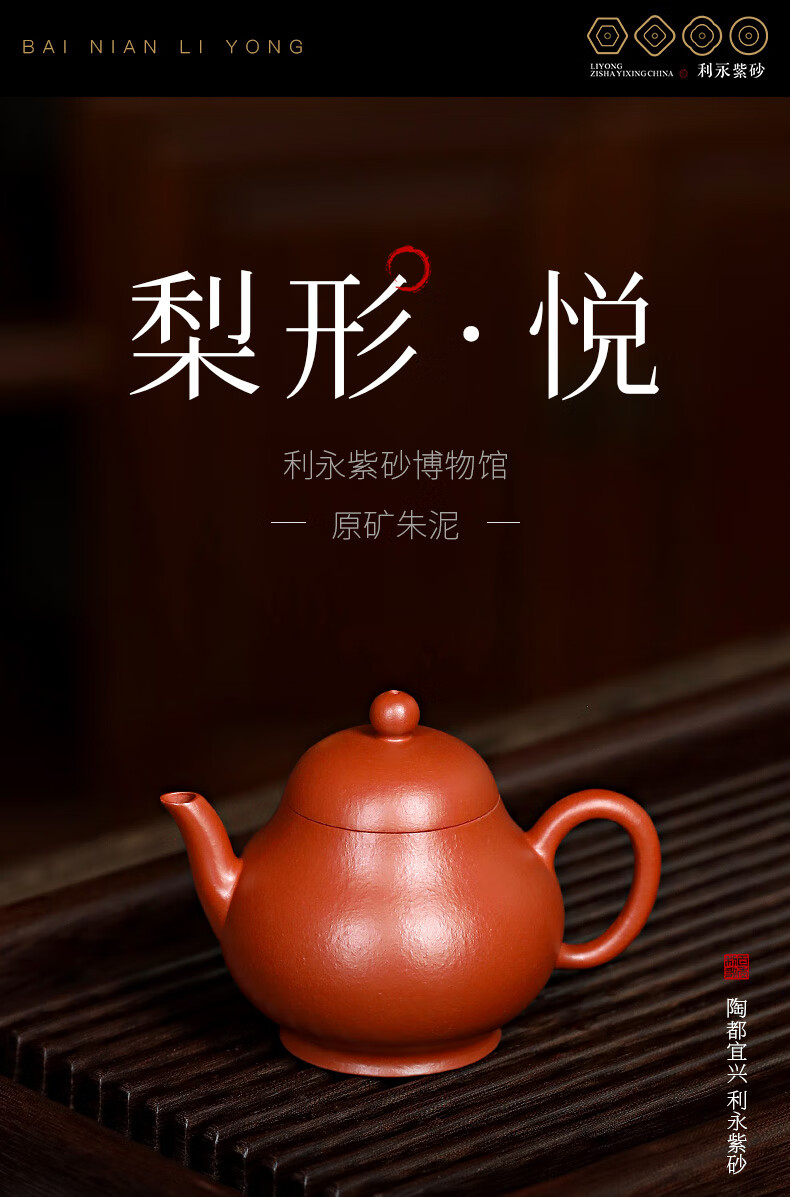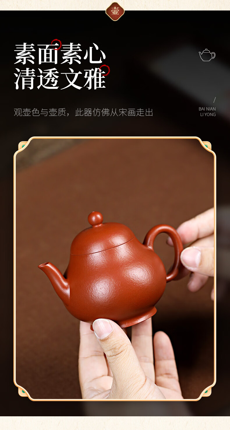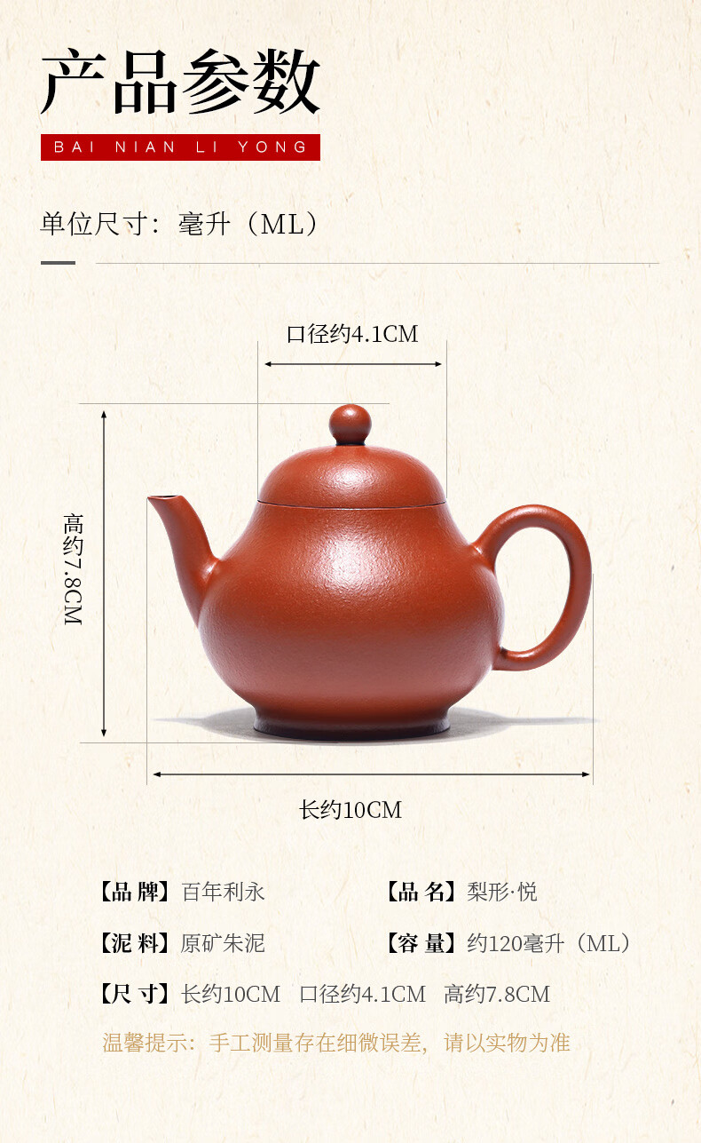 百年利永宜兴纯全手工紫砂壶原矿朱泥梨形壶功夫茶具泡茶送长辈120cc 梨形·悦-朱泥 120ml