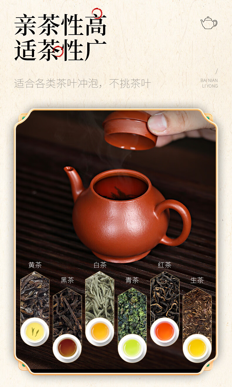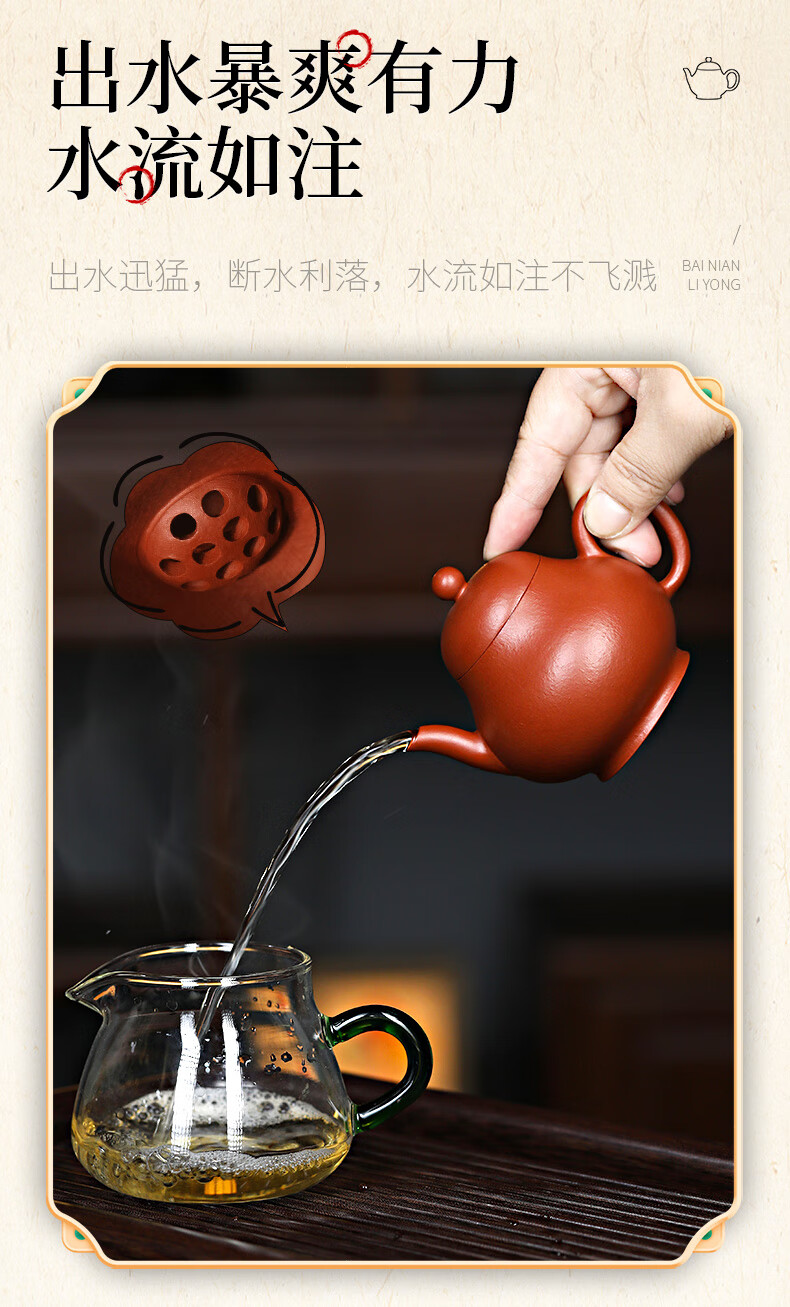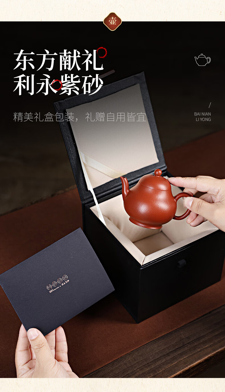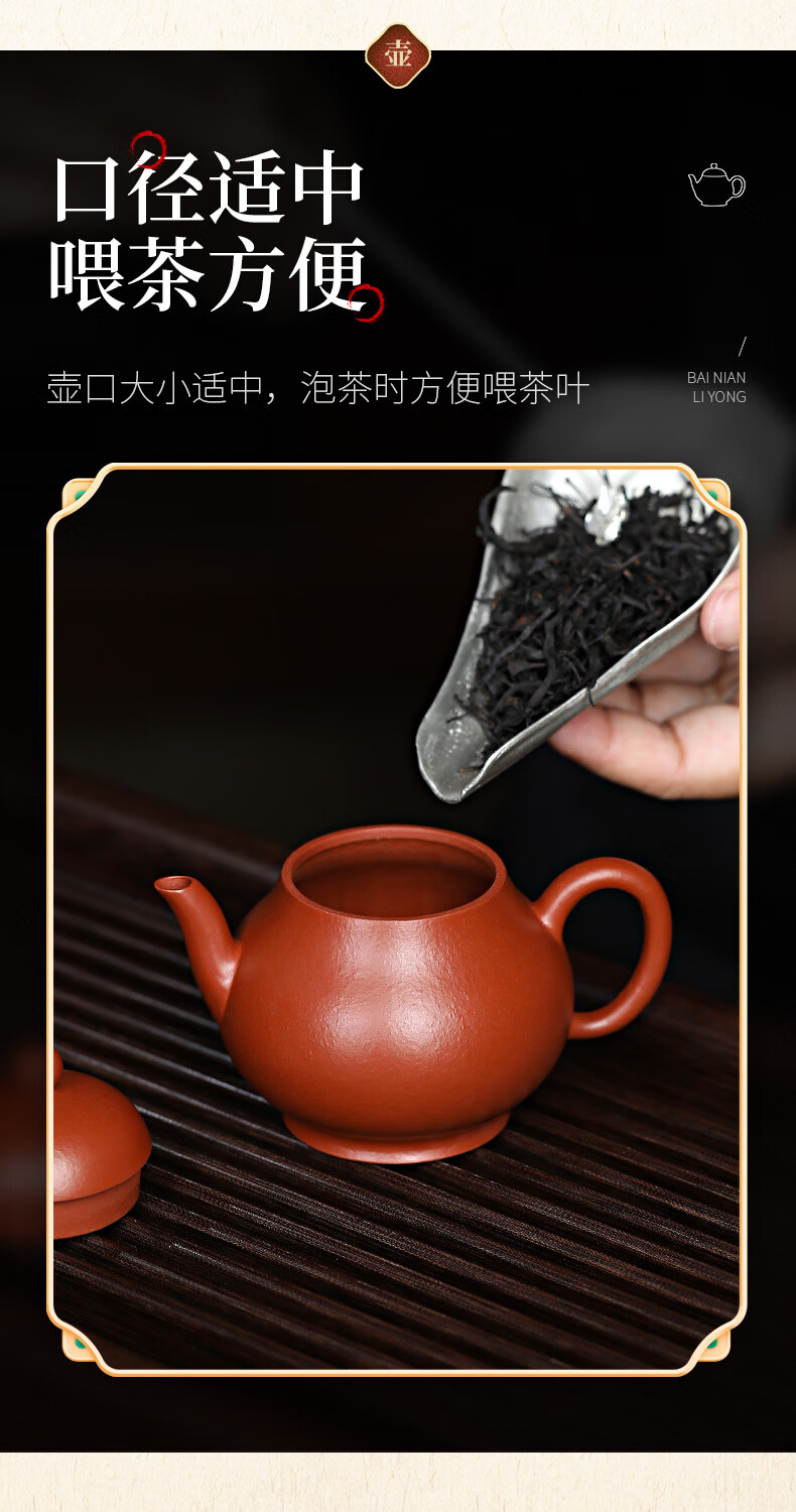 百年利永宜兴纯全手工紫砂壶原矿朱泥梨形壶功夫茶具泡茶送长辈120cc 梨形·悦-朱泥 120ml