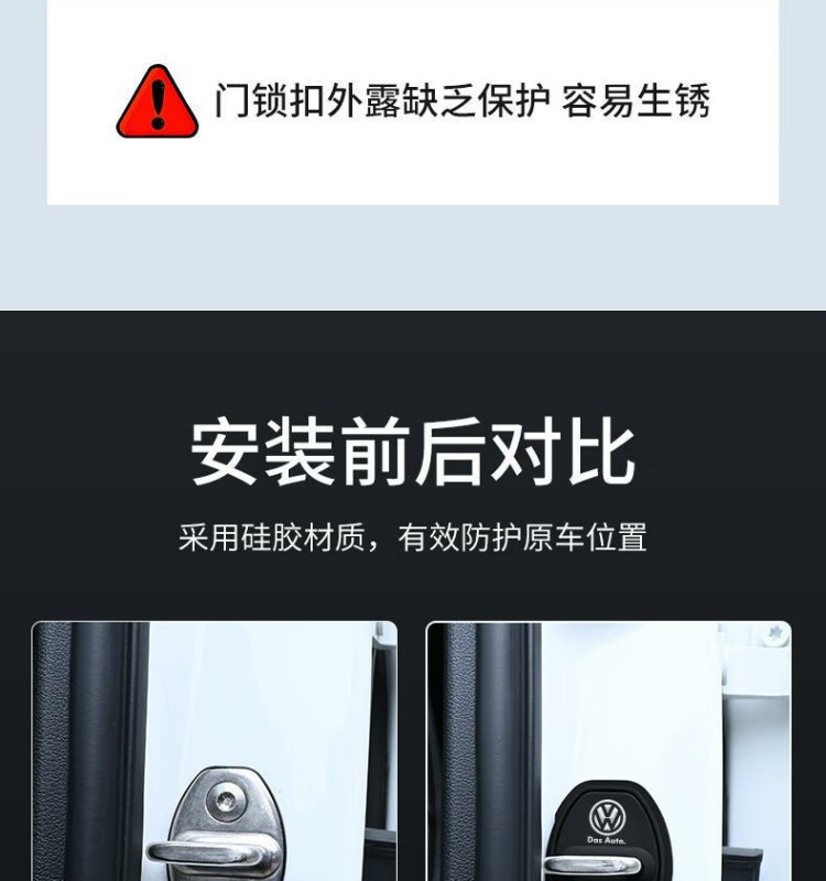 适用大众硅胶门锁扣盖朗逸速腾宝来迈腾途观探岳帕萨特减震保护套 大众硅胶门锁盖4个【大众款】