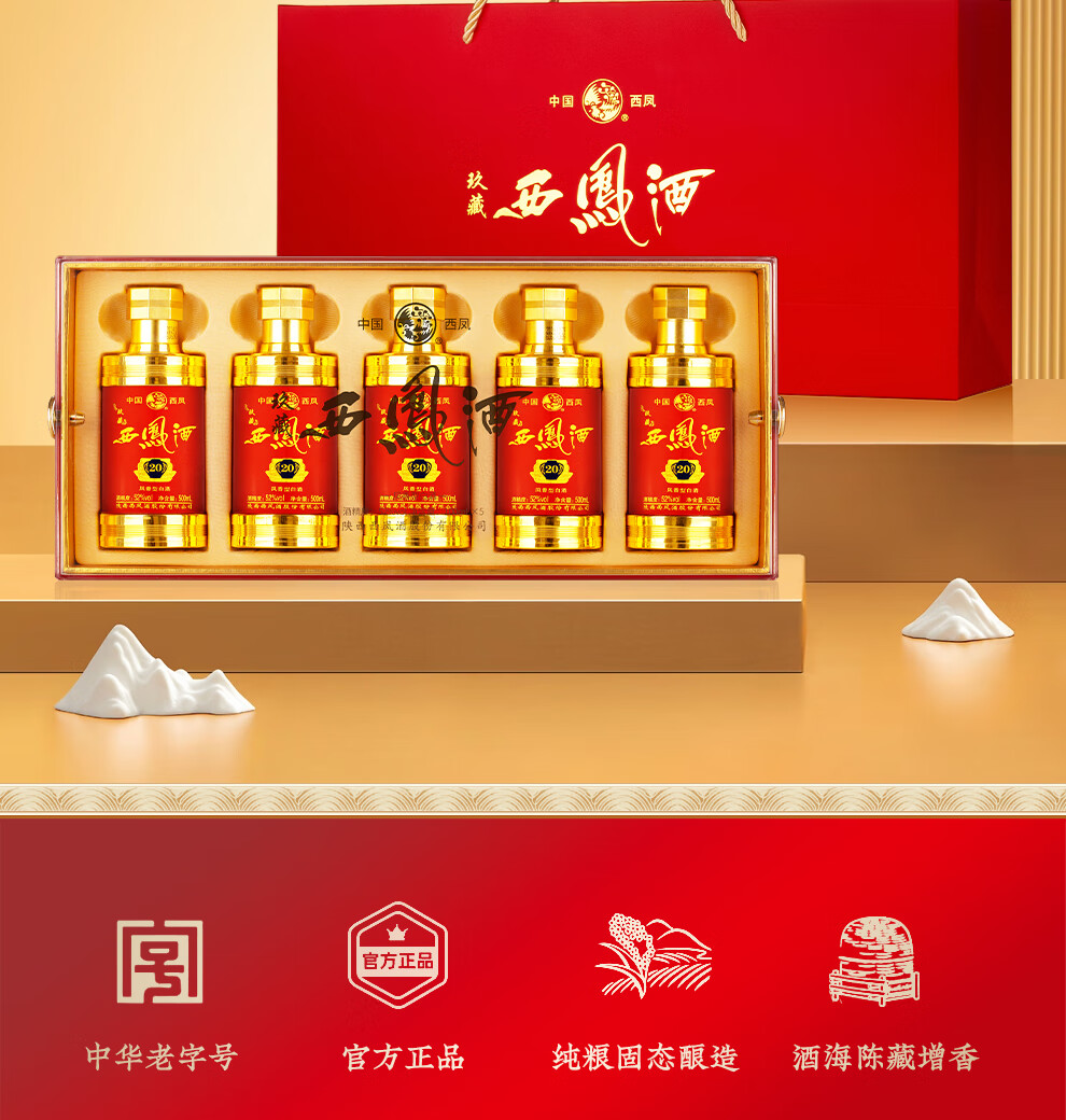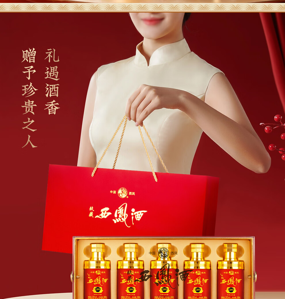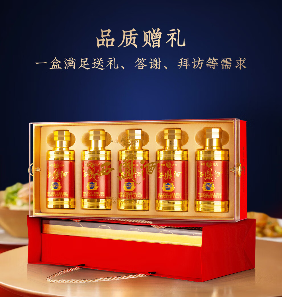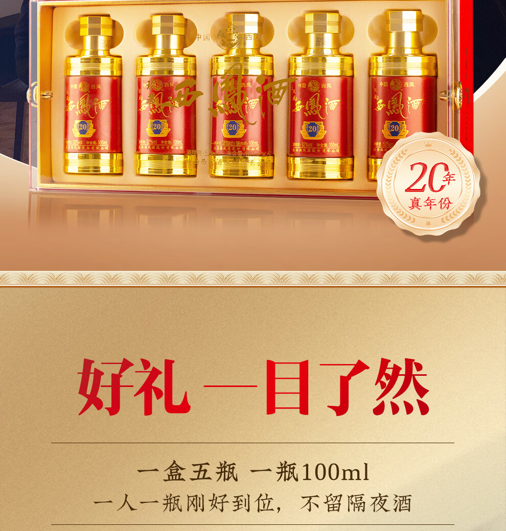 西凤酒20年52度玖藏西凤酒高端白酒礼盒2瓶装纯粮商务宴升学宴请送礼 52度 100mL 5瓶 五福临门五支装