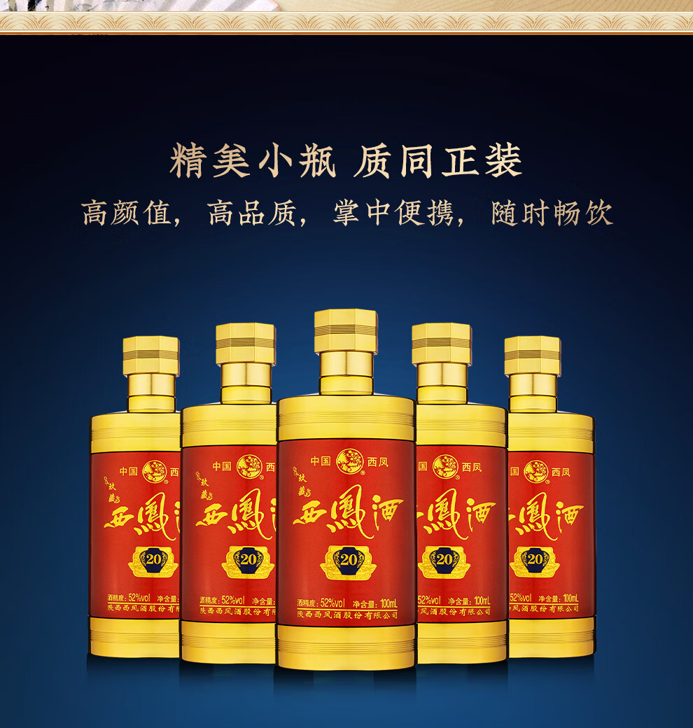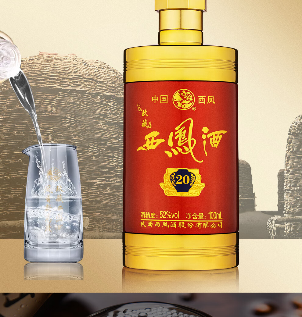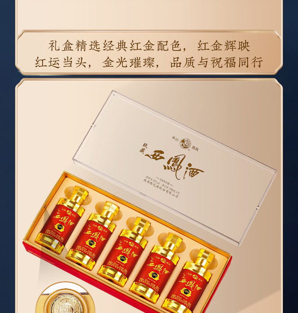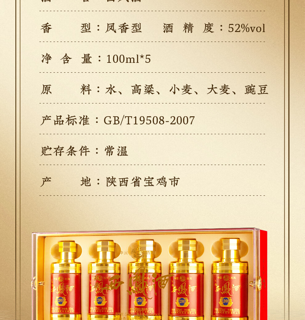 西凤酒20年52度玖藏西凤酒高端白酒礼盒2瓶装纯粮商务宴升学宴请送礼 52度 100mL 5瓶 五福临门五支装