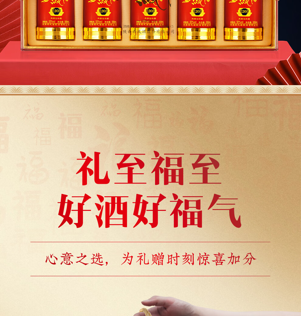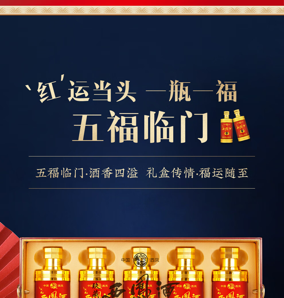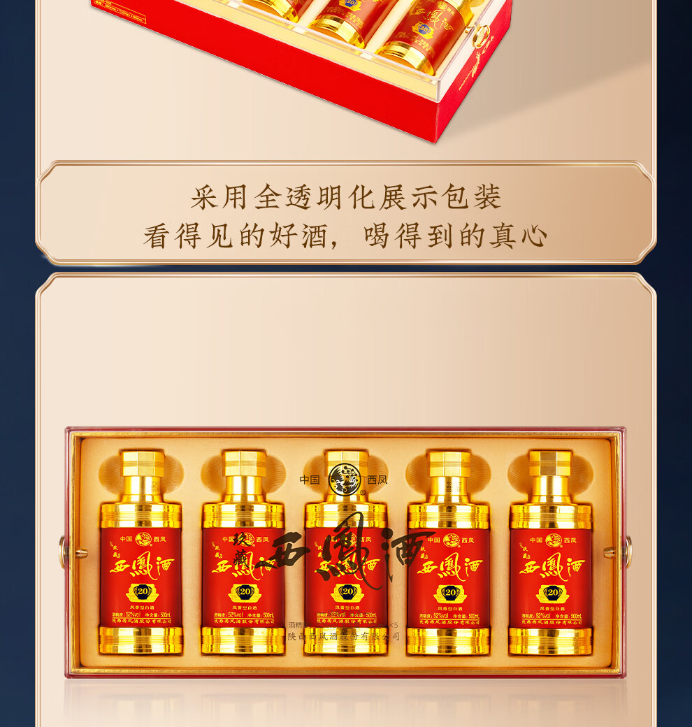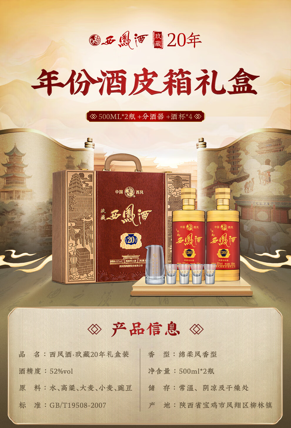 西凤酒20年52度玖藏西凤酒高端白酒礼盒2瓶装纯粮商务宴升学宴请送礼 52度 100mL 5瓶 五福临门五支装