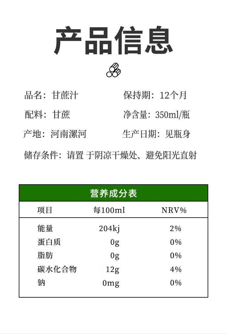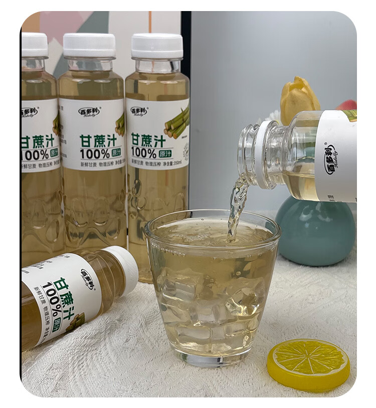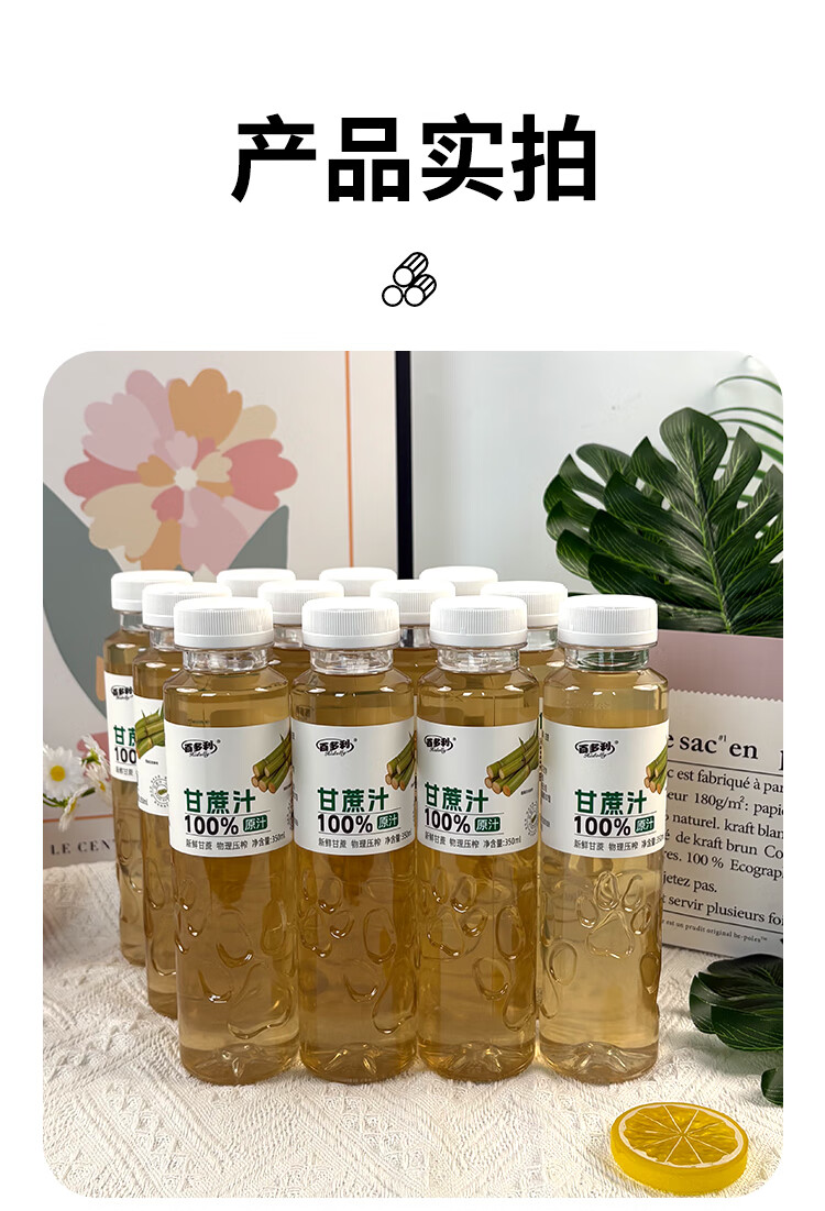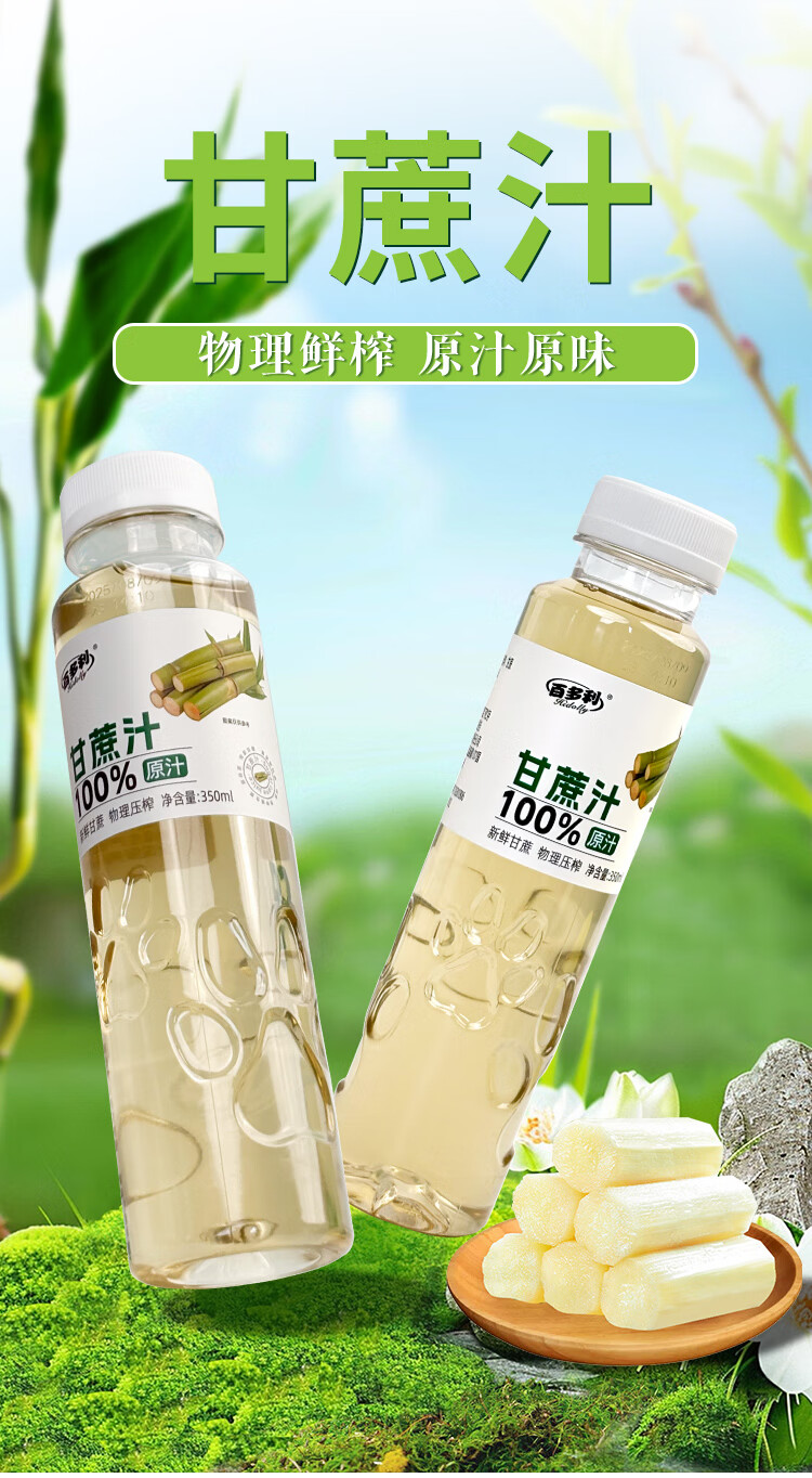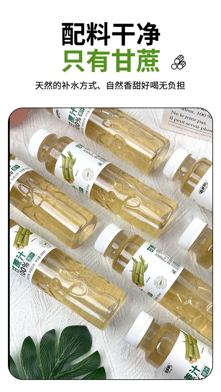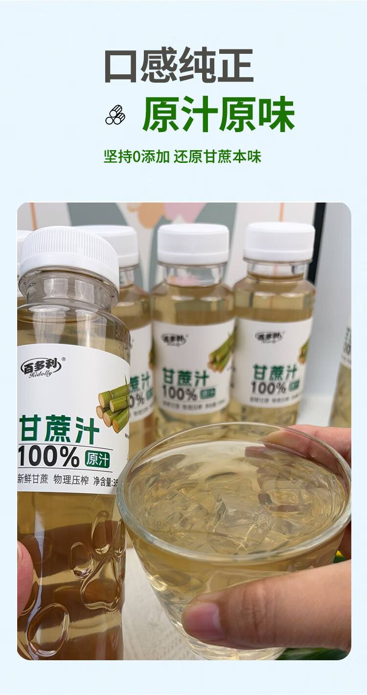 百多利百分纯甘蔗原汁350ml/瓶新鲜榨汁清甜润喉草本植物饮料网红饮品 100%甘蔗汁6瓶