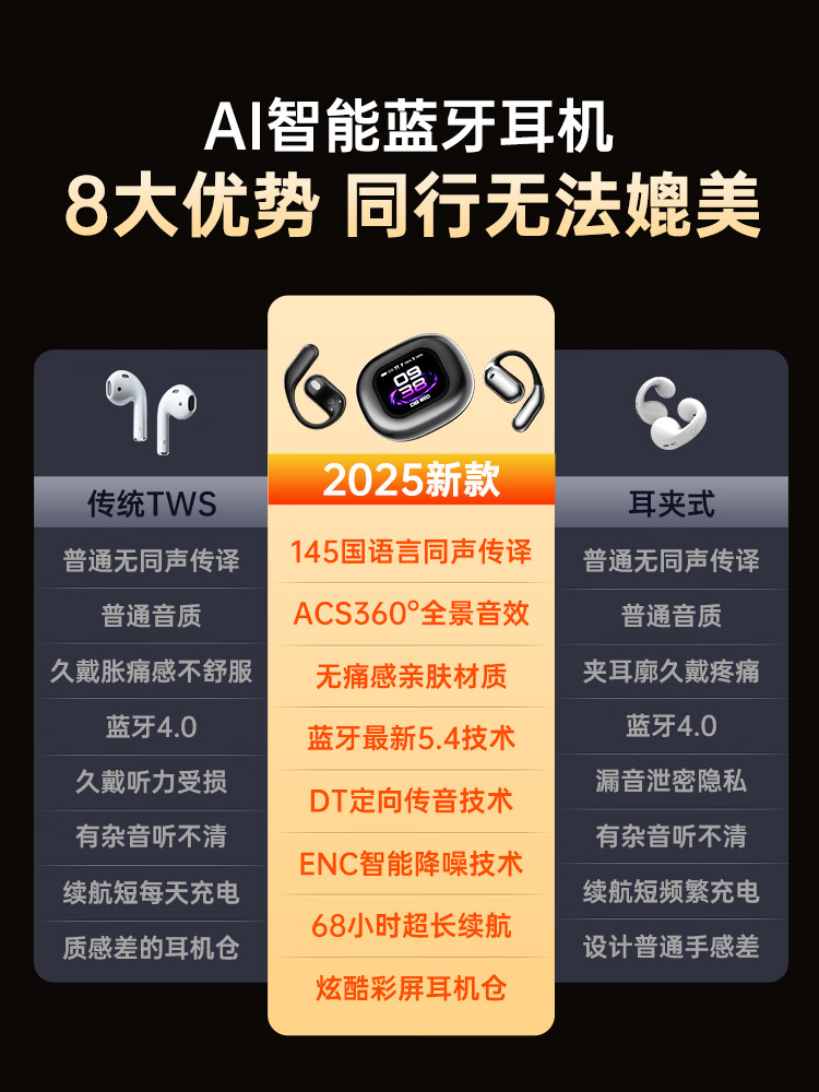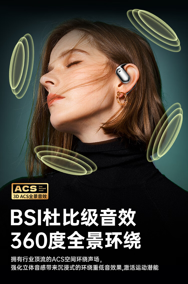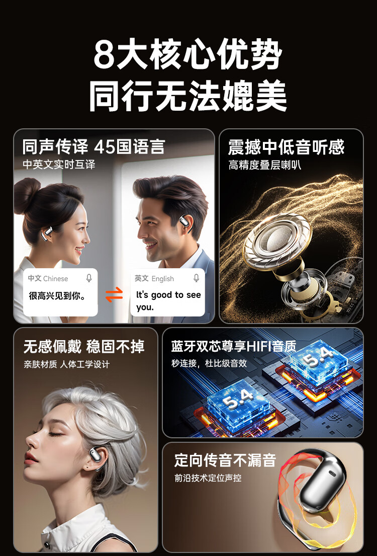 金运蓝牙耳机柏林之声苹果骨传导概念真无线挂耳式半入耳式运动跑步通话超长续航air8 【音质升级版】玉石黑 【柏林之声|悦耳不漏音】