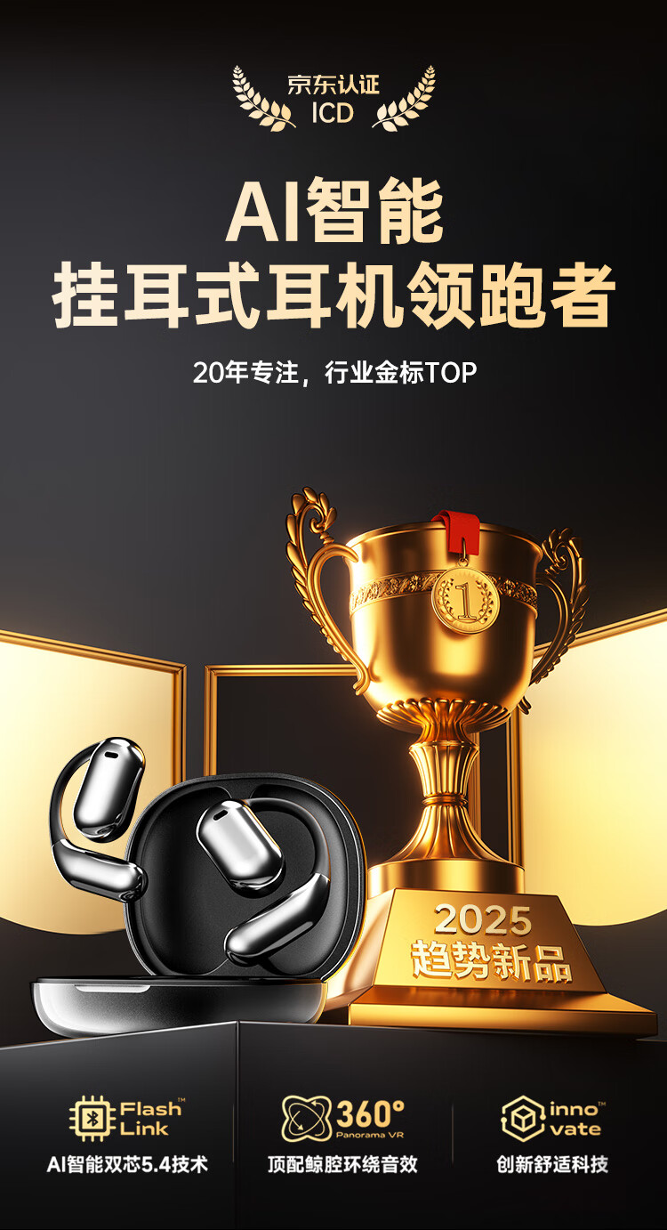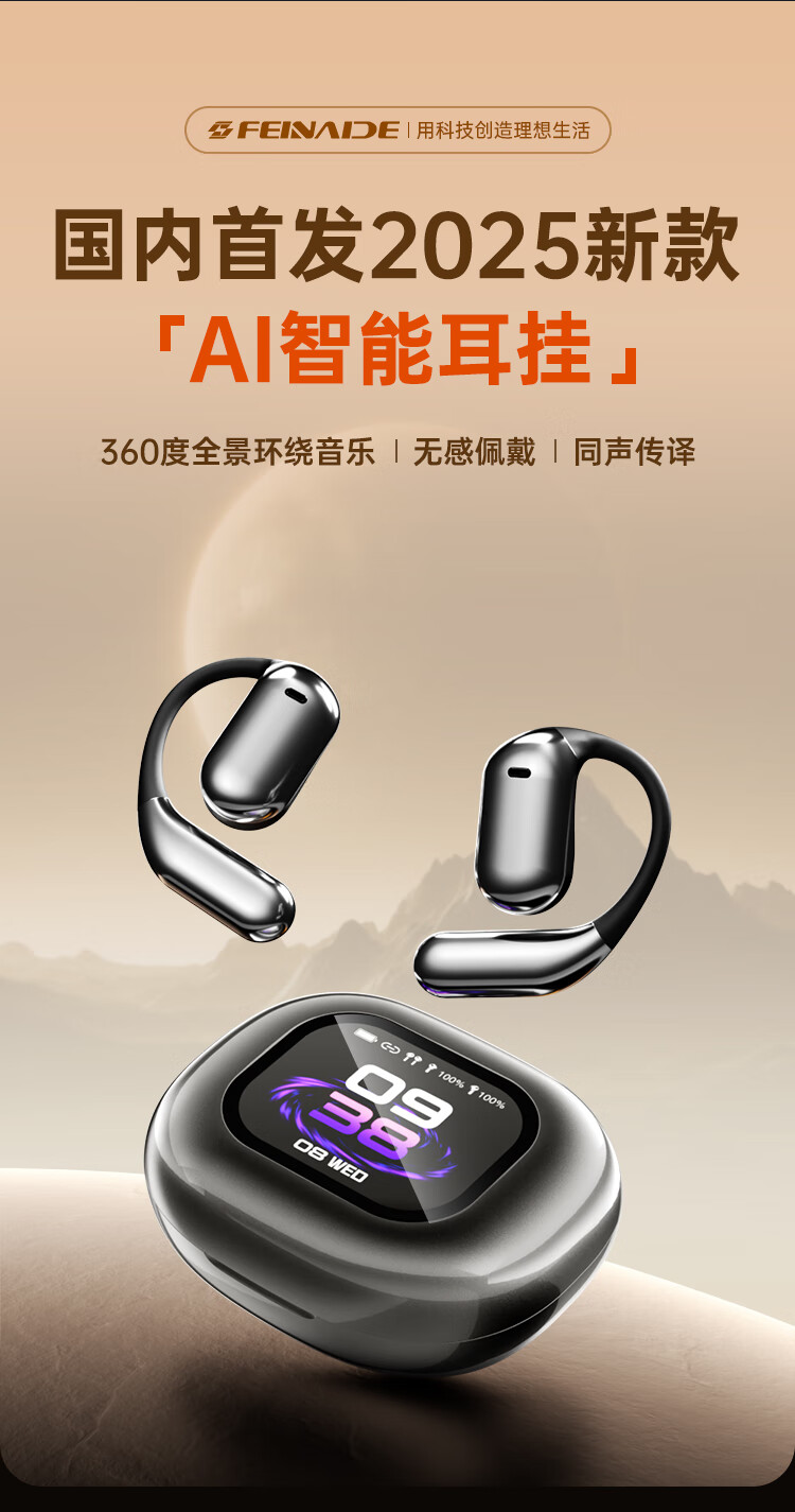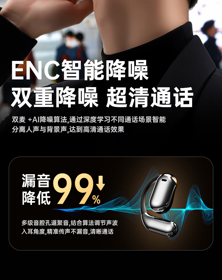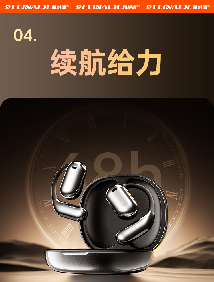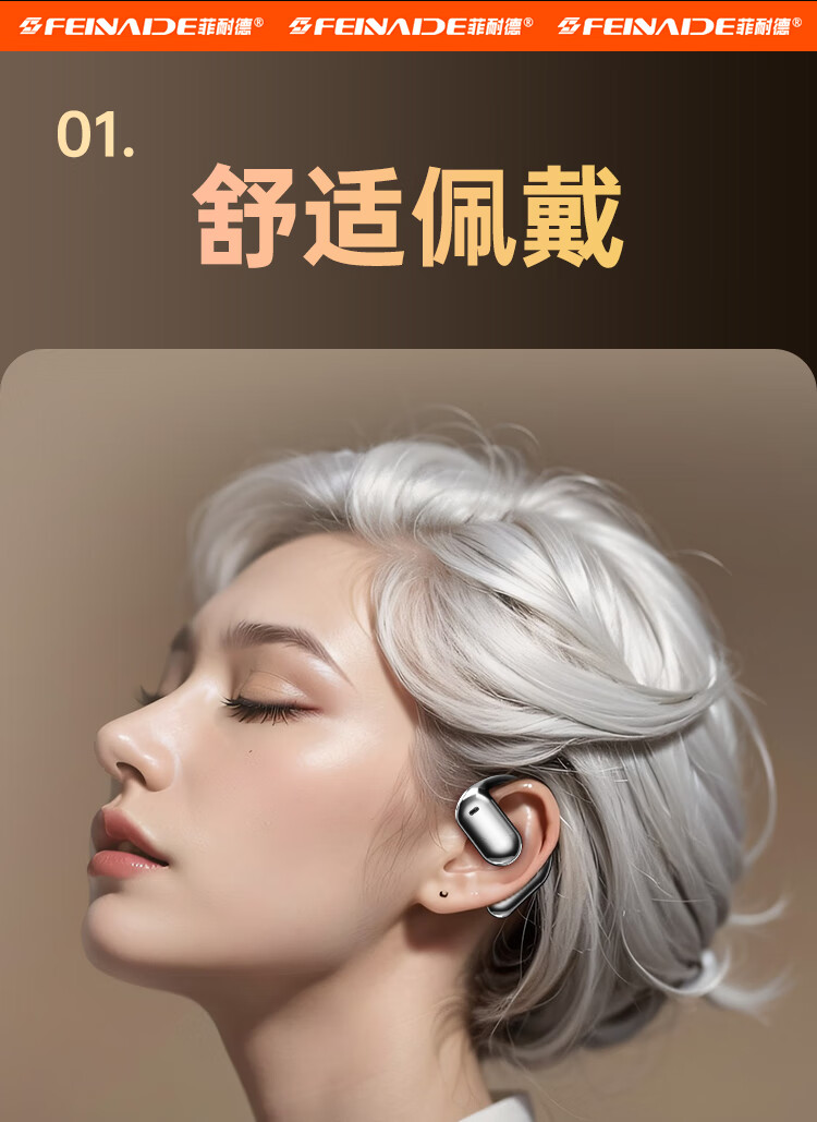 FEINADE【柏林之声丨顶配新款】蓝牙耳机挂耳式无线耳机骨传导概念开放式不入耳降噪运动超长续航适用华为 破晓灰|ENC降噪|超强音质|不漏音