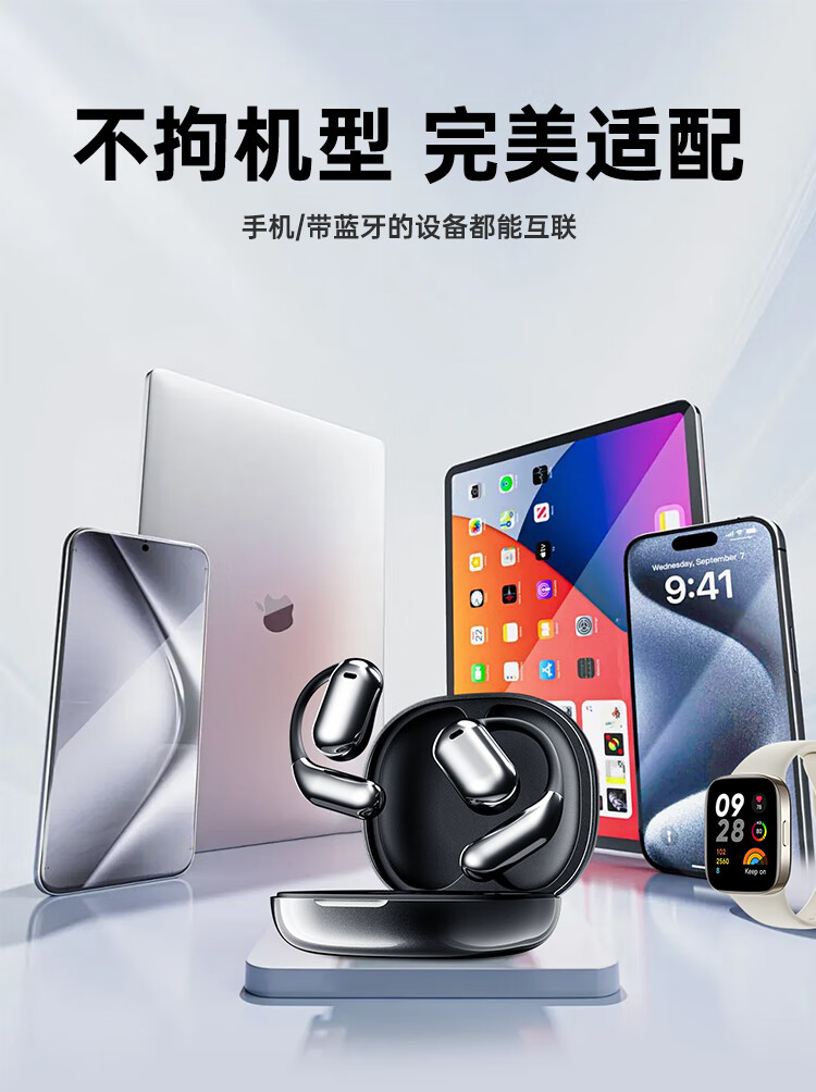 FEINADE【柏林之声丨顶配新款】蓝牙耳机挂耳式无线耳机骨传导概念开放式不入耳降噪运动超长续航适用华为 月光白|ENC降噪|超强音质|不漏音