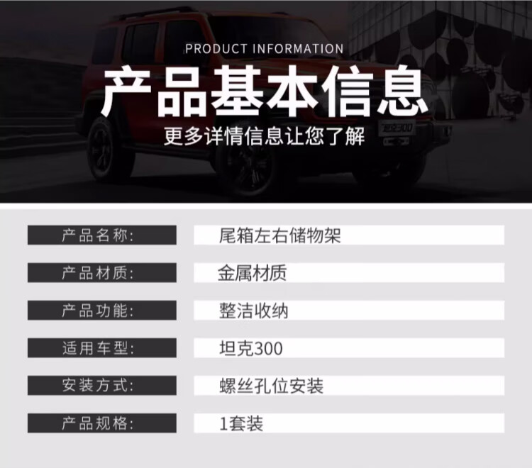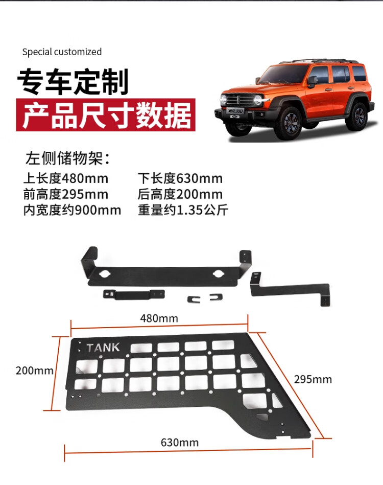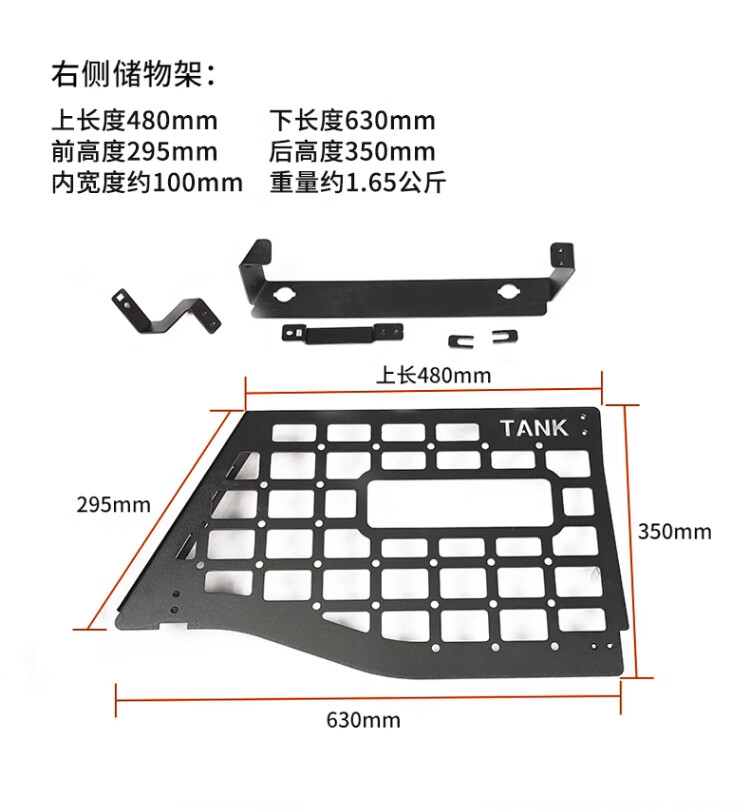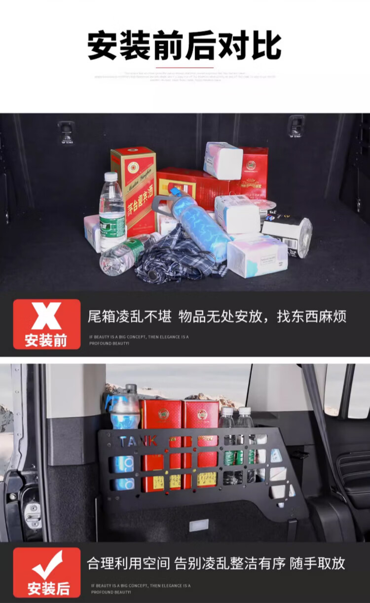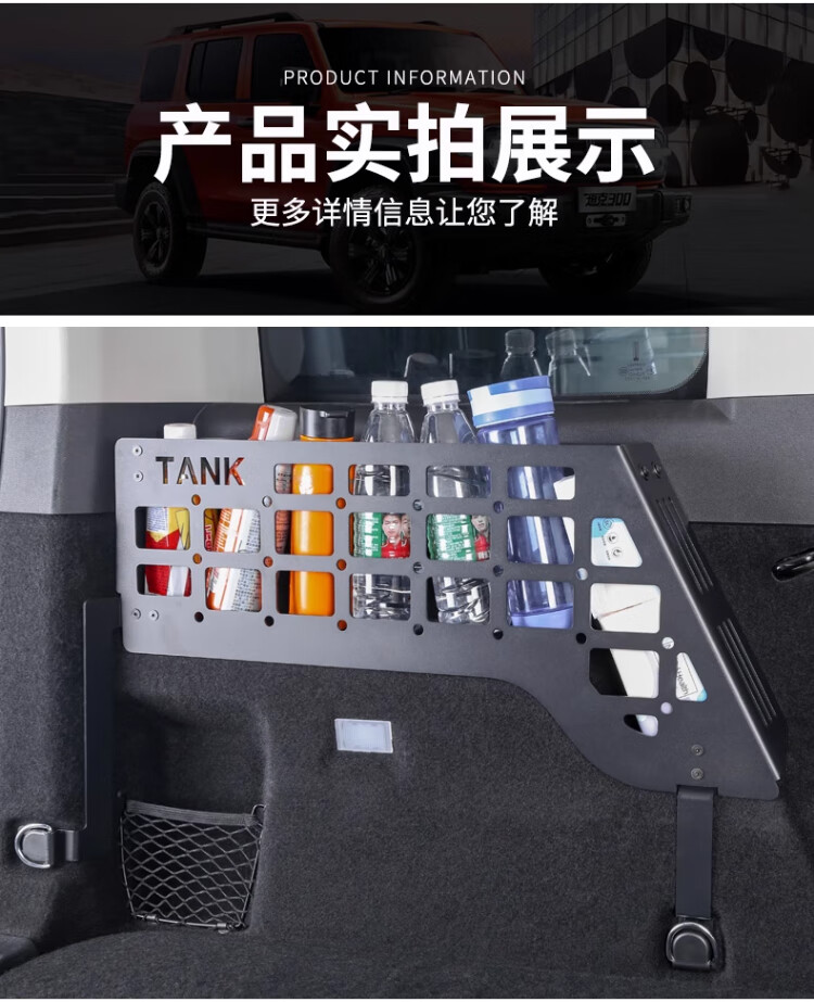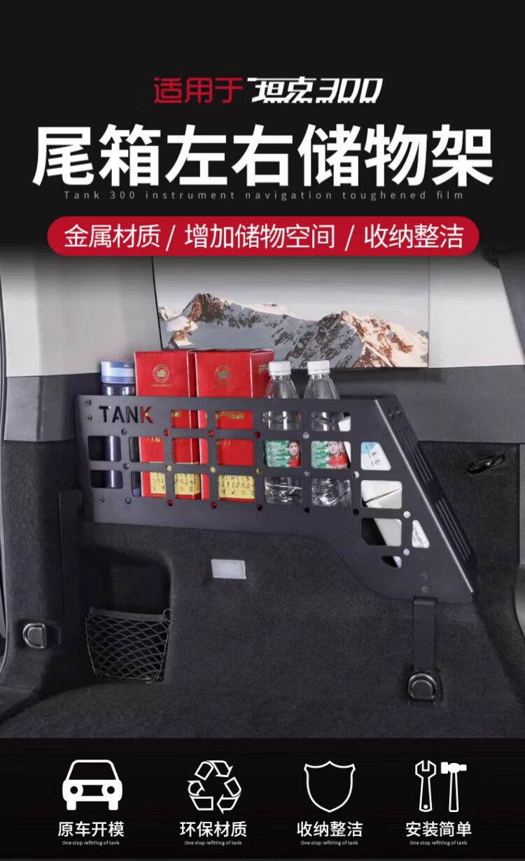 唐卡21-25款坦克300后备箱左右储物架改装铝合金置物架盒内饰扩展配件 尾箱置物架【左侧+右侧储物架】2件套