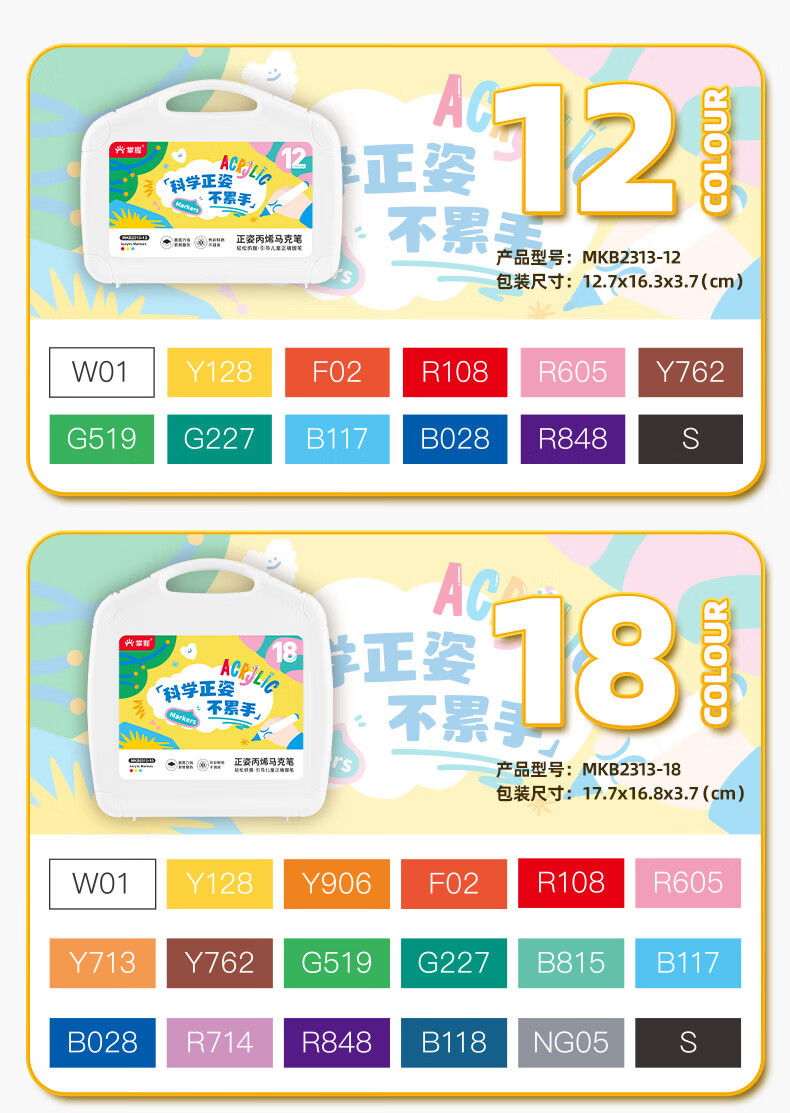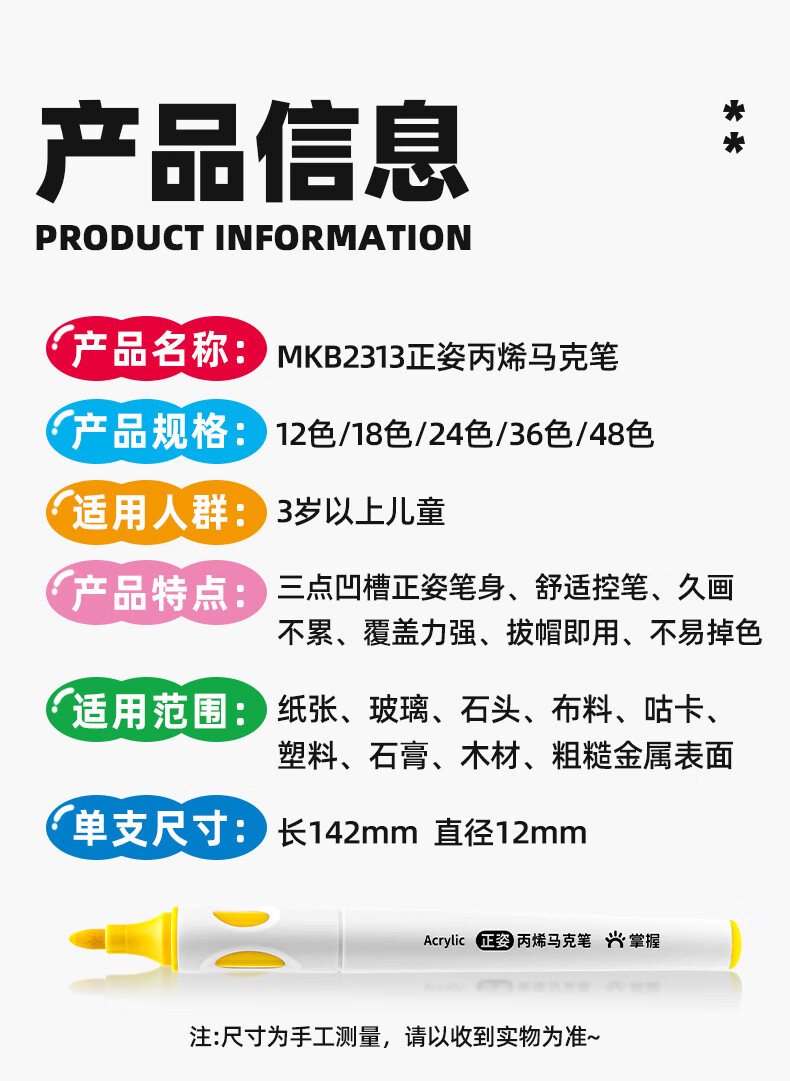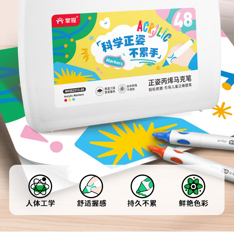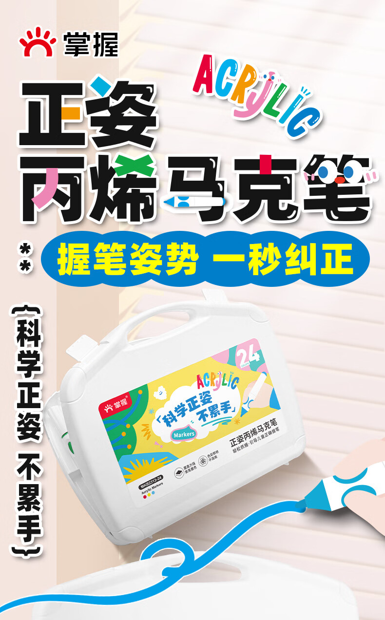 掌握(GRASP)24色丙烯马克笔不易透色可叠色儿童亲肤可水洗画笔学生正姿水彩笔男女孩绘画涂鸦生日礼物热门商品