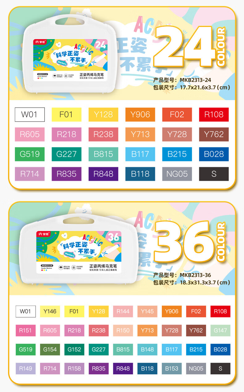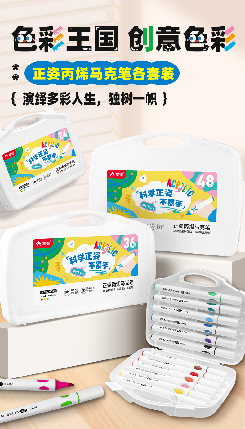 掌握(GRASP)36色丙烯马克笔不易透色可叠色儿童亲肤可水洗画笔学生正姿水彩笔男女孩绘画涂鸦生日礼物热门商品