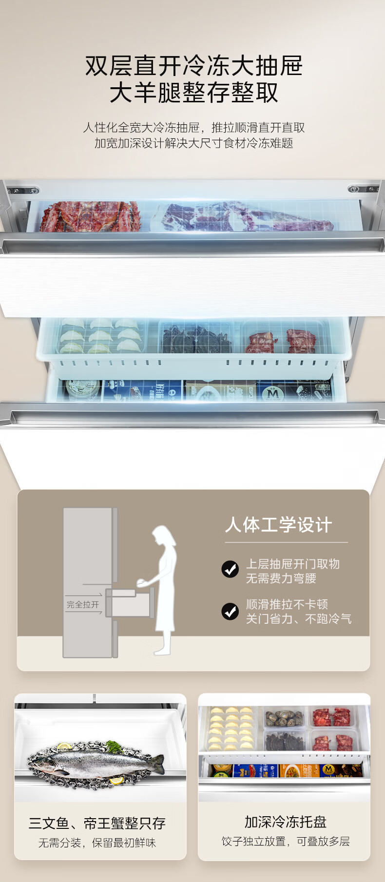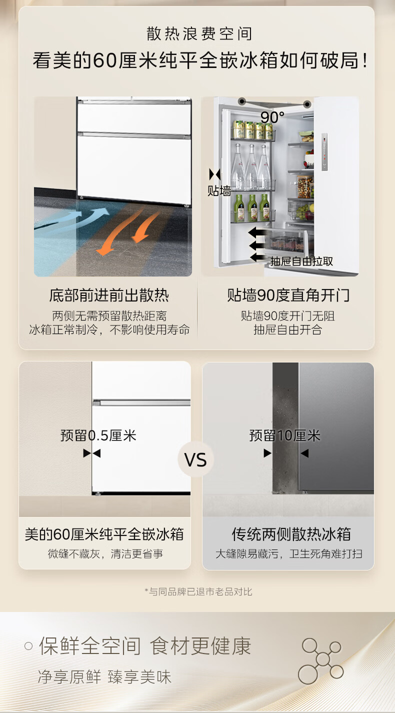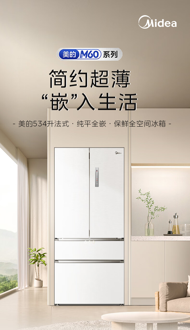 美的(Midea)534升多门法式冰箱一级能效超薄零嵌纯平全嵌入式保鲜双变频家用冷冻智能国家补贴MR-560WUFPZE