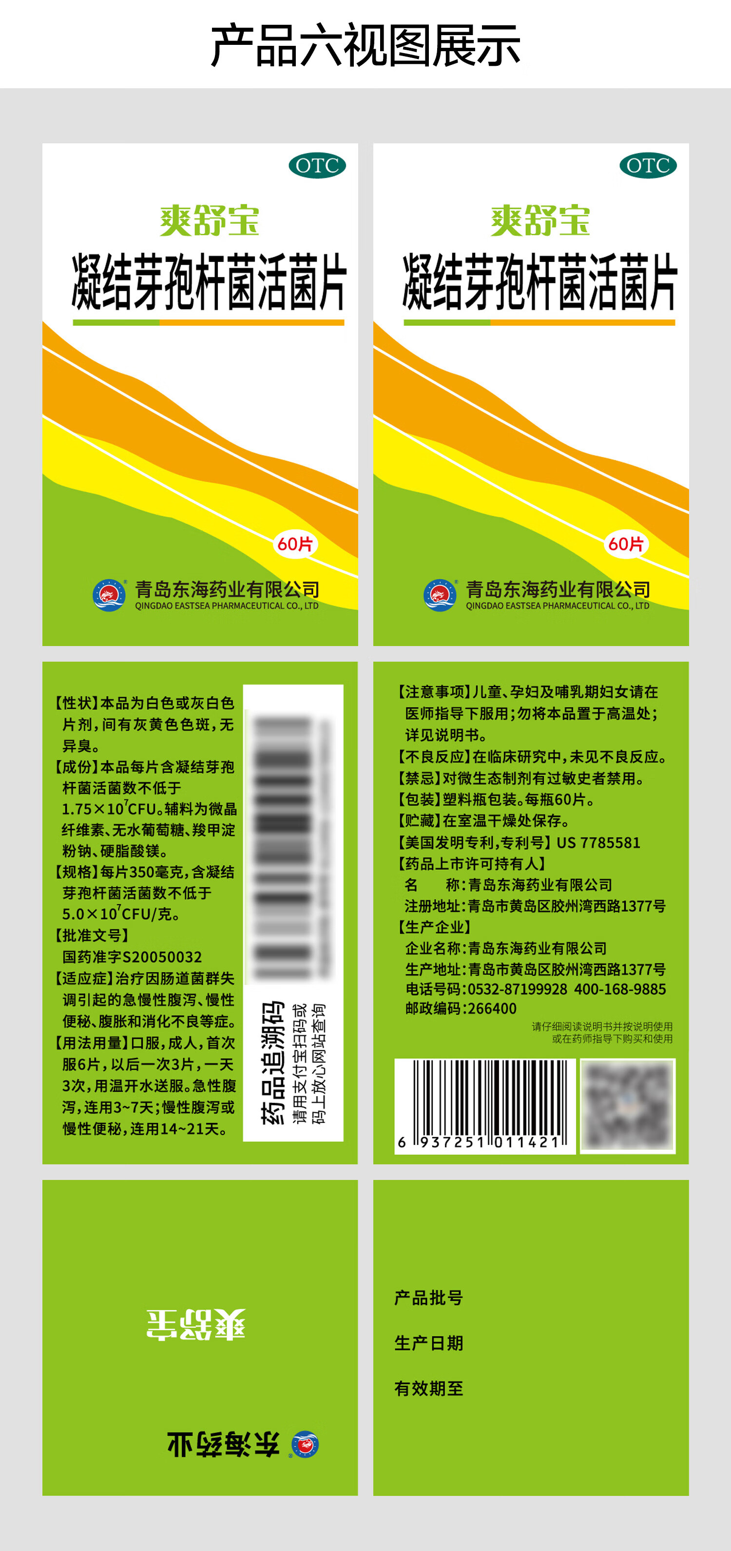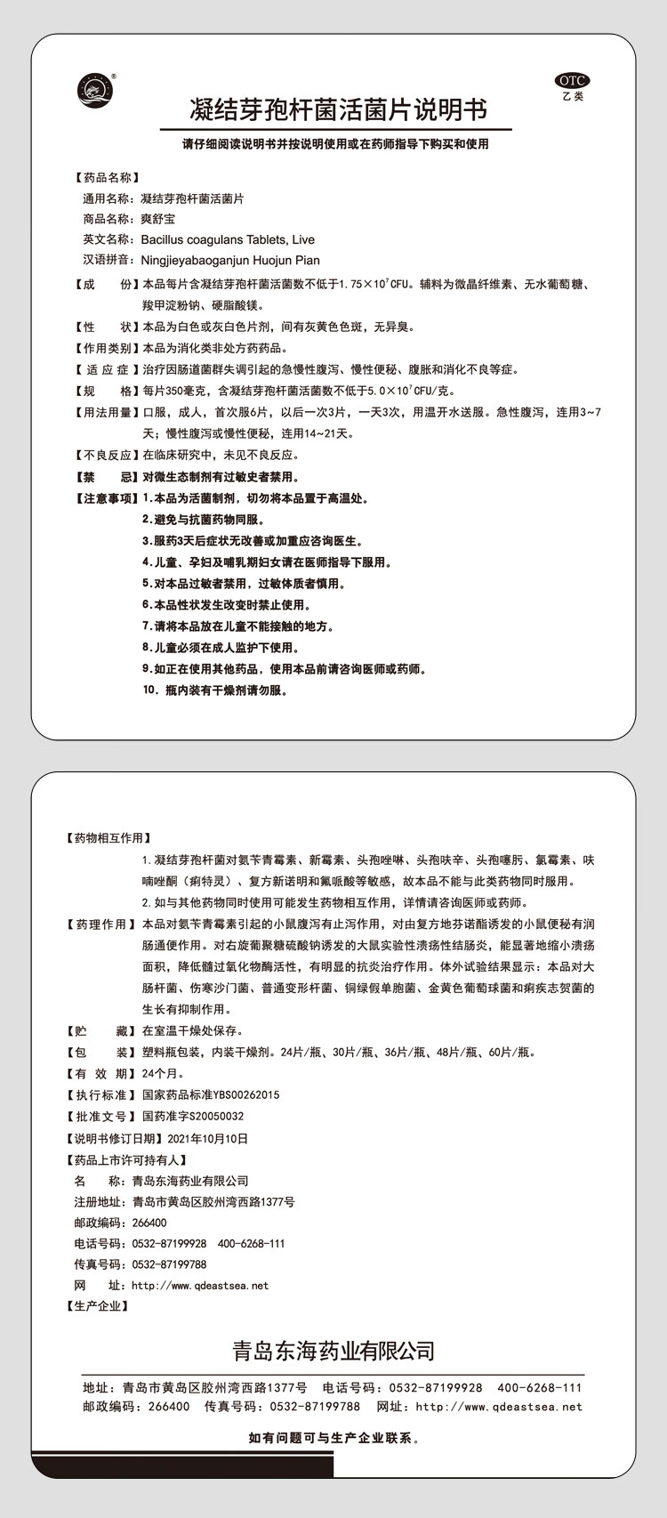 爽舒宝 凝结芽孢杆菌活菌片350mg*60片/盒用于便秘腹泻腹胀消化不良OTC成人儿童孕妇益生菌片润肠通便