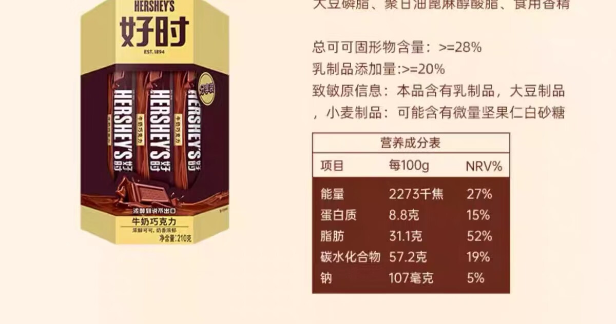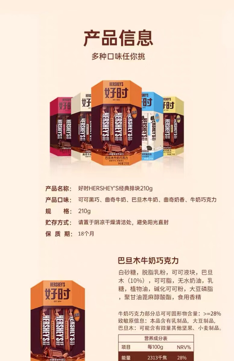 好时牛奶巧克力家庭分享装210g【临期清仓】