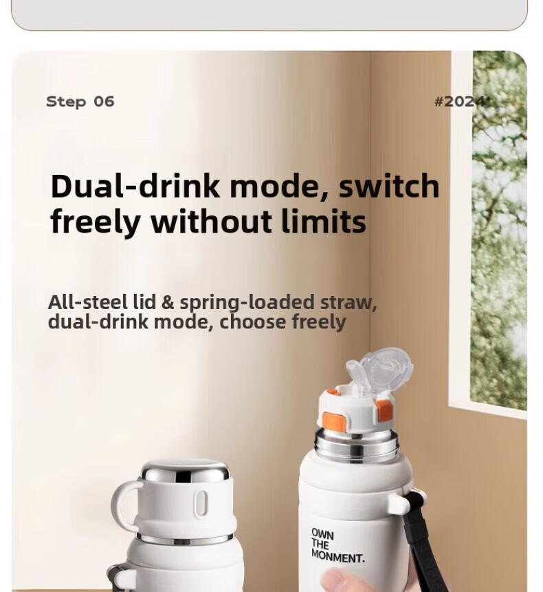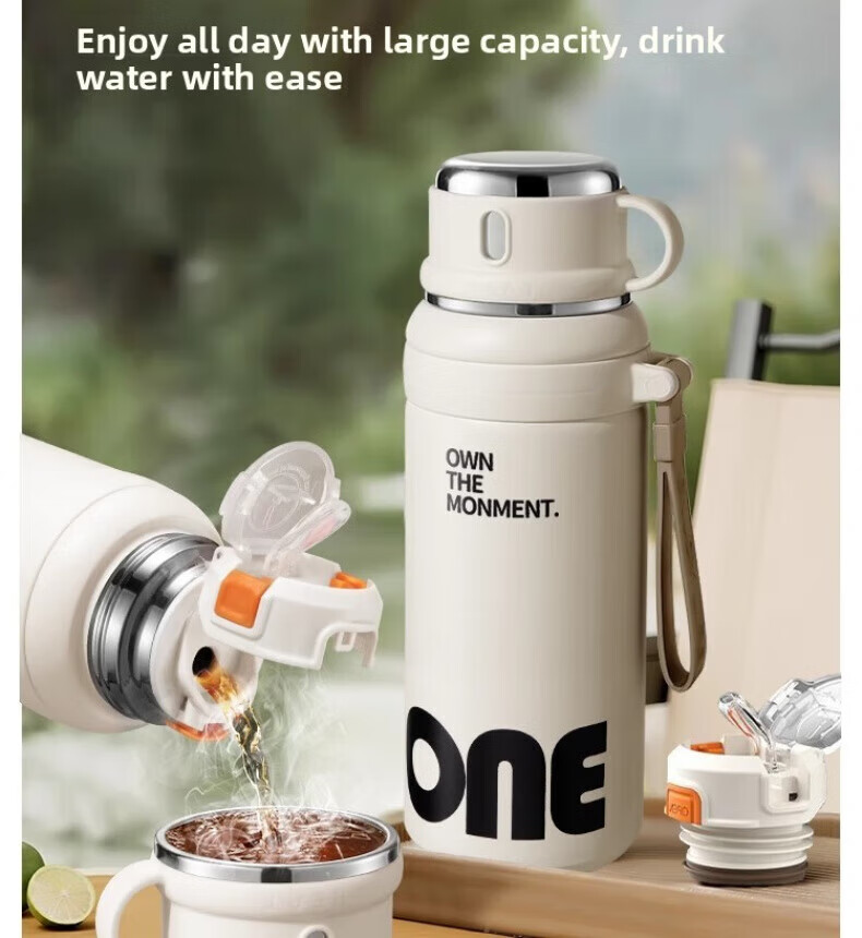 AILUKI日本保温杯男款学生上学2025新款儿童运动水杯子高颜值 【升级三饮】白600ml【316不锈钢保温杯】