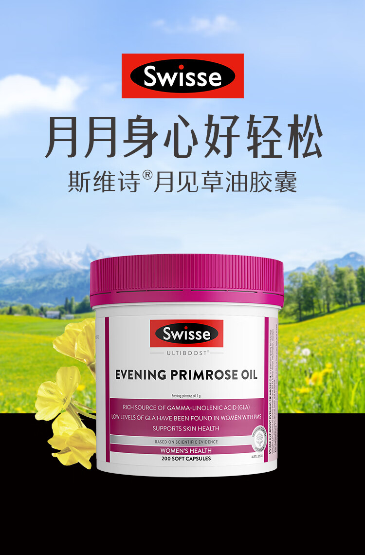 Swisse斯维诗 月见草油胶囊 调节女性姨妈经期 经前养护 内分泌200粒/瓶