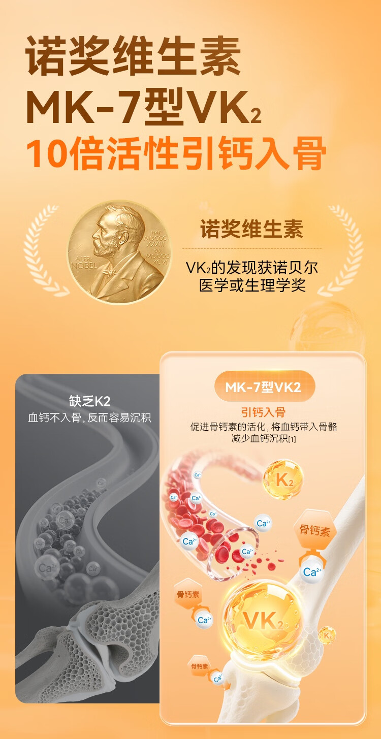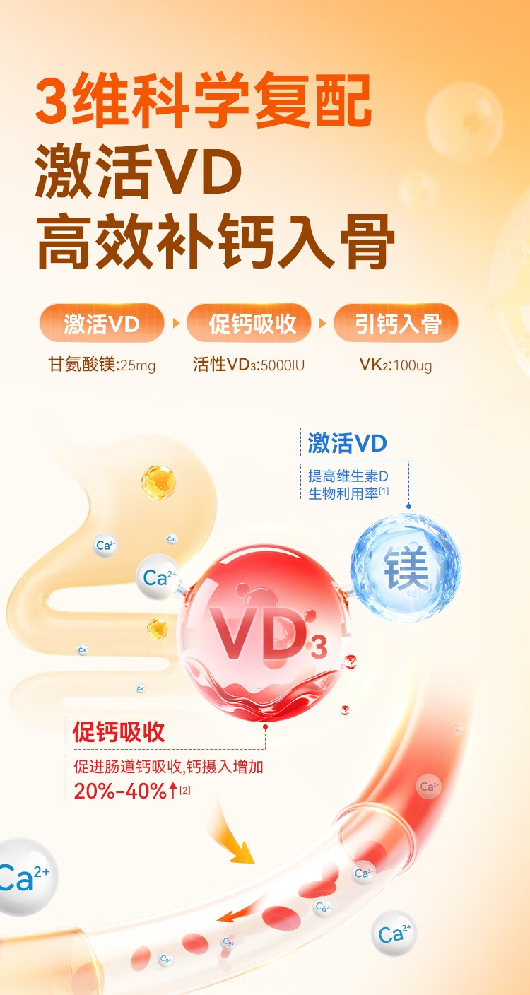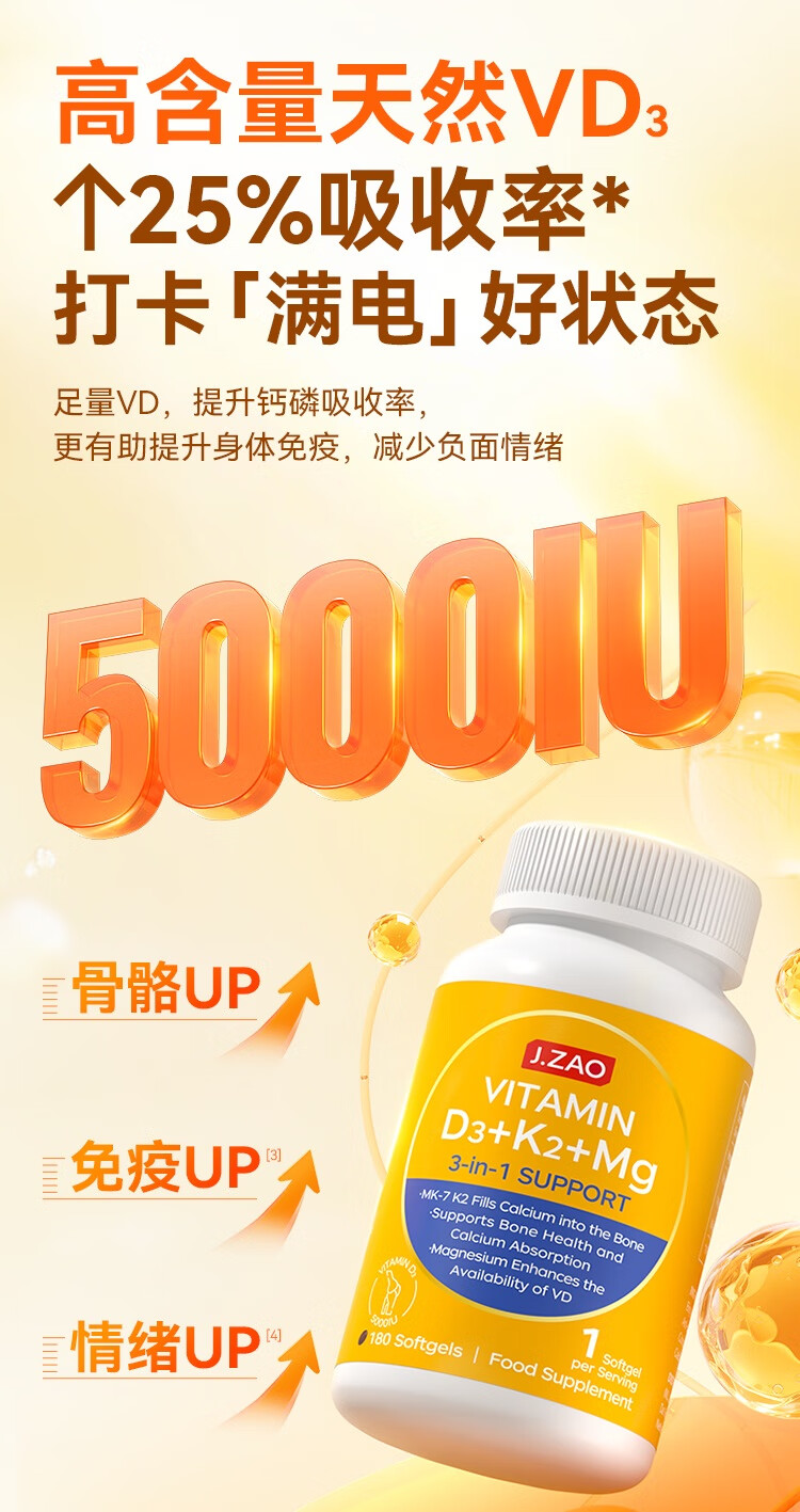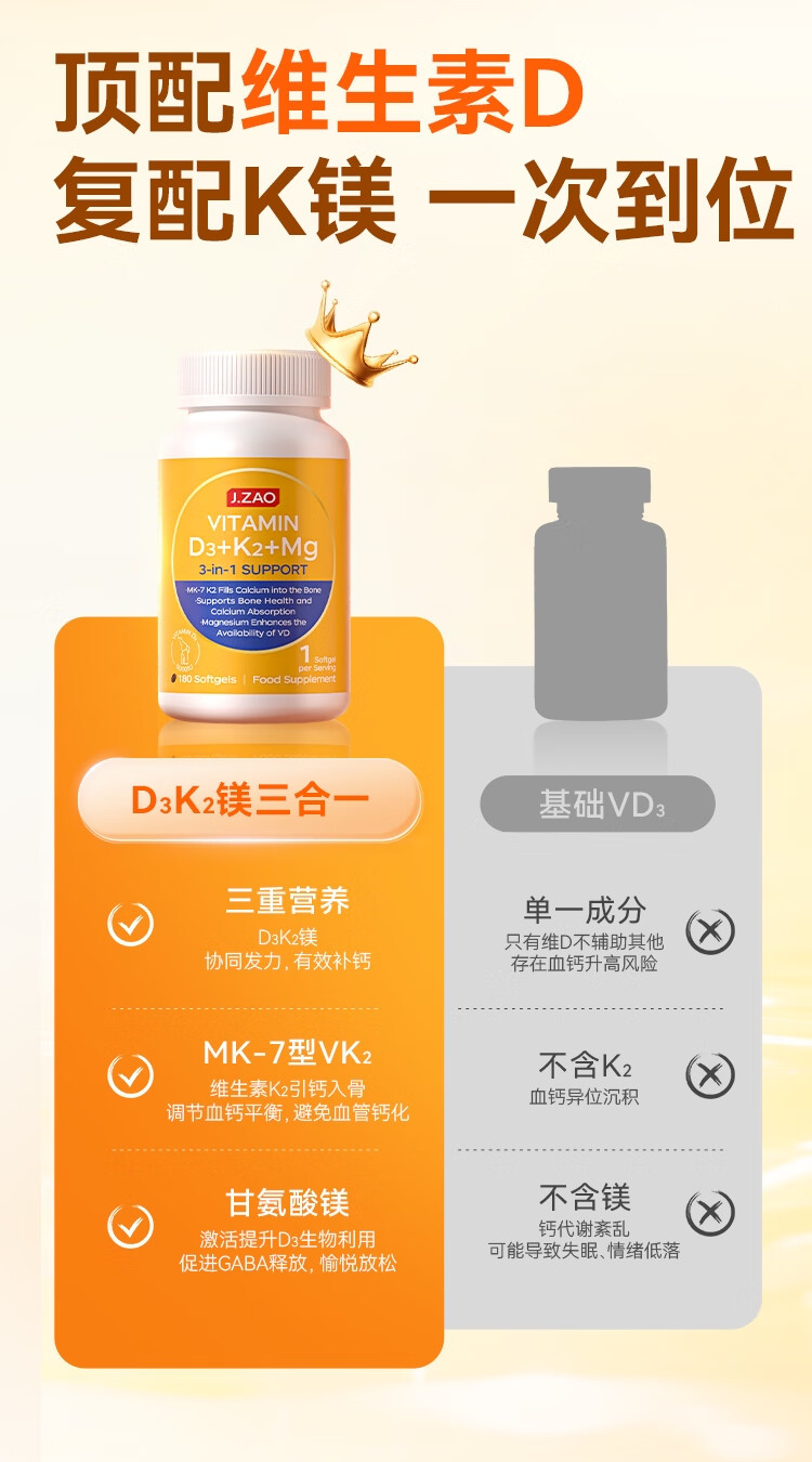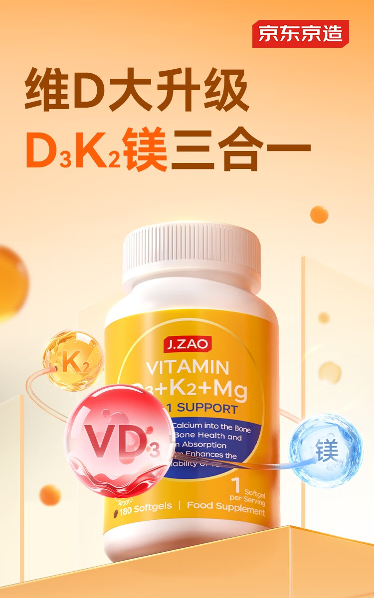 J.ZAO京东京造维生素D3K2镁三合一180粒 维d甘氨酸镁补钙备孕中老年