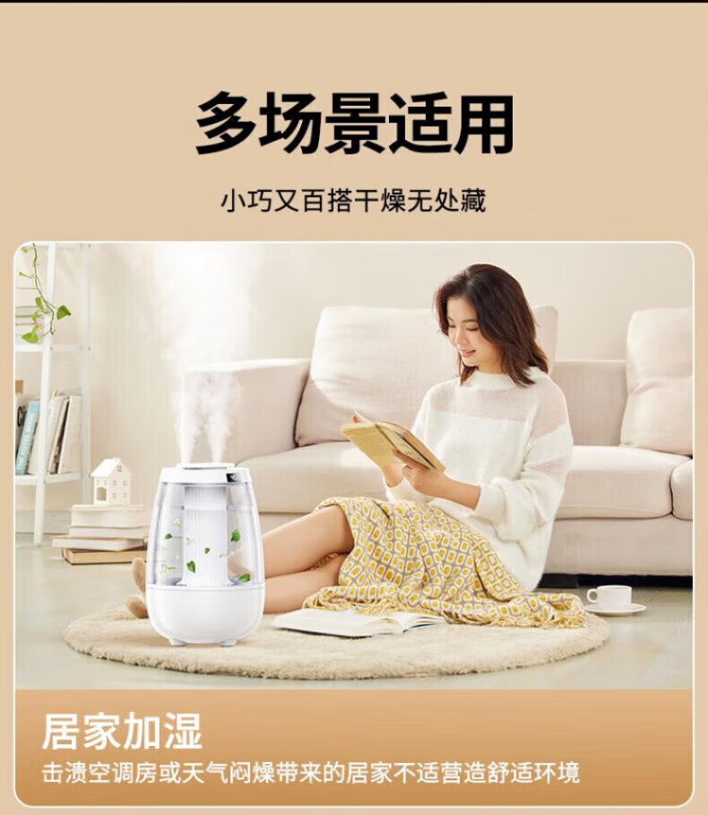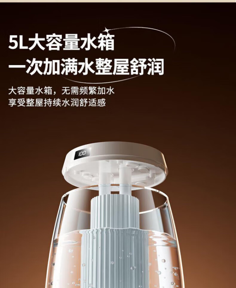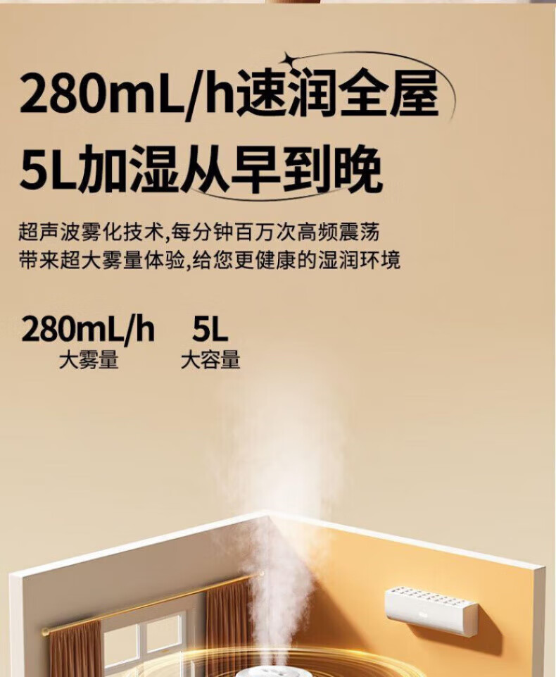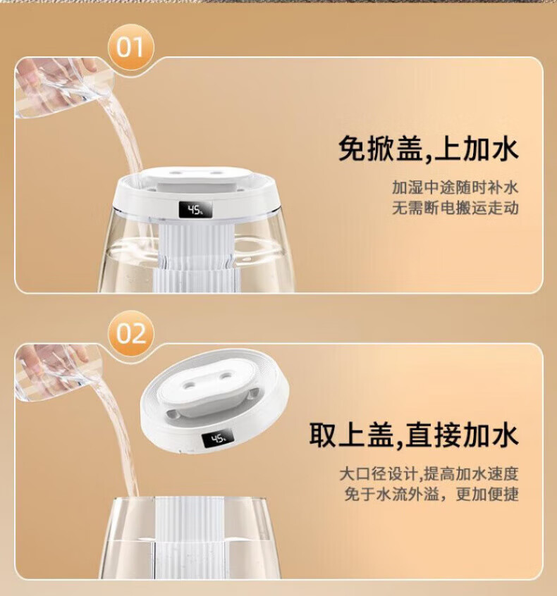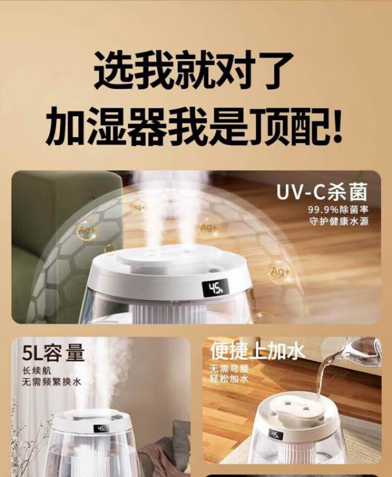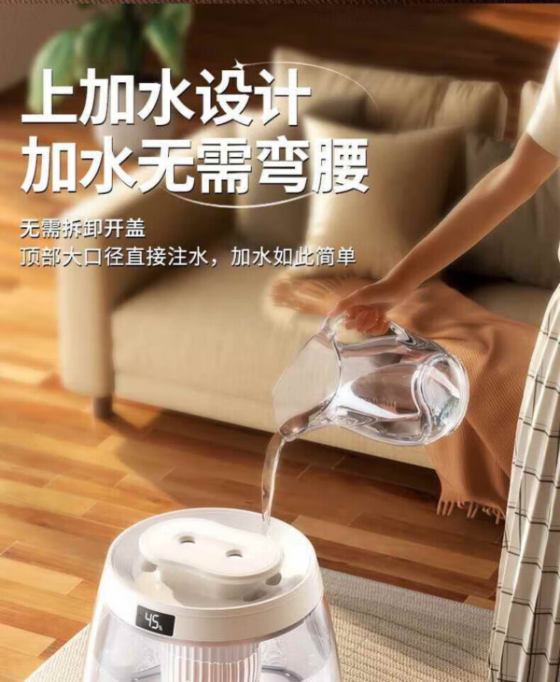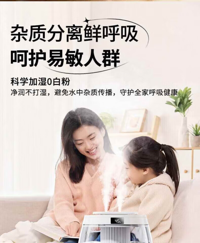 DEATKN德国高端加湿器小型2025新款家用静音卧室孕妇婴儿净化办公室 白色98%客户选择数显款5L大容量