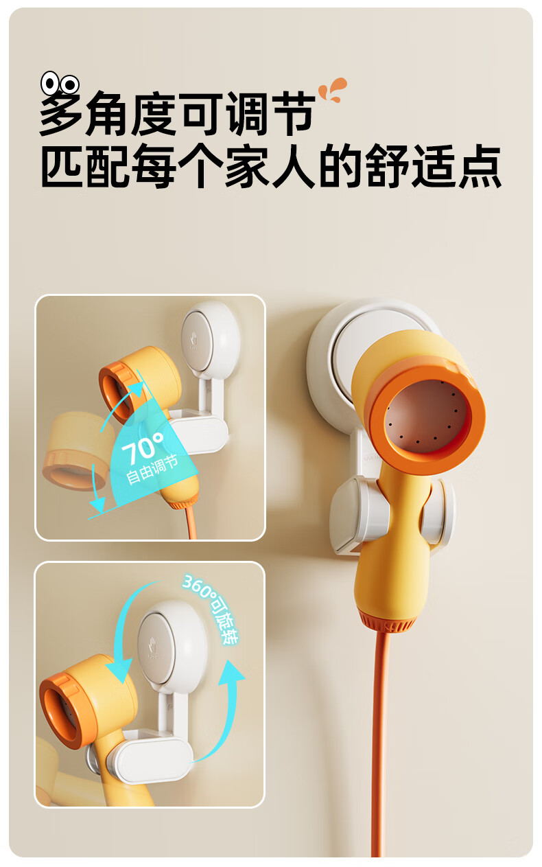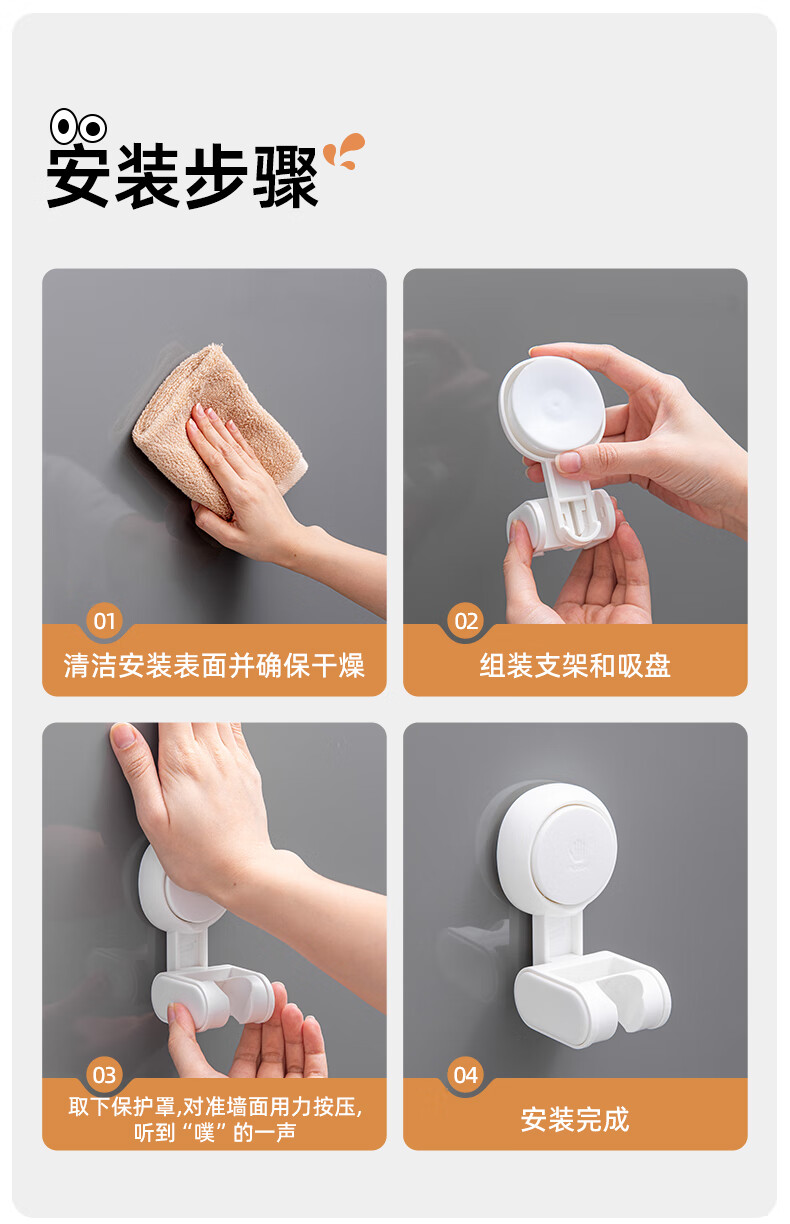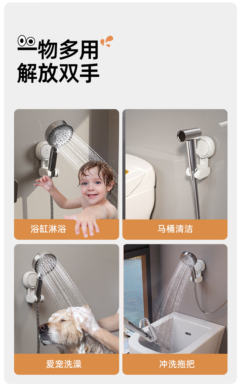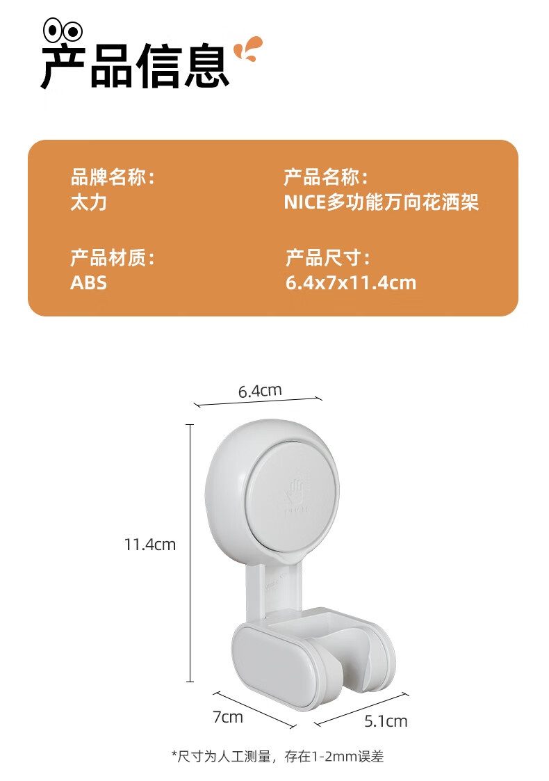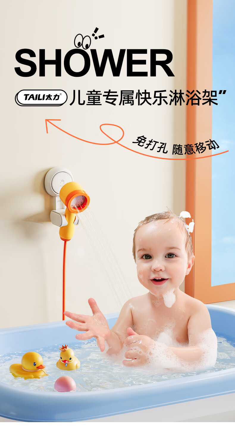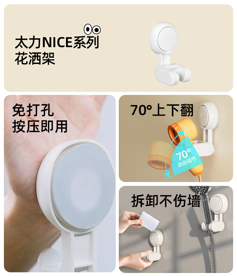 太力强力吸盘花洒架可移动儿童花洒支架免打孔壁挂置物架 70°可调节【1个装】