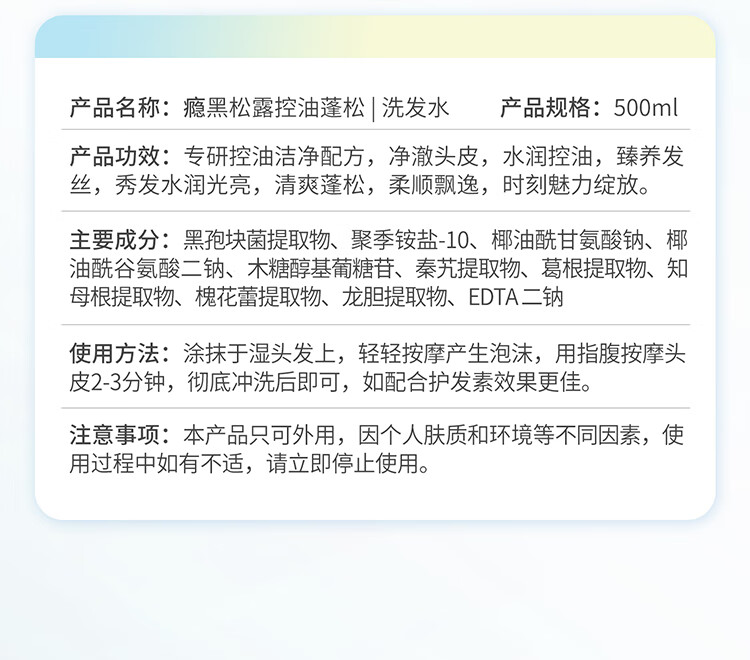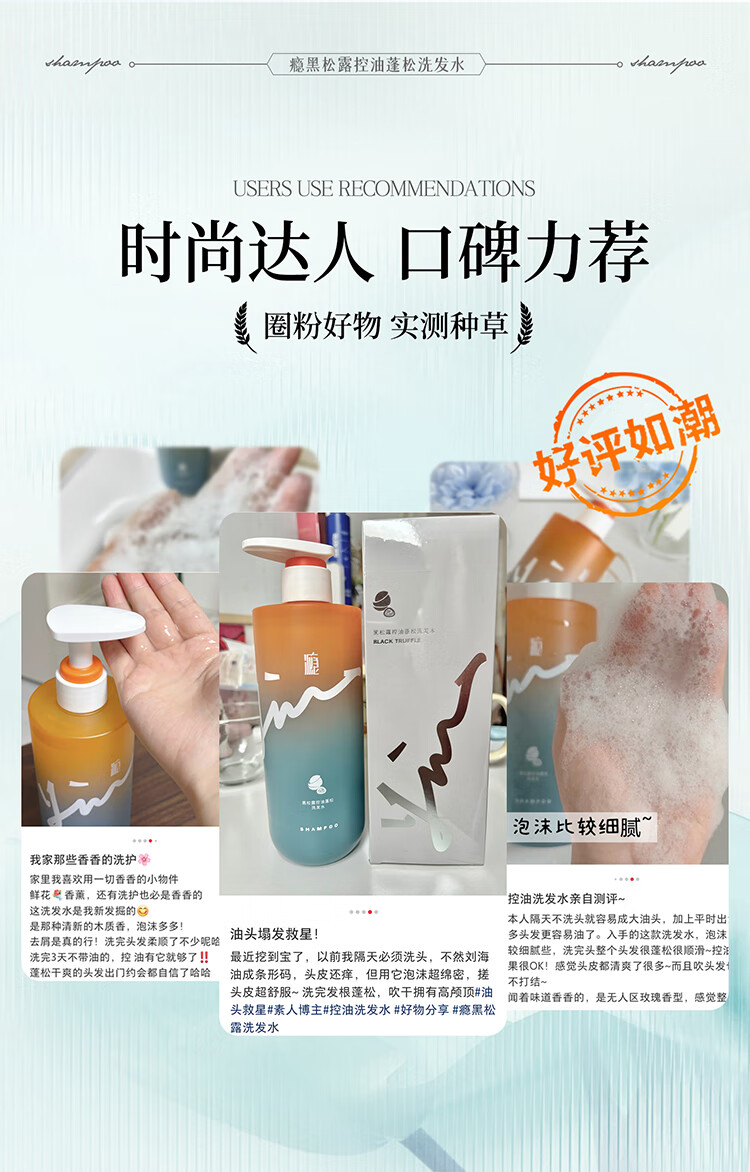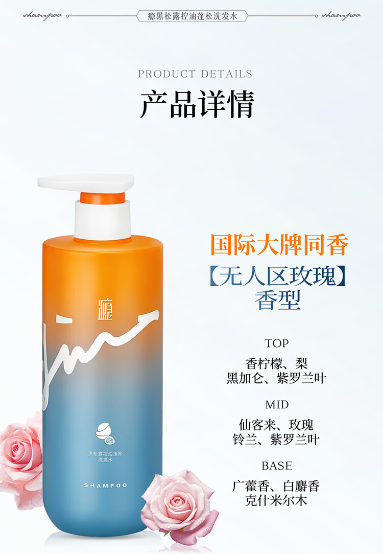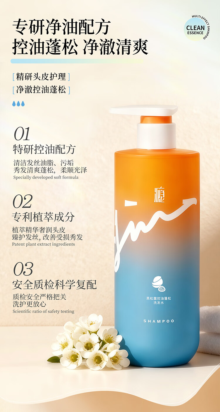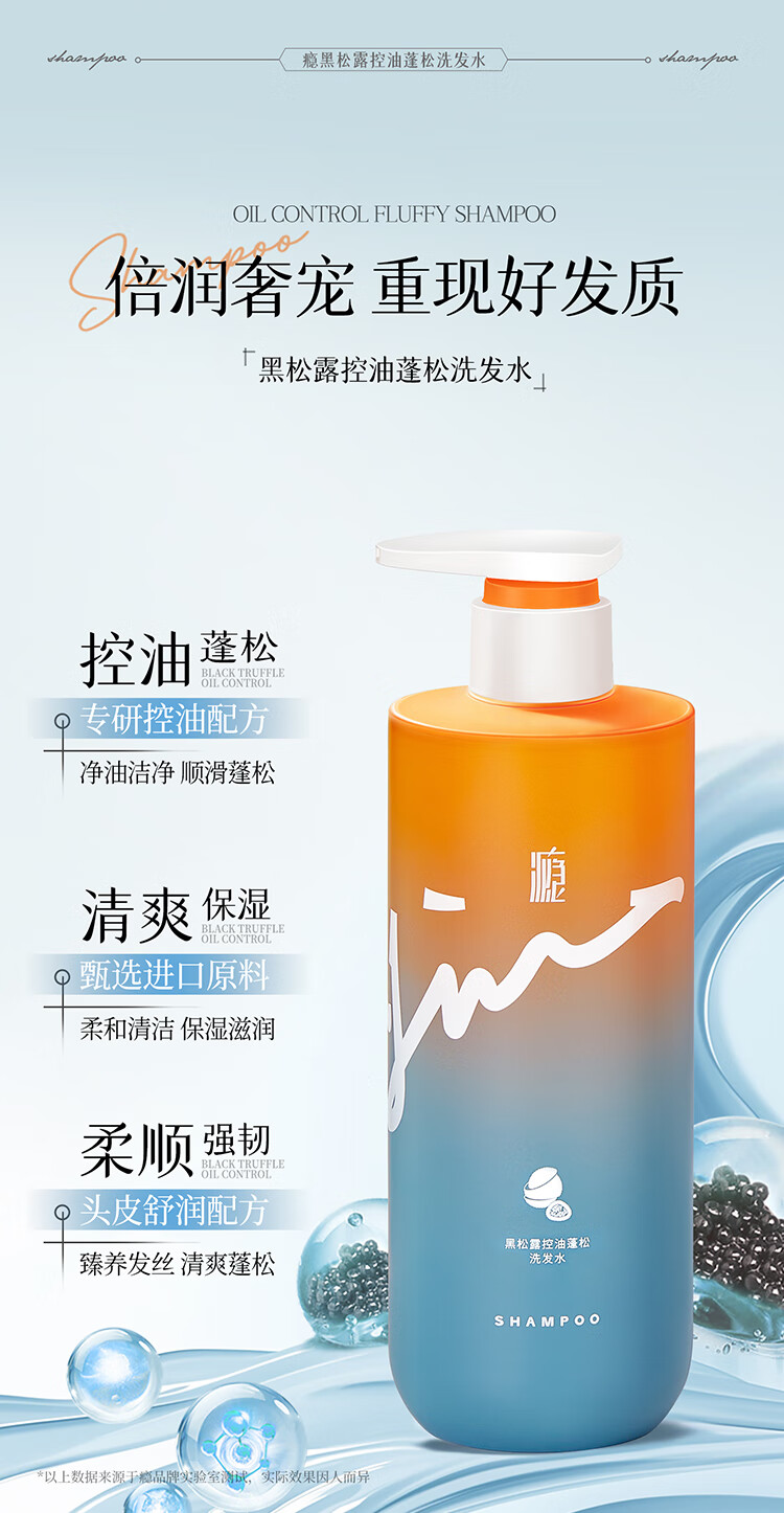 瘾黑松露控油蓬松洗发水500ml清爽发丝改善毛躁持久留香洗头膏男女