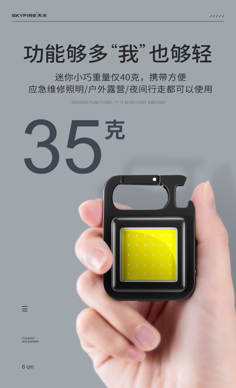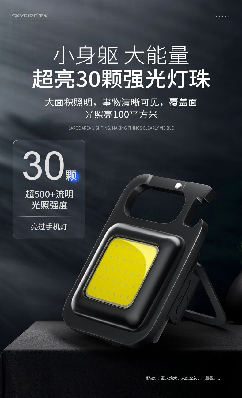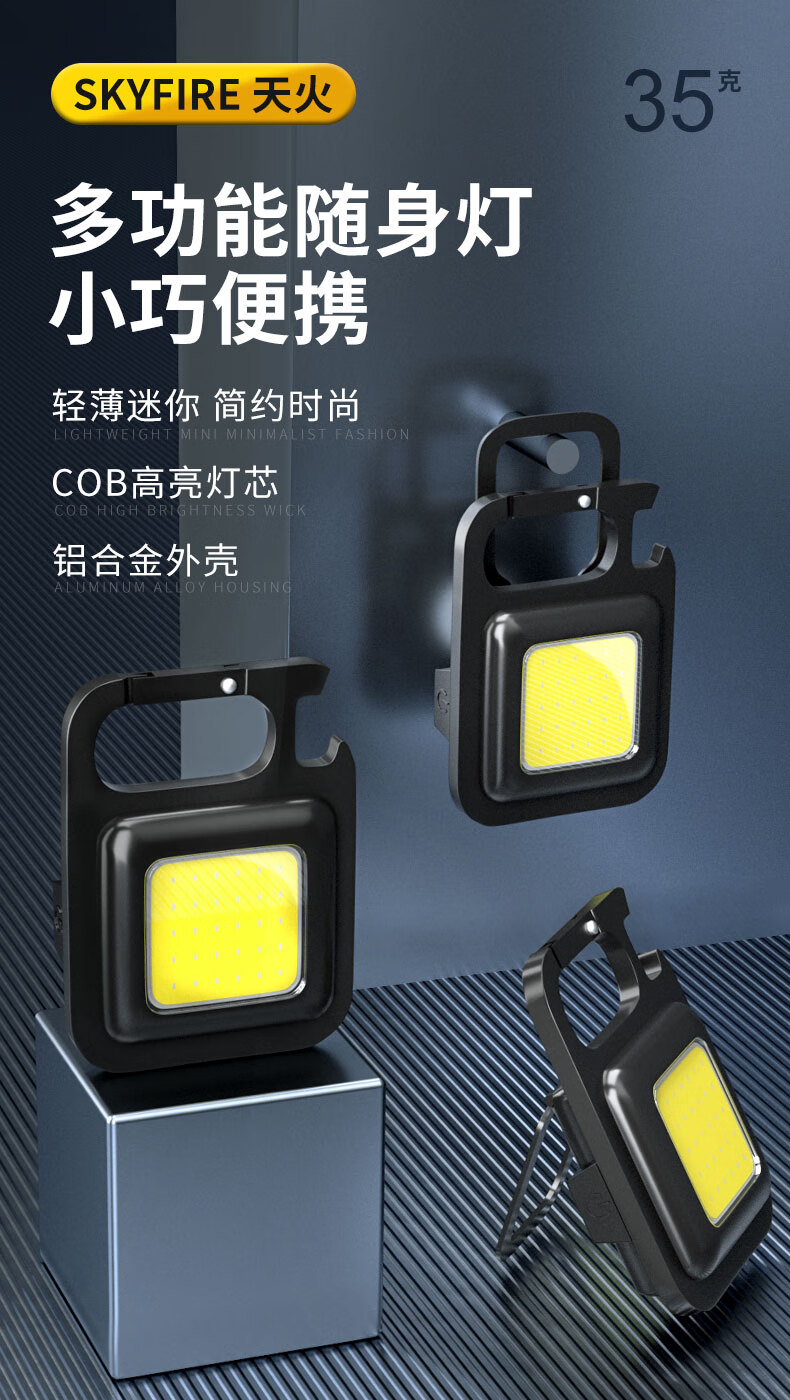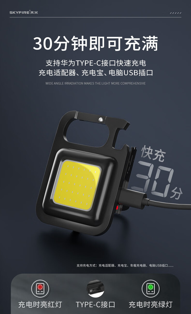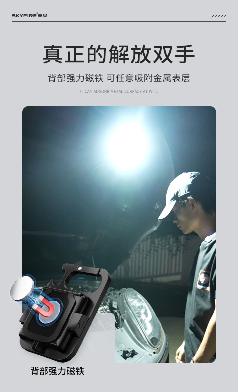 天火强光迷你钥匙扣手电筒应急灯便携充电强磁工作灯汽修灯投光灯 磁吸款钥匙扣灯丨通宵续航