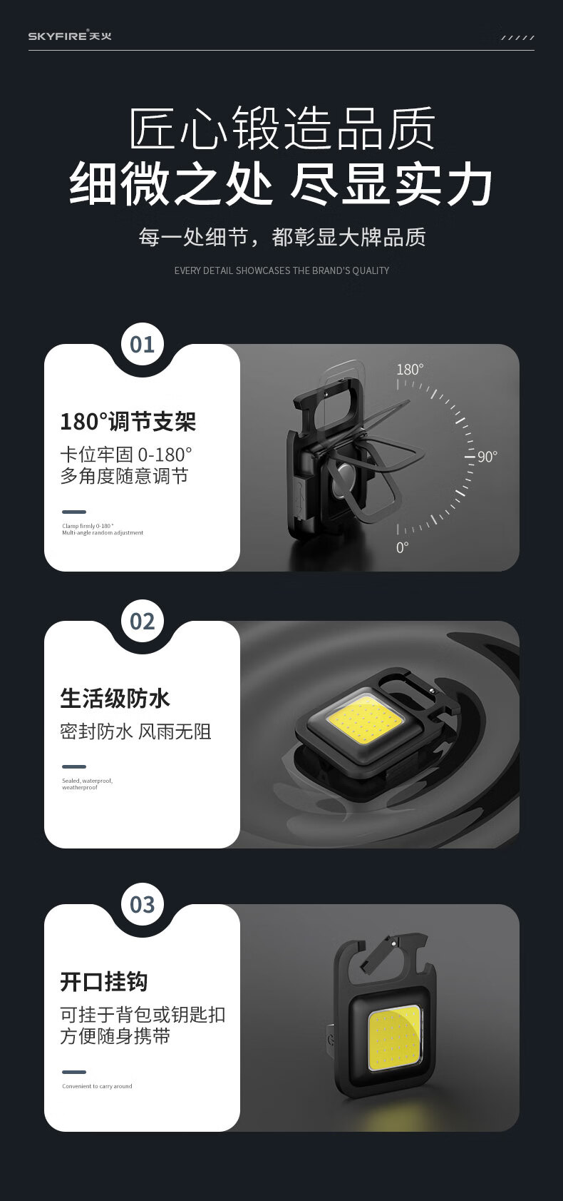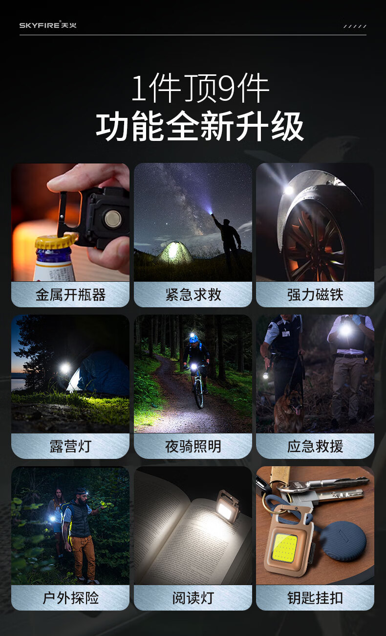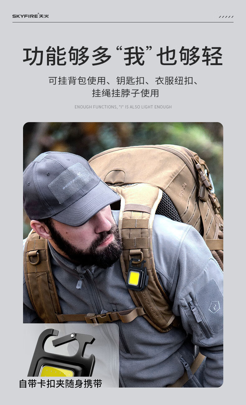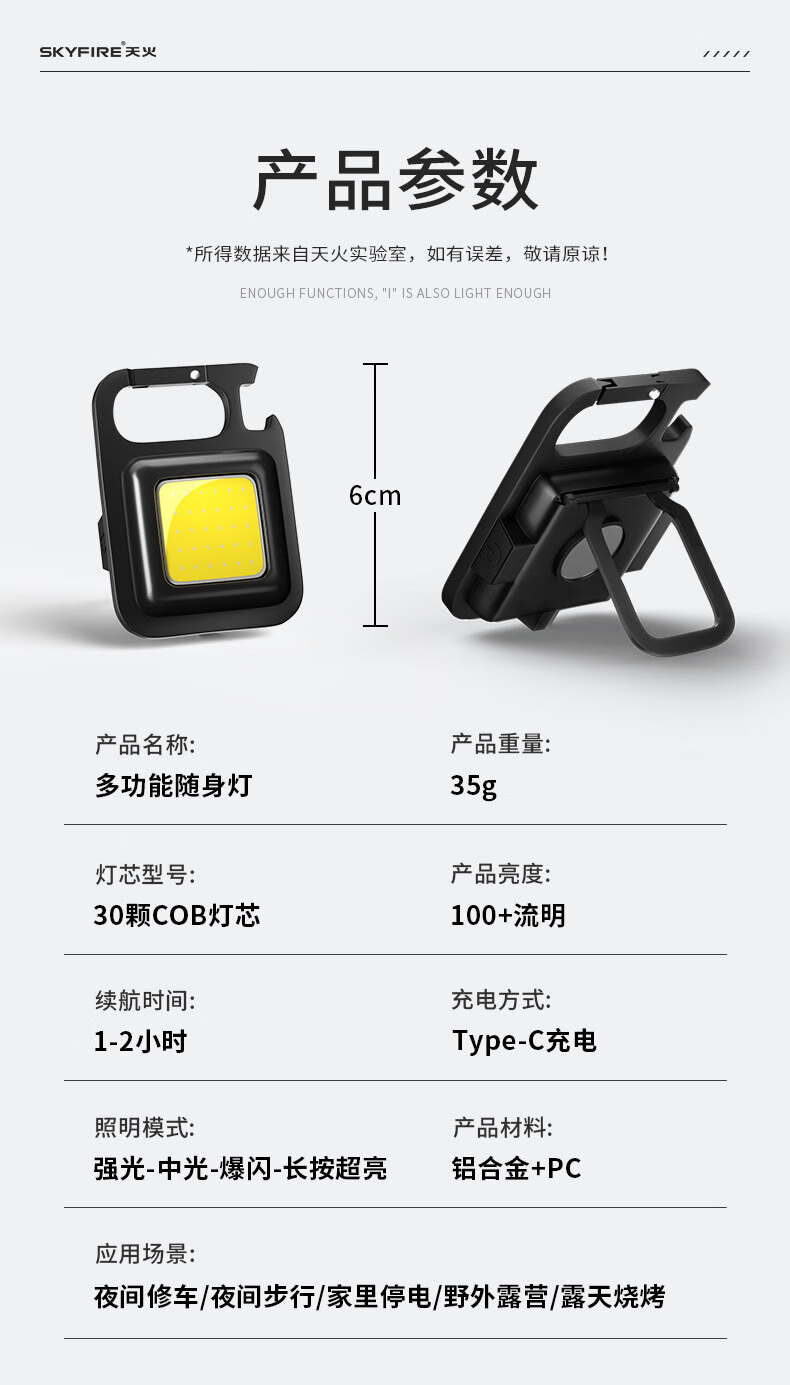 天火强光迷你钥匙扣手电筒应急灯便携充电强磁工作灯汽修灯投光灯 磁吸款钥匙扣灯丨通宵续航