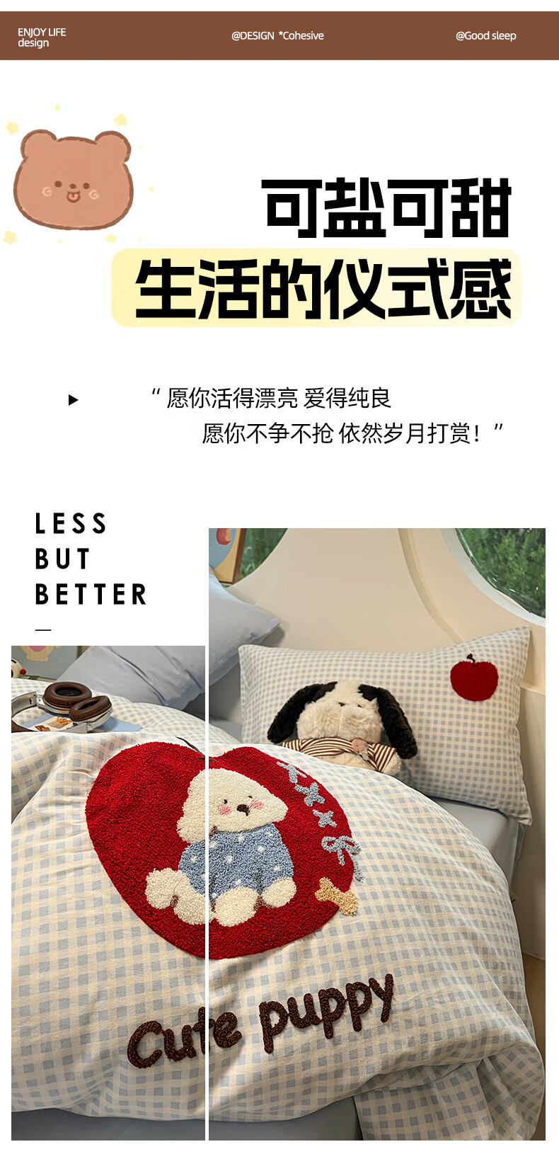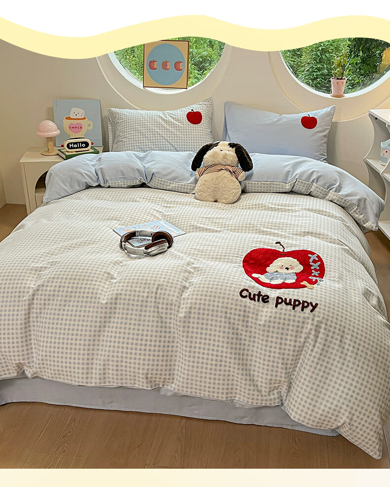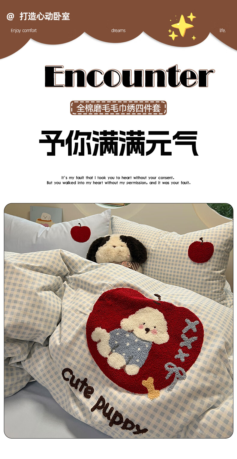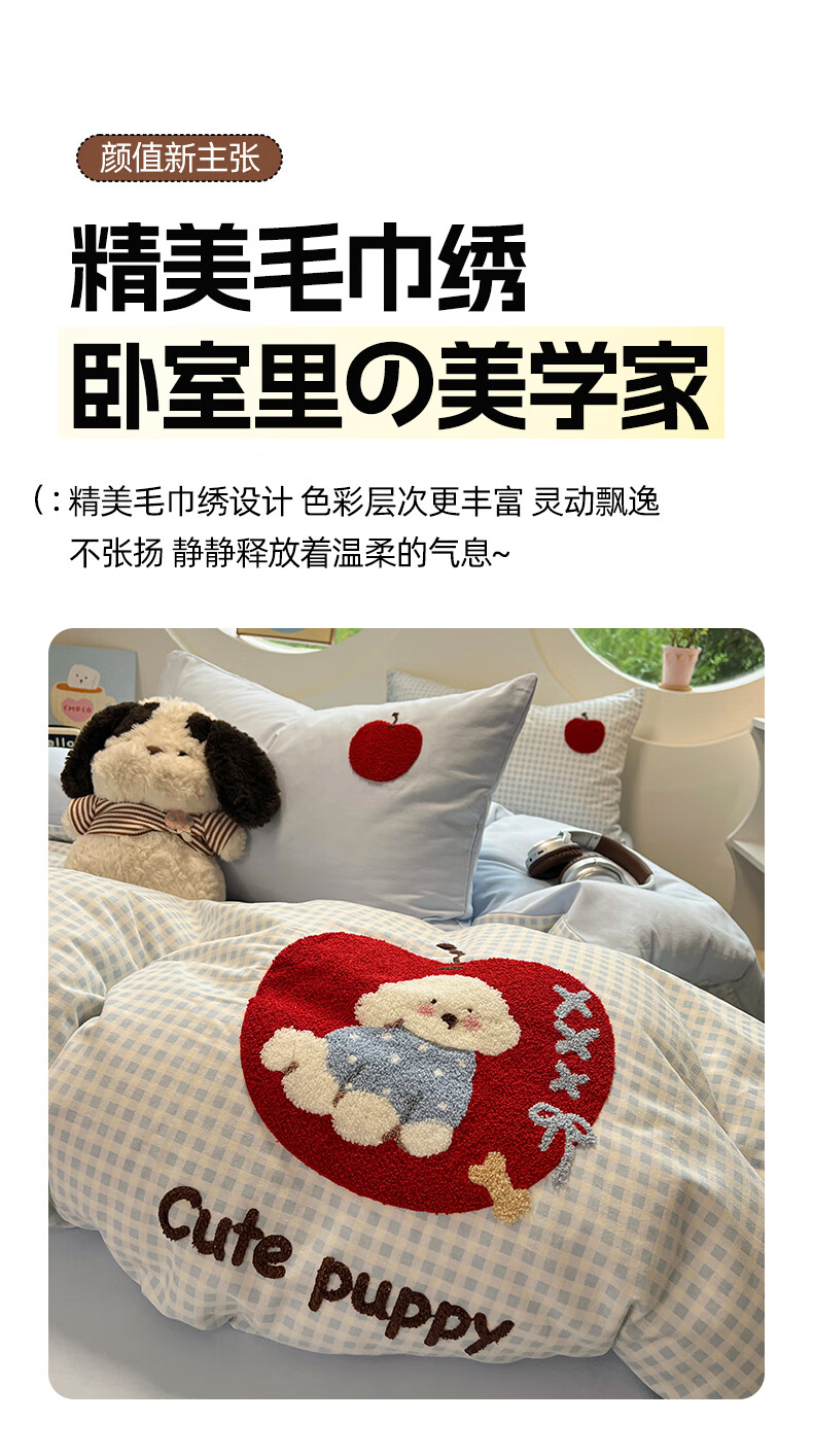 苏萱A类苹果狗毛巾绣全棉加厚磨毛四件套秋冬款纯棉被套床单床上用品4 糖果熊 1.8m 床单款 四件套-被套200x230cm