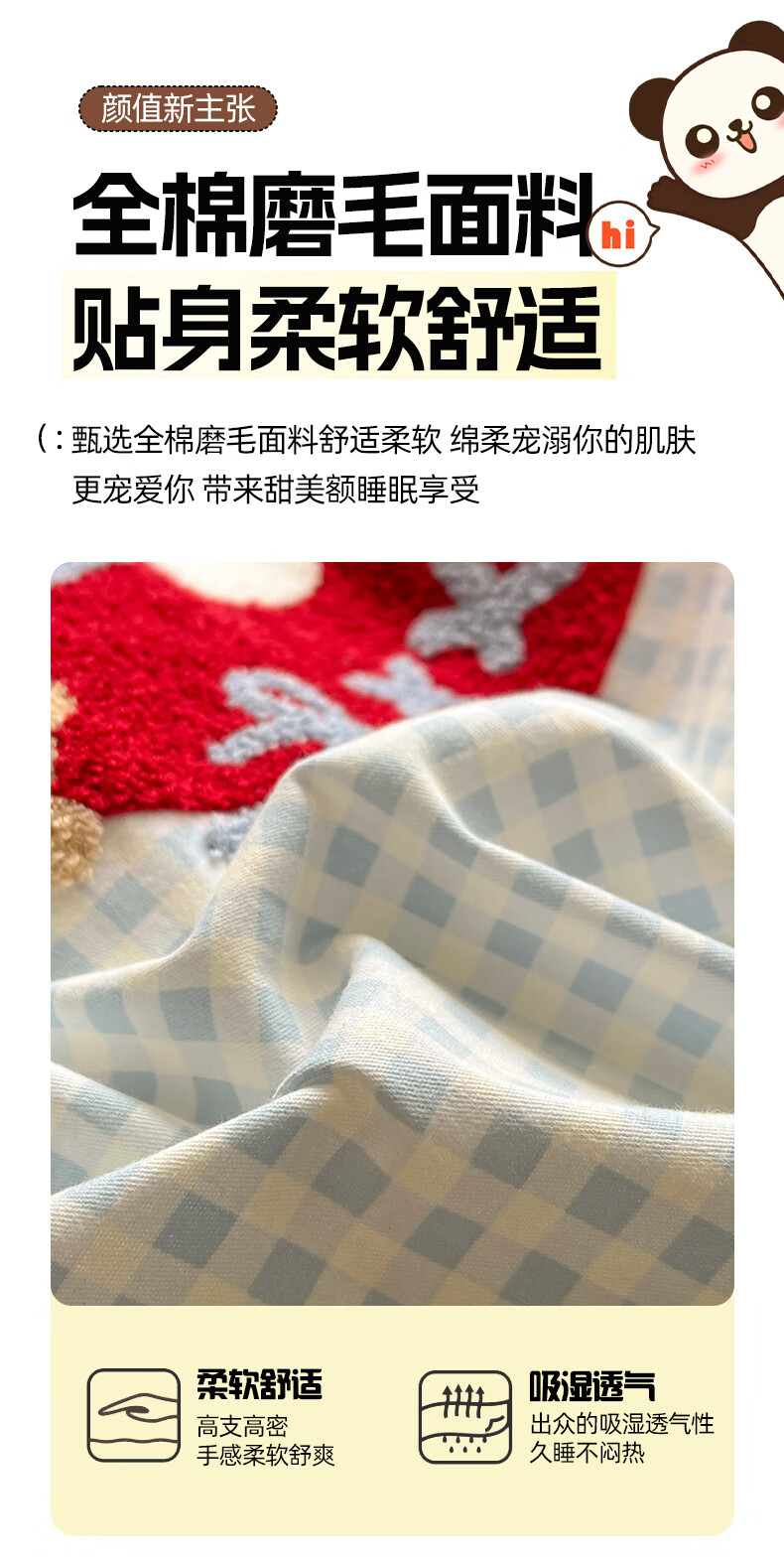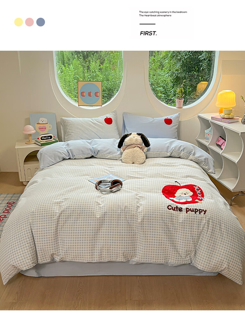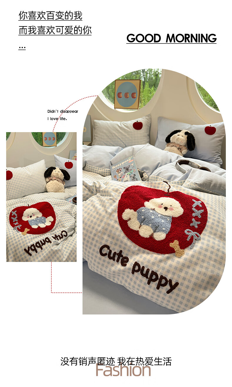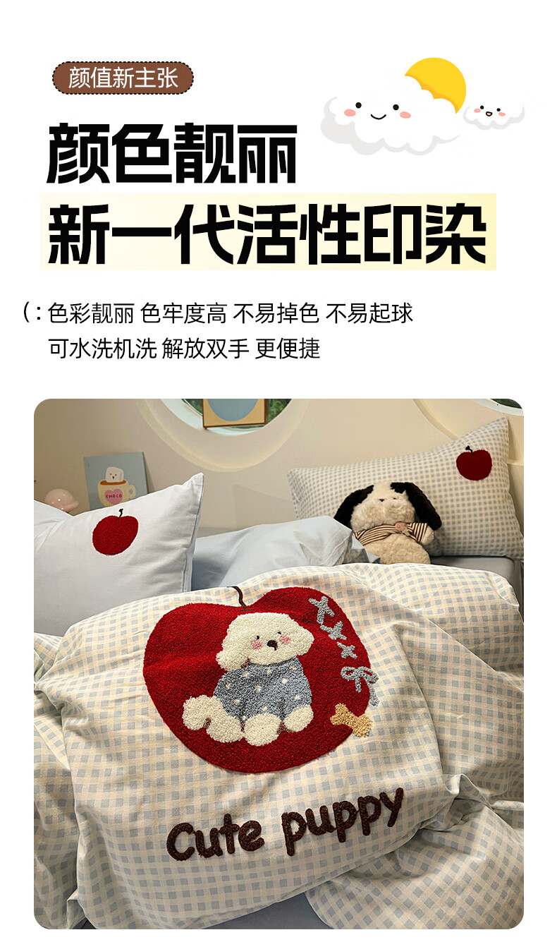 苏萱A类苹果狗毛巾绣全棉加厚磨毛四件套秋冬款纯棉被套床单床上用品4 糖果熊 1.8m 床单款 四件套-被套200x230cm