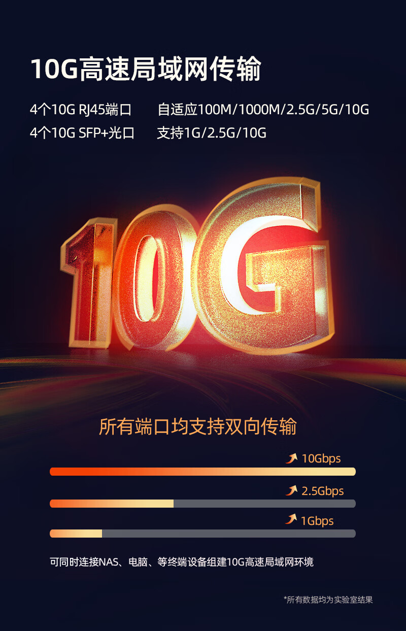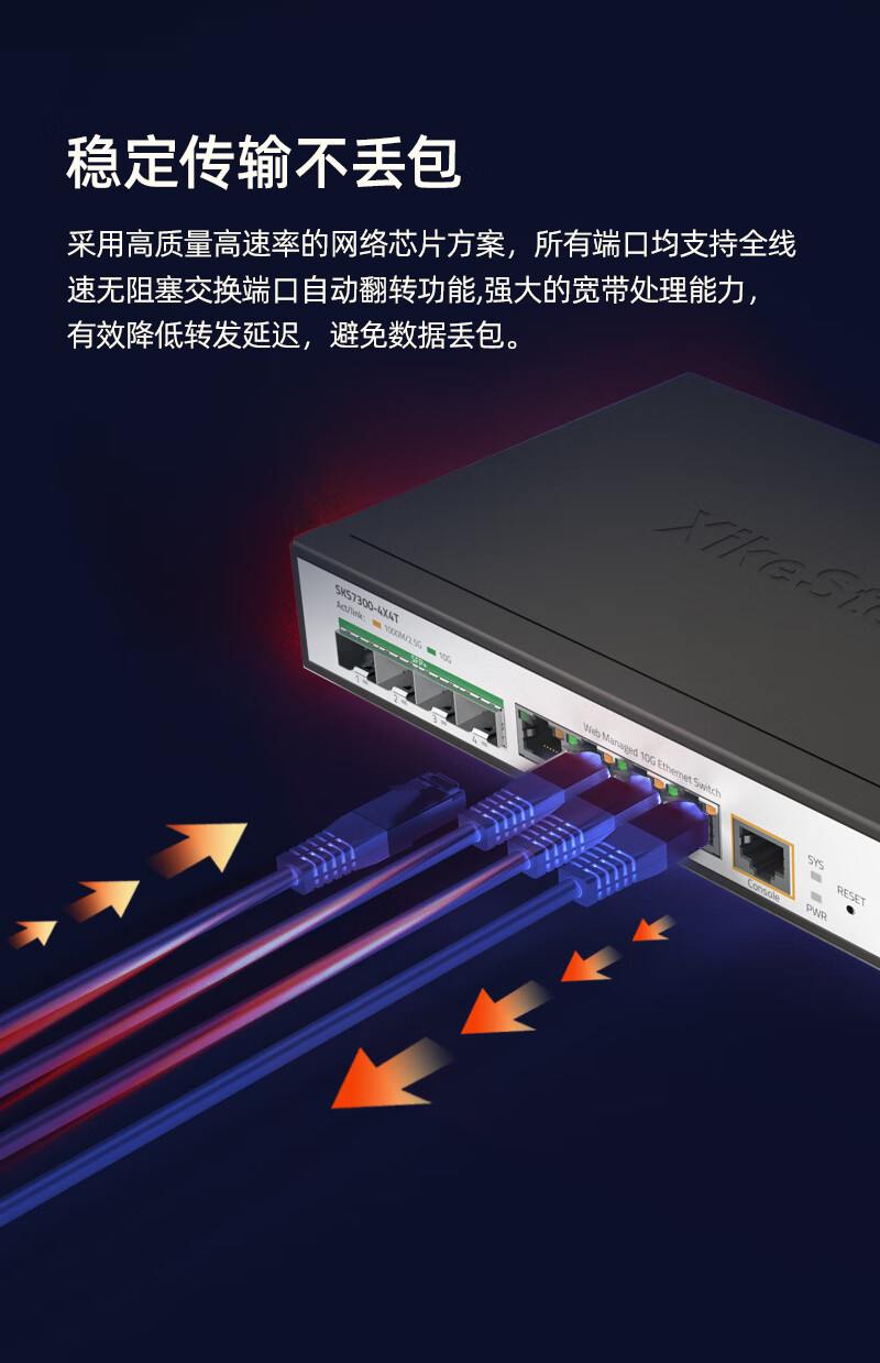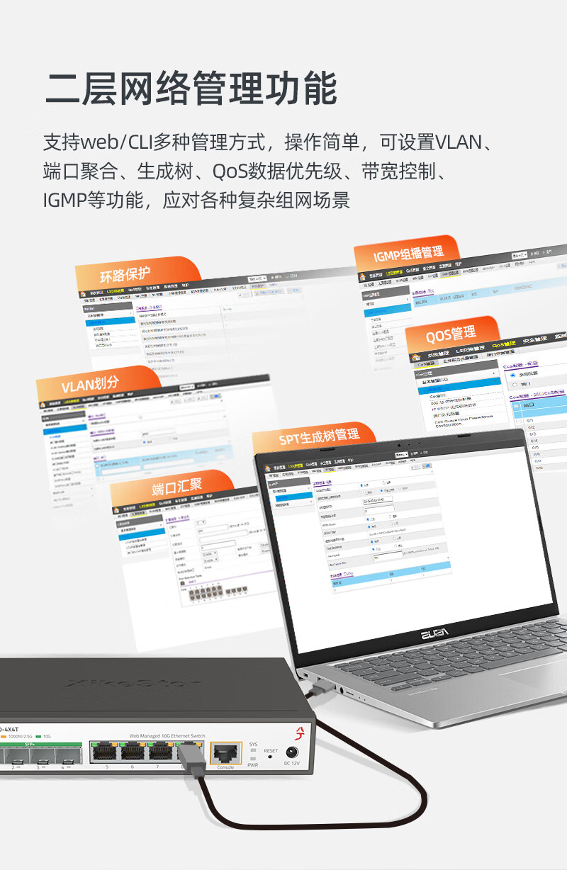 兮克8口全万兆交换机4口10G光口+4口10G电口兼容1G/2.5G/5G二层网管交换机支持VLAN 聚合SKS7300-4X4T