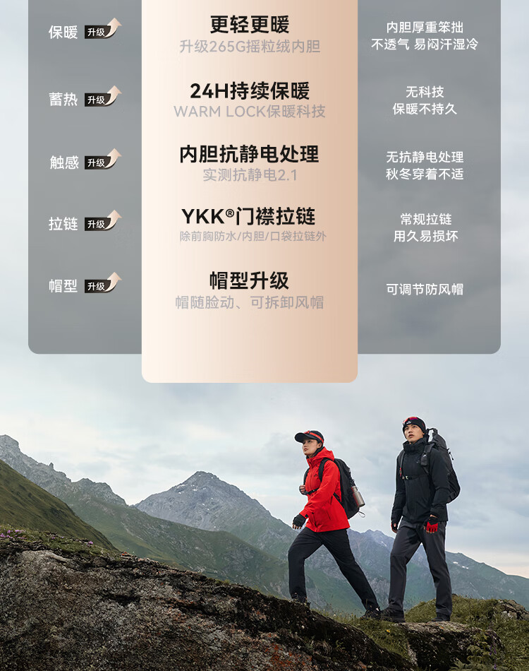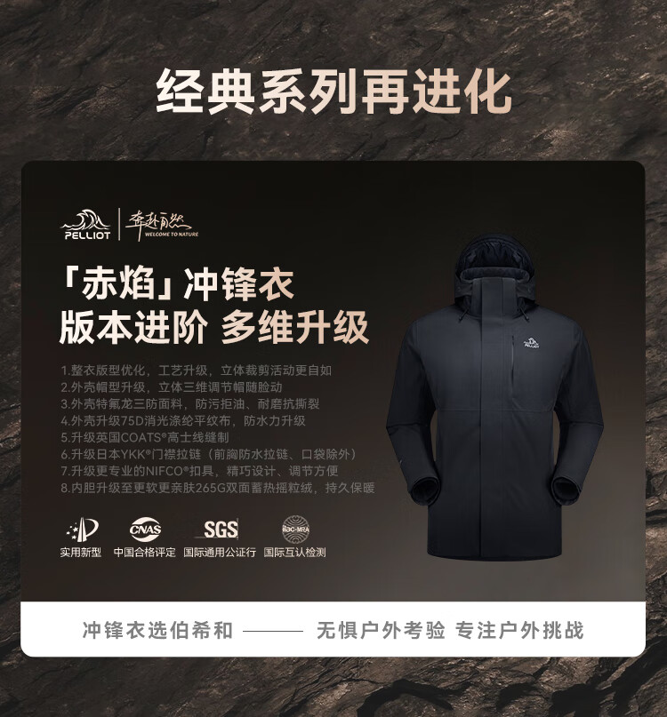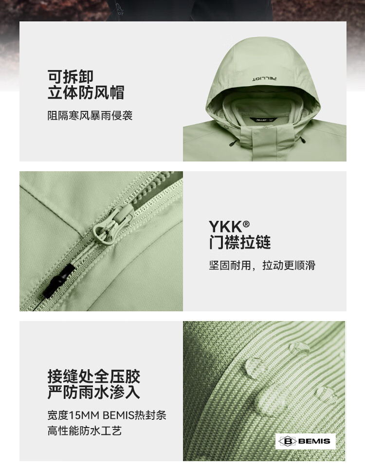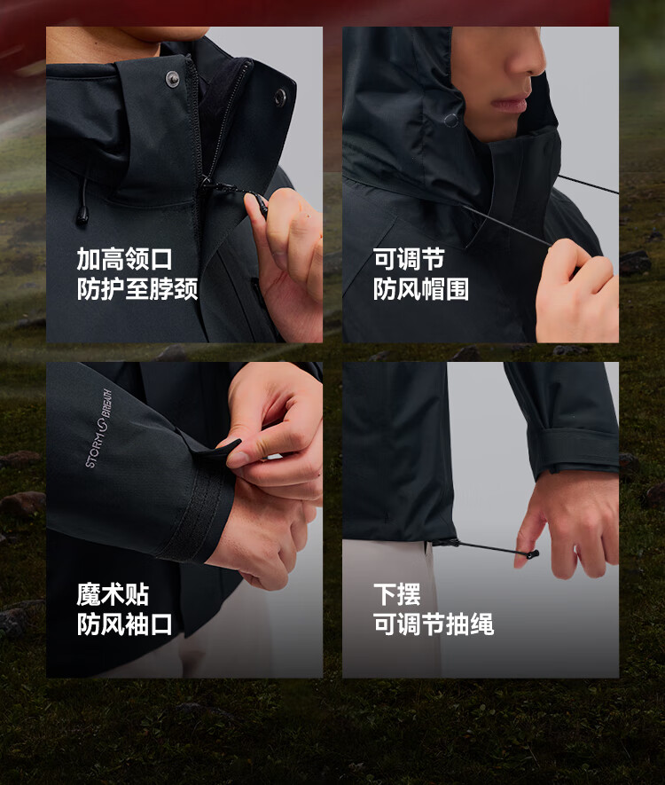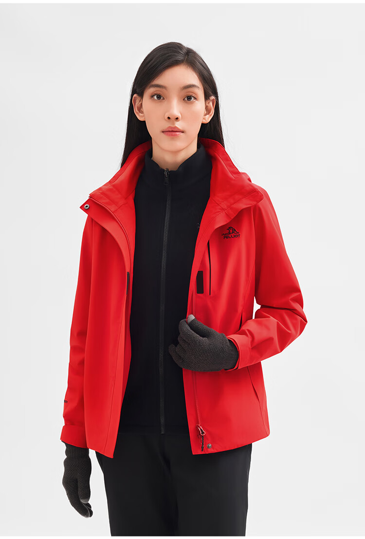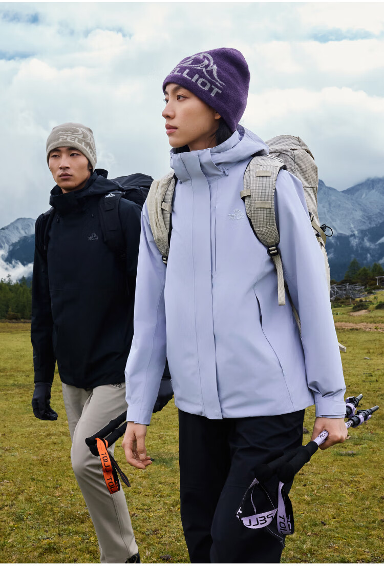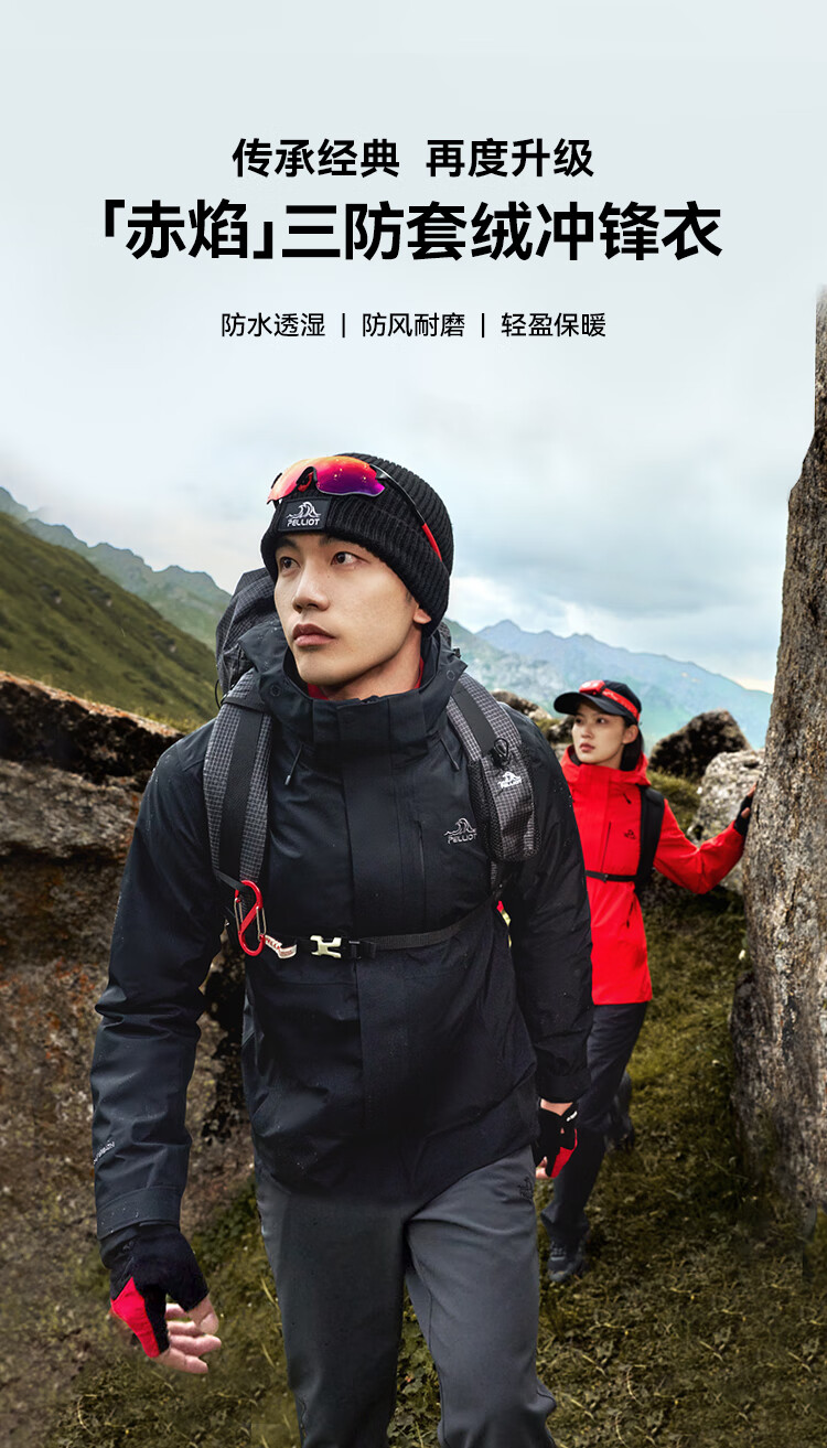 伯希和(Pelliot)[赤焰]户外抓绒三合一冲锋衣男女防风防水夹克外套115301063黑L