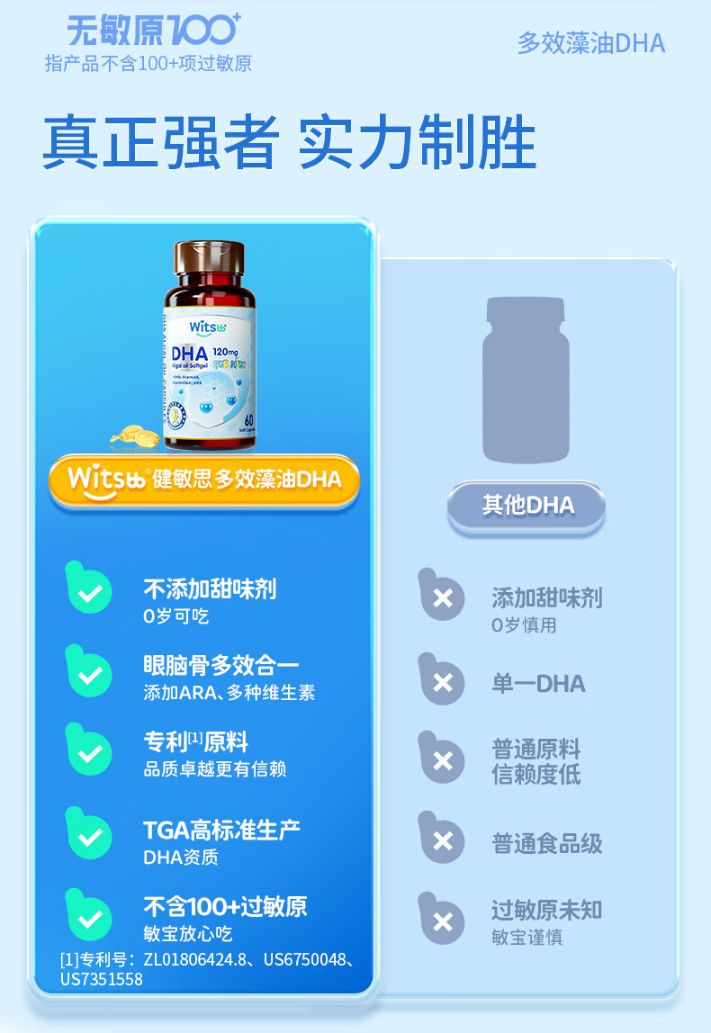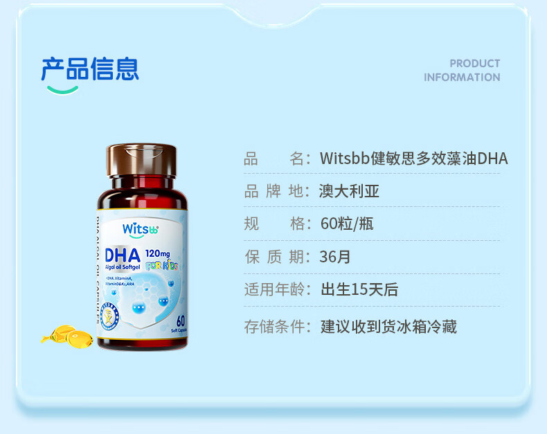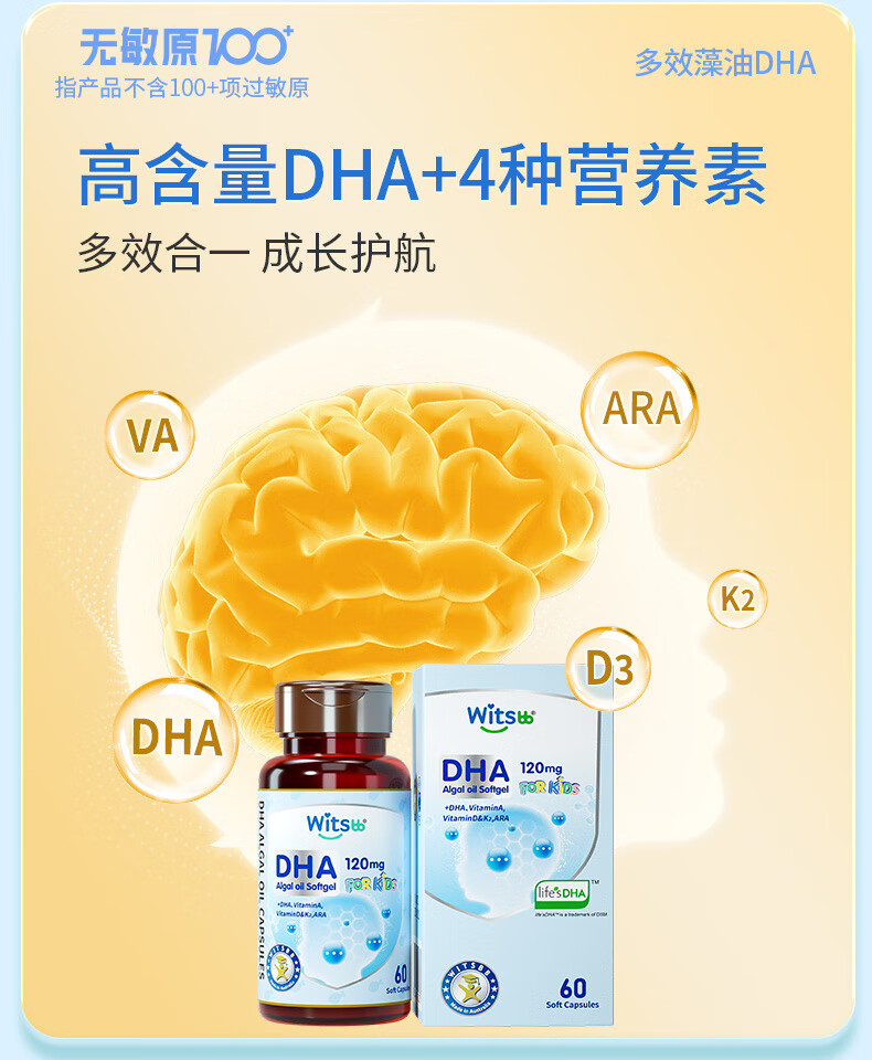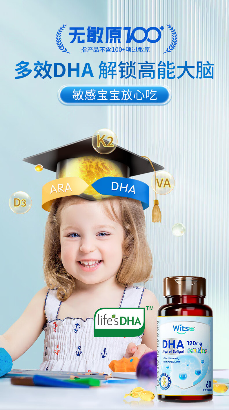witsbb健敏思藻油dha多效复合DHA宝宝儿童藻油60粒敏宝专研