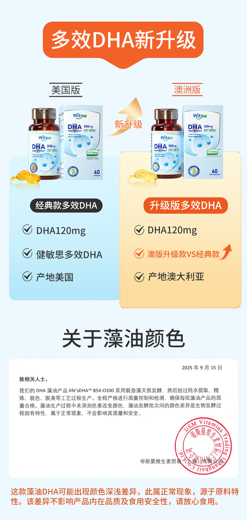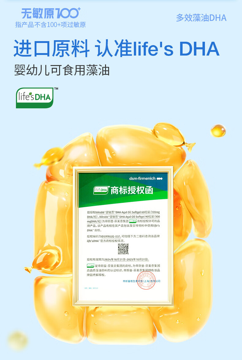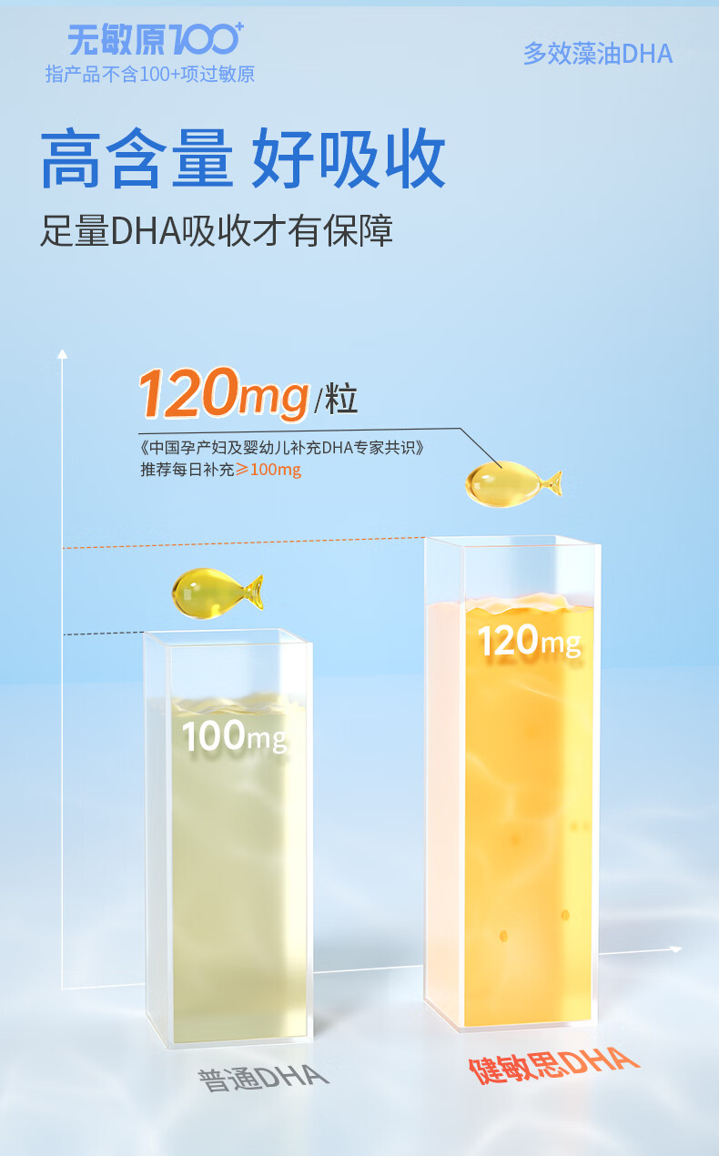 witsbb健敏思藻油dha多效复合DHA宝宝儿童藻油60粒敏宝专研