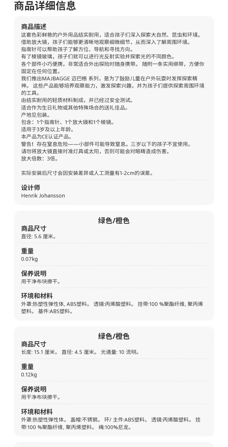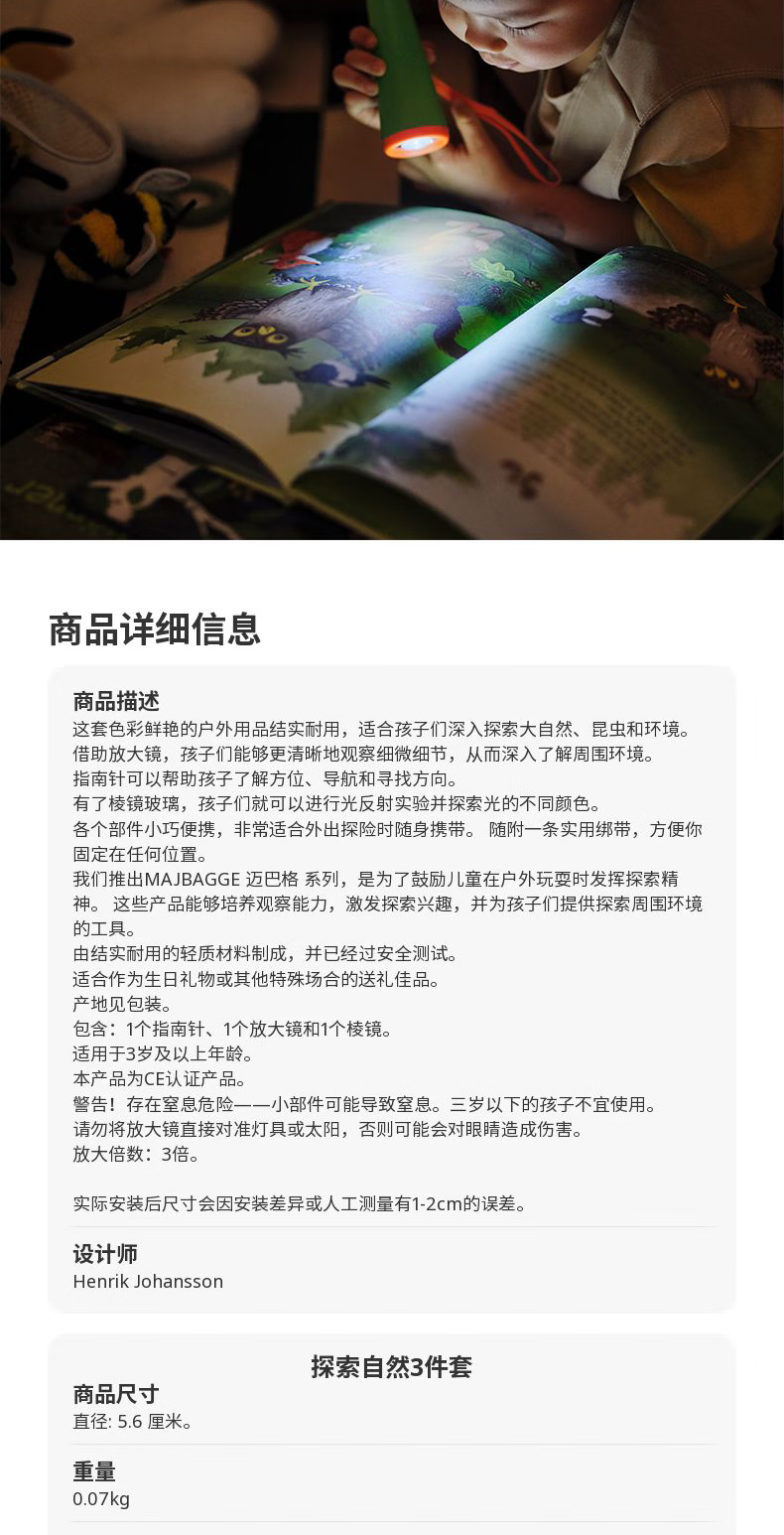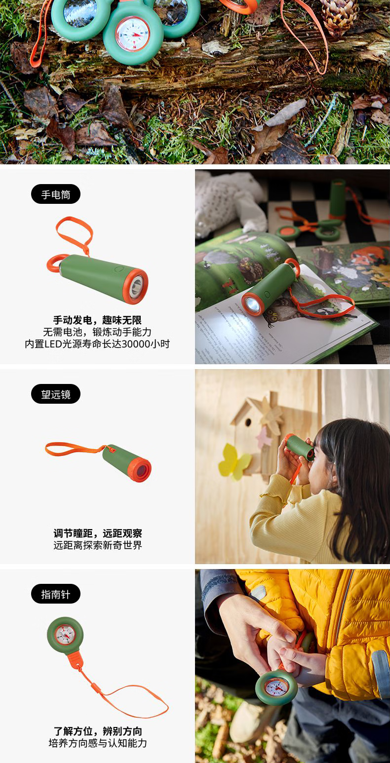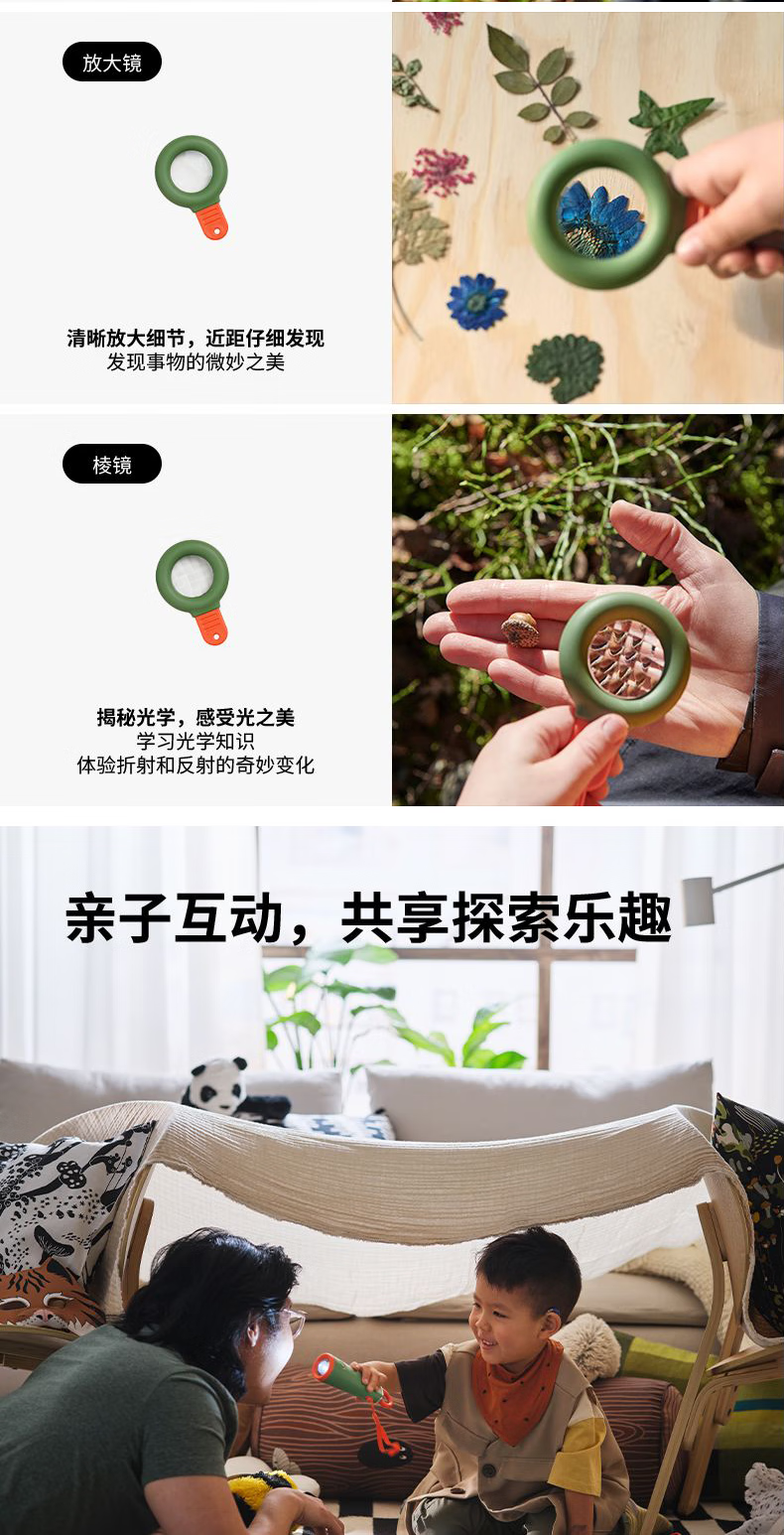 宜家(IKEA)【新品】MAJBAGGE迈巴格探索玩具早教益智指南针放大镜棱镜玩具 手动的LED手电