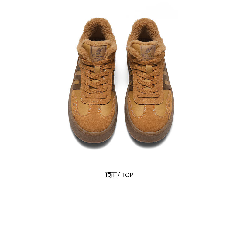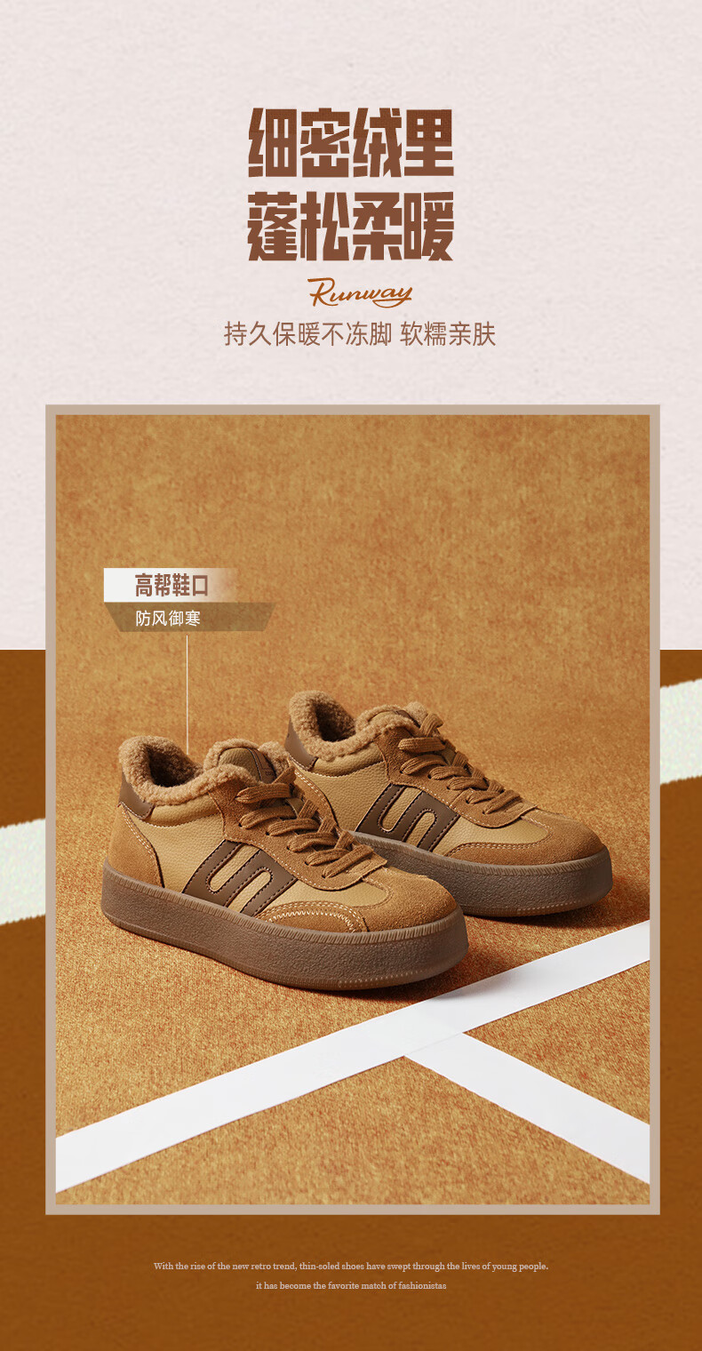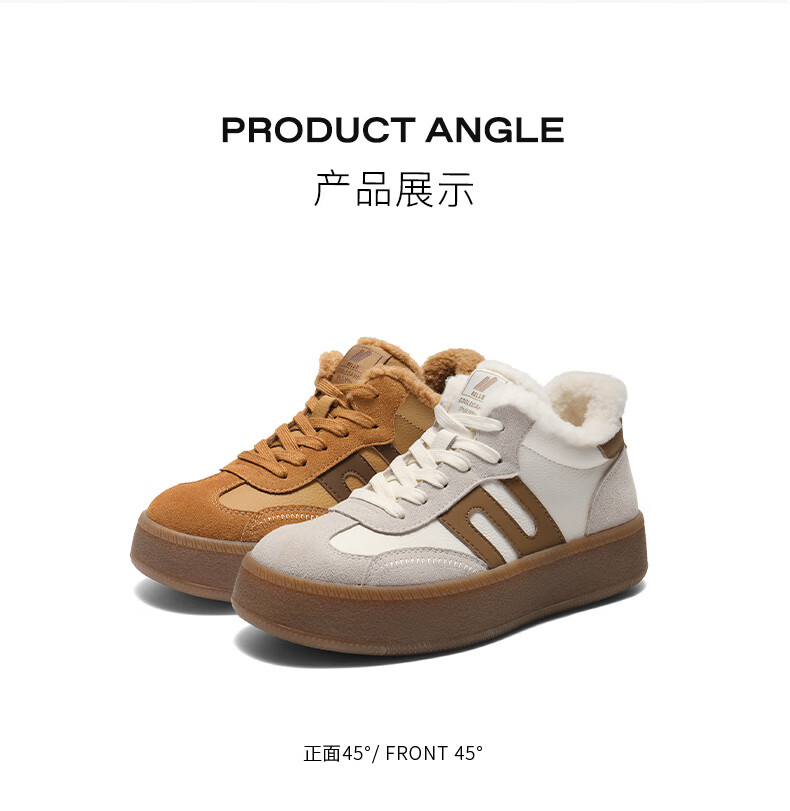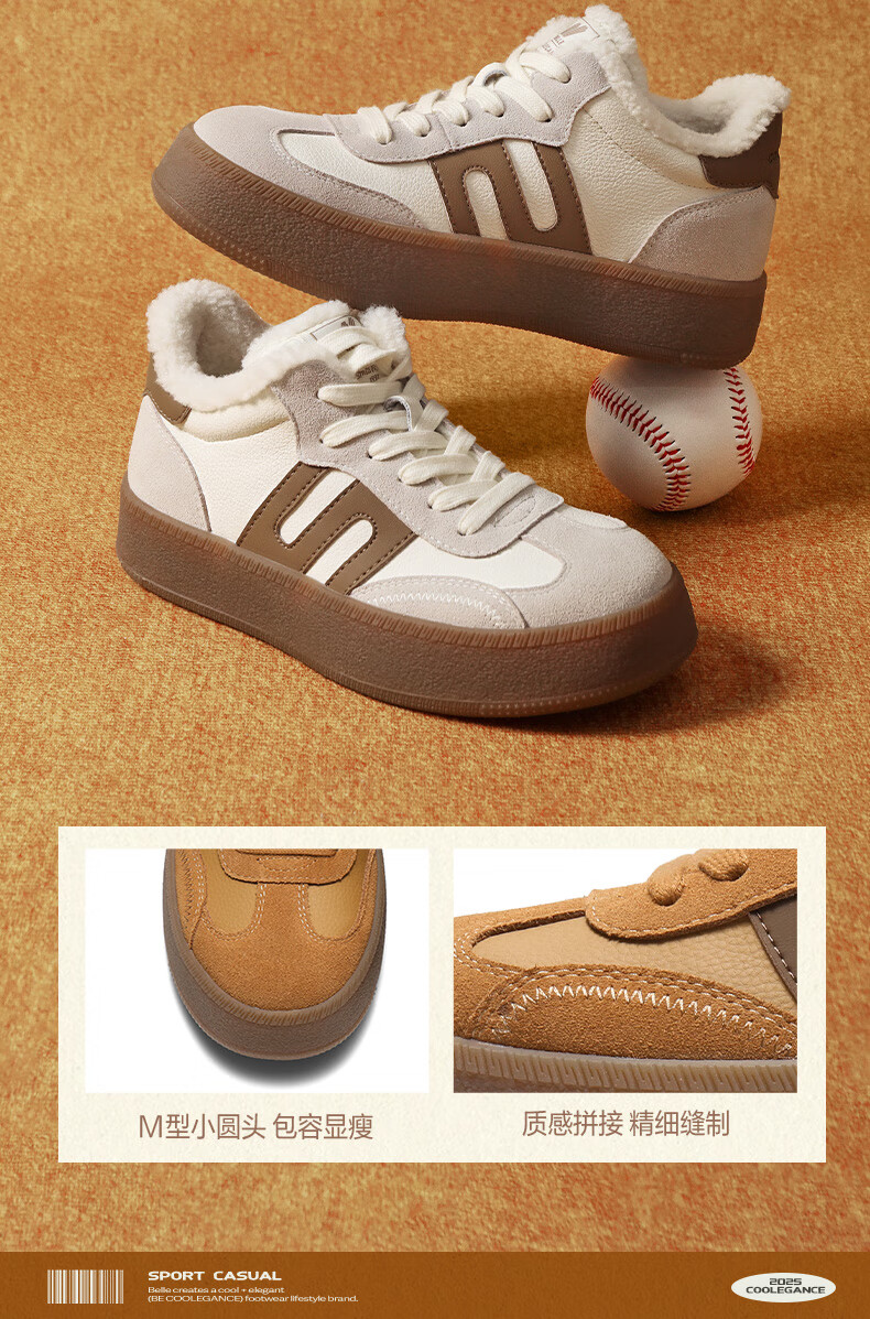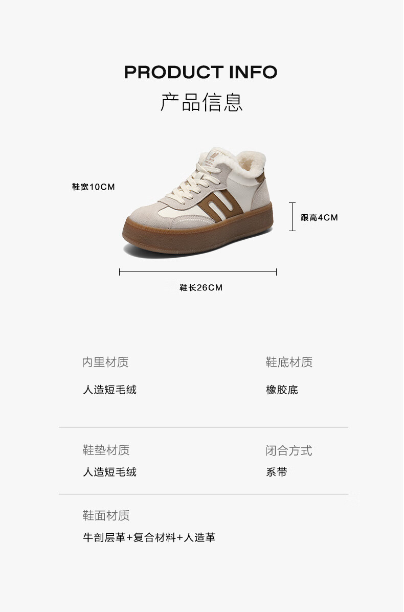 百丽(Belle)撞色高帮板鞋女2025冬新商场同款舒适加绒保暖休闲鞋E5Q1DDD5 米白色-厚绒 39