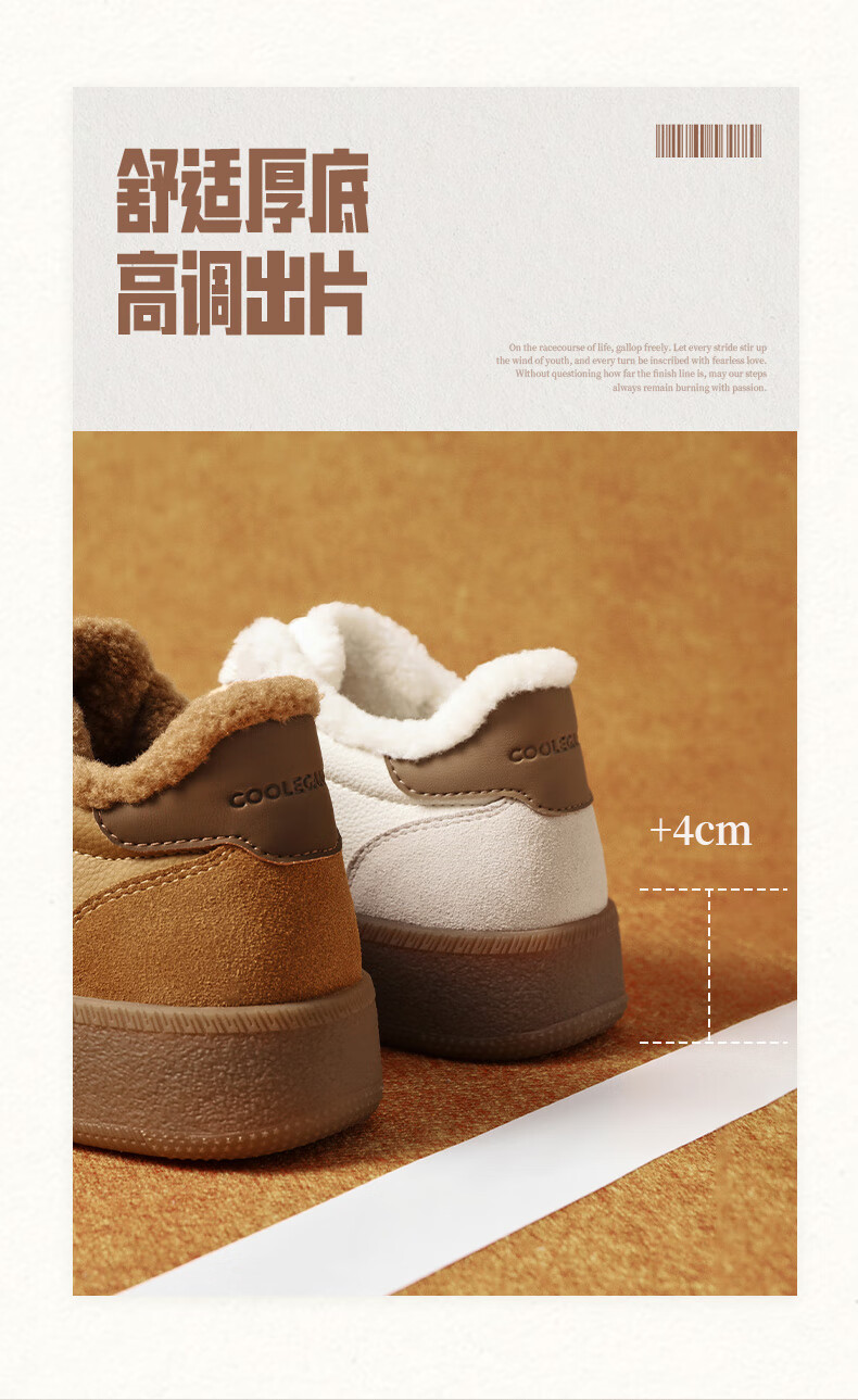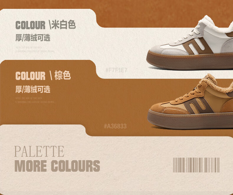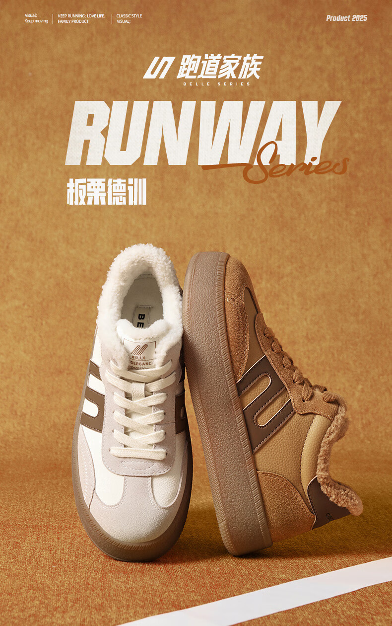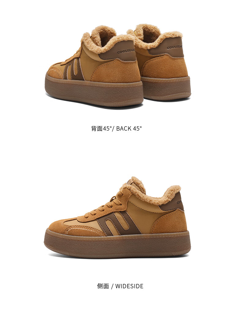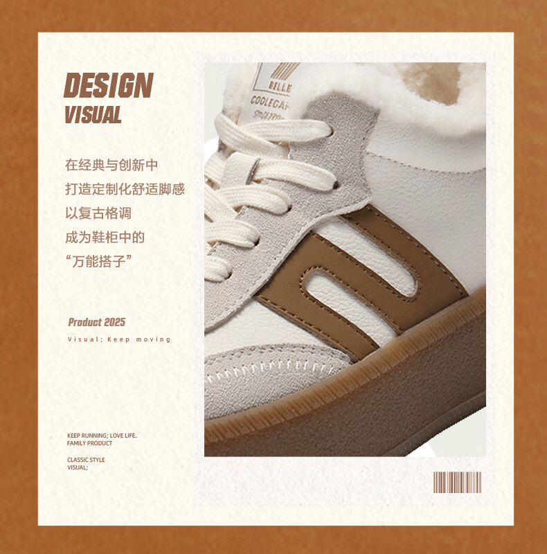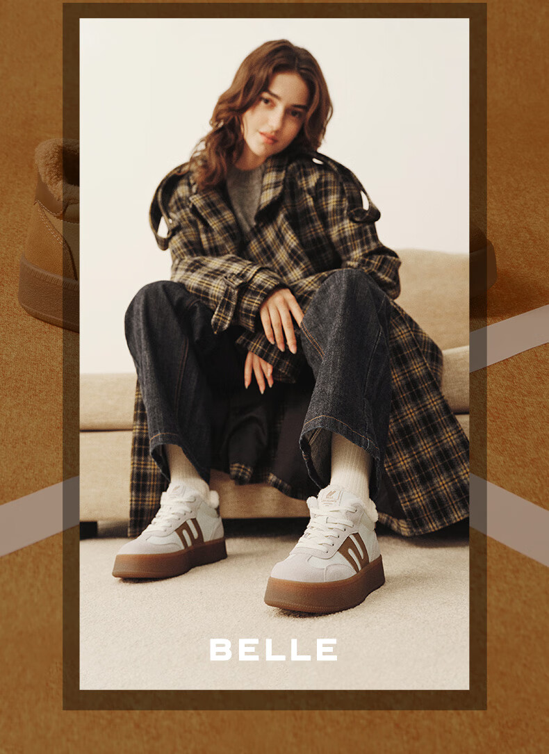百丽(Belle)撞色高帮板鞋女2025冬新商场同款舒适加绒保暖休闲鞋E5Q1DDD5 米白色-厚绒 39