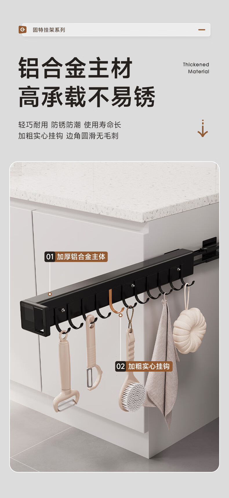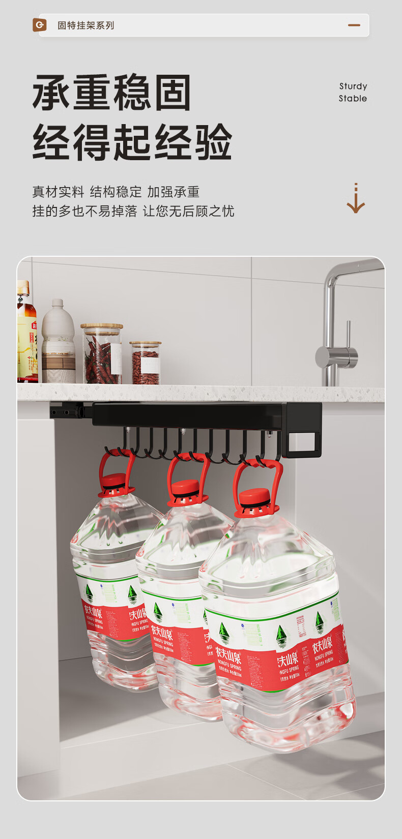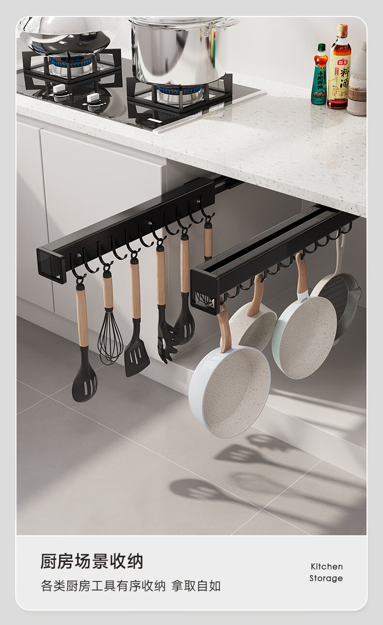 固特多功能挂钩衣柜裤架挂衣架内衣收纳架可伸缩挂杆阳台工具拖把架 顶装缓冲【深度≥420】9钩