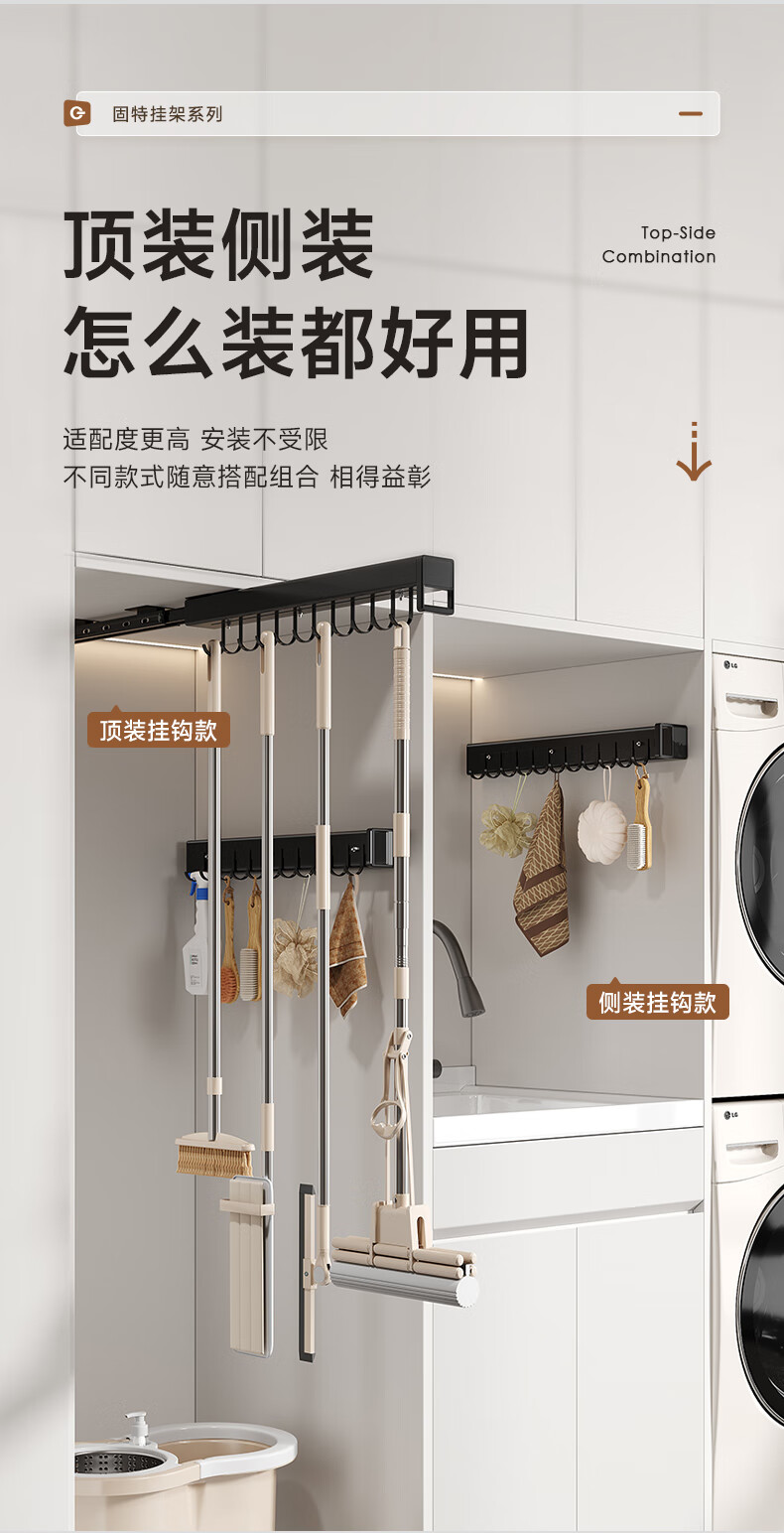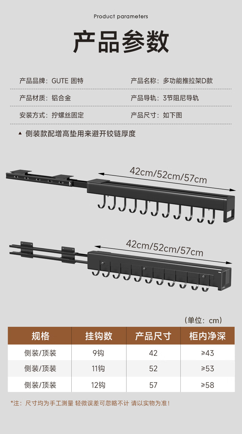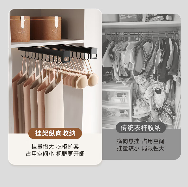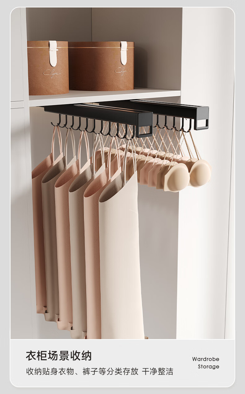 固特抽拉式可伸缩架裤架多功能挂衣杆晾衣架衣柜收纳裤挂裤抽滑轨 顶/侧两用款【柜深≥25.5】黑色