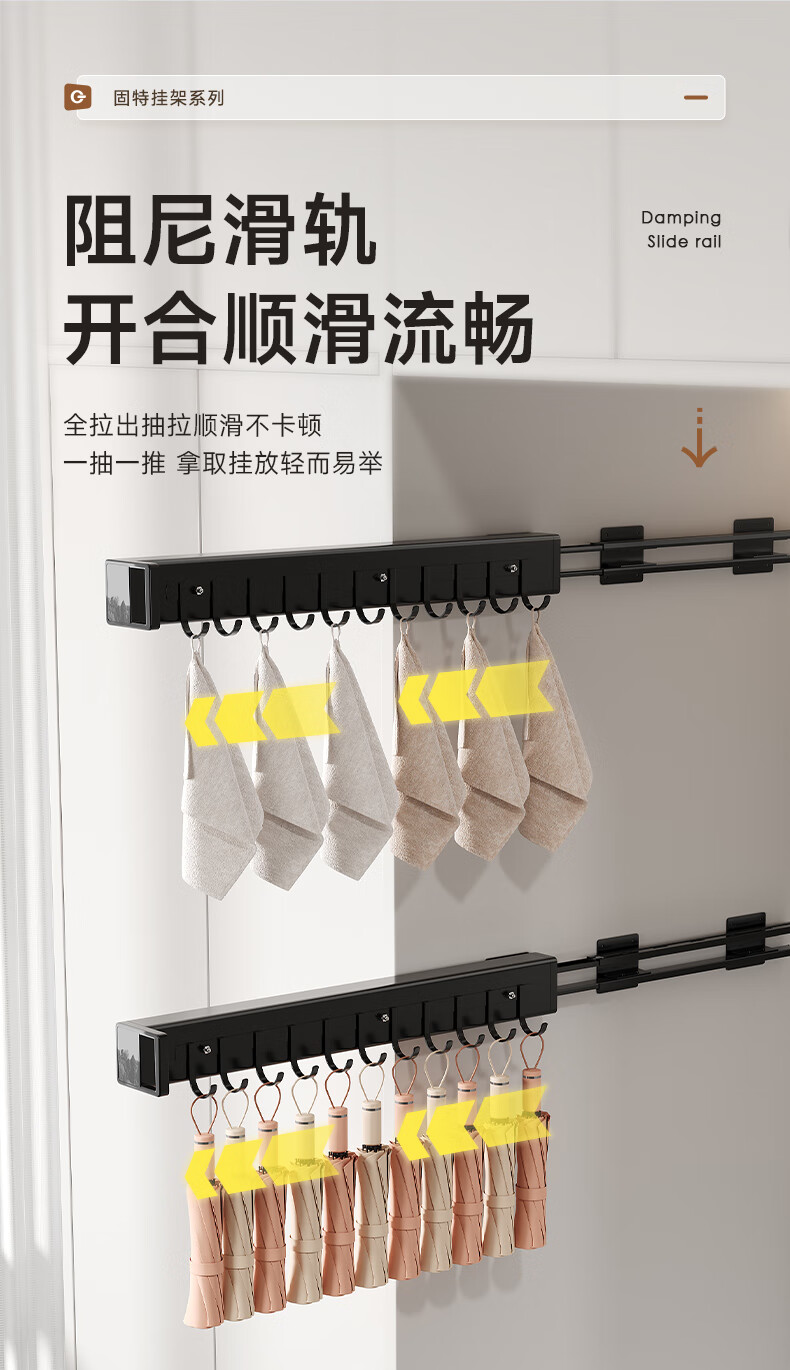 固特抽拉伸缩裤架滑轨衣柜柜内裤挂裤抽收纳架多功能挂衣杆衣架 028阻尼旗舰款(柜深≥260)黑色 1个