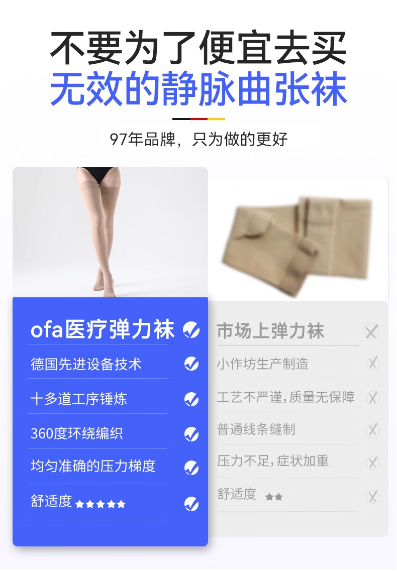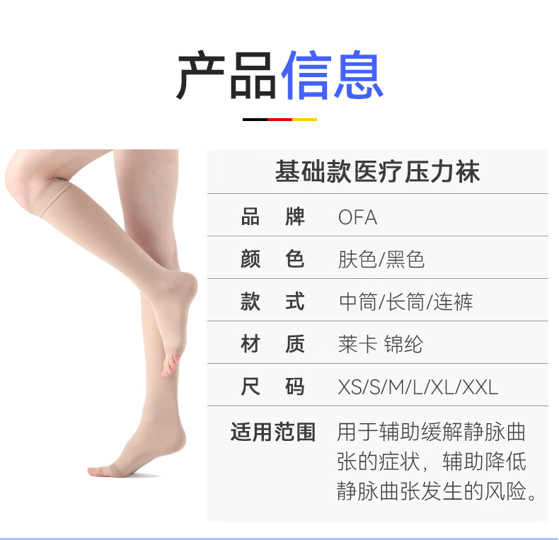 OFA德国奥法进口静脉曲张弹力袜医用治疗型二级压力长筒袜男女术后 中筒肤色露趾 二级压力 III (M)