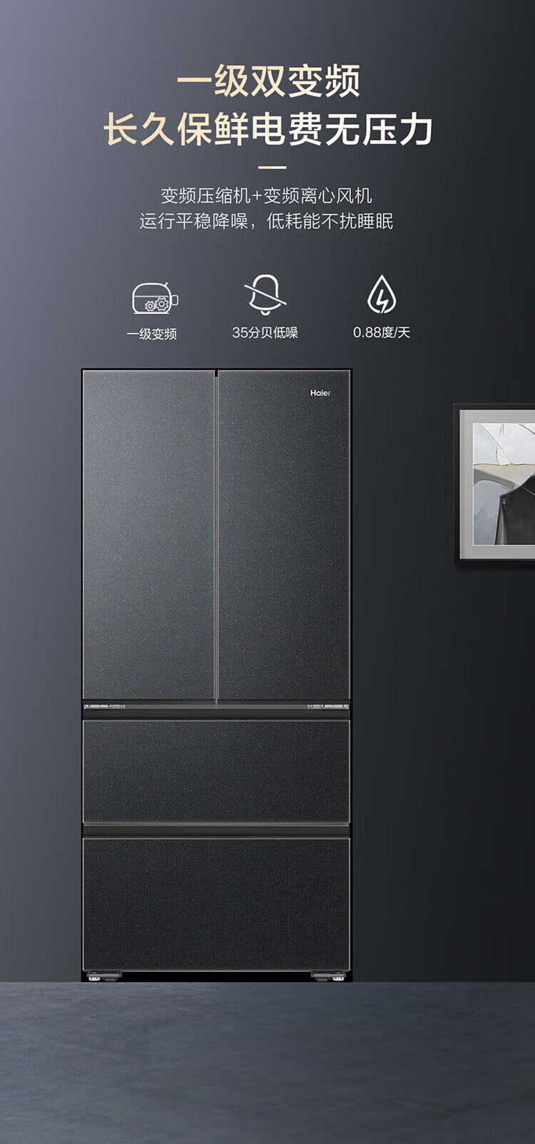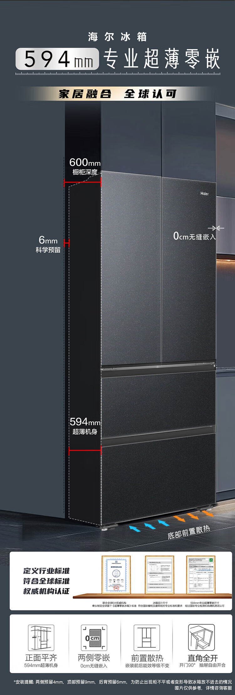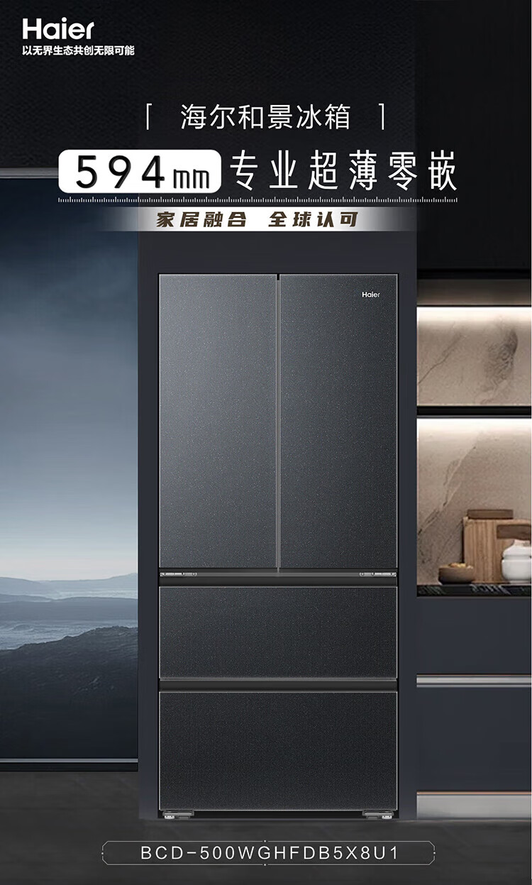 海尔(Haier)冰箱500升超薄零距离自由嵌入式60cm内法式多门四开门双门小红花套系一级能效变频大容量 500L+594mm超薄零嵌+黑金净化+干湿分储