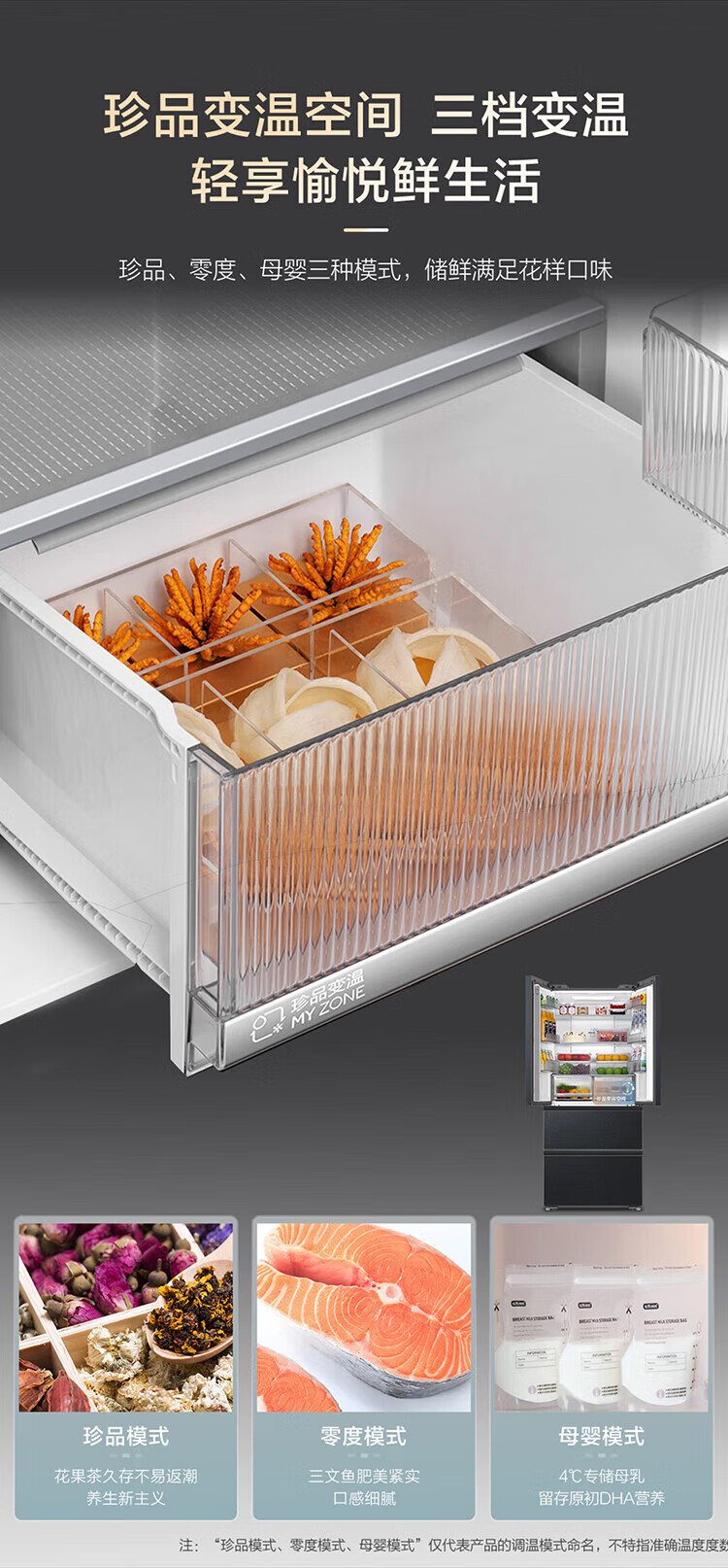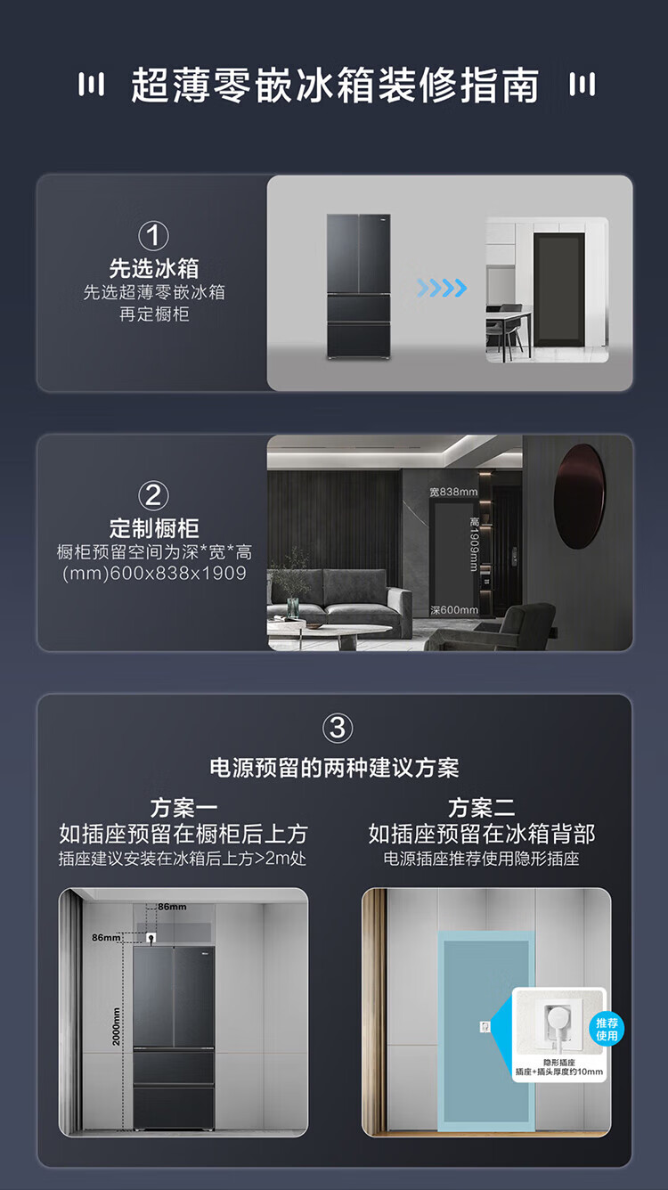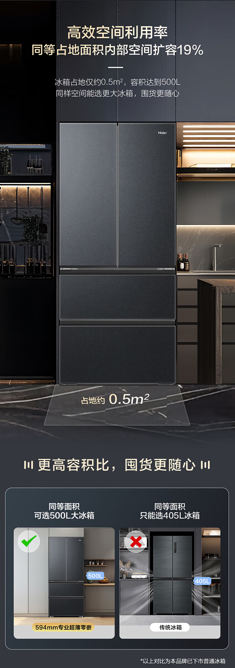 海尔(Haier)冰箱500升超薄零距离自由嵌入式60cm内法式多门四开门双门小红花套系一级能效变频大容量 500L+594mm超薄零嵌+黑金净化+干湿分储
