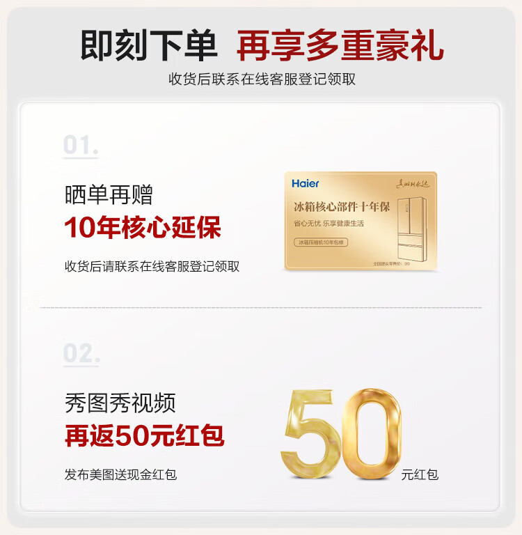 统帅(Leader)海尔冰箱出品506升一级能效白色四开门十字对开门T型超薄家用冰箱BCD-506WGLTD79M9U1国家补贴20%