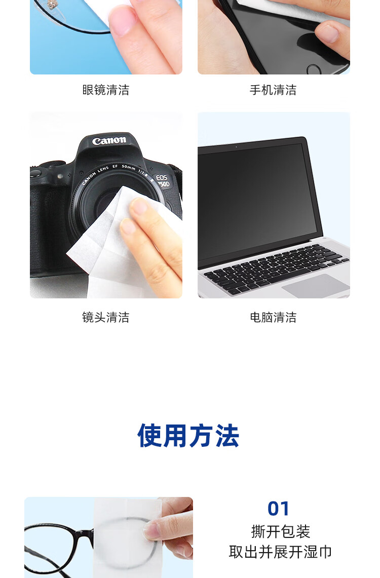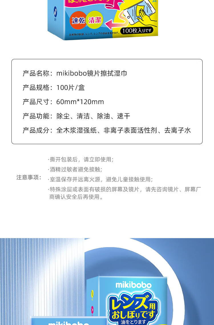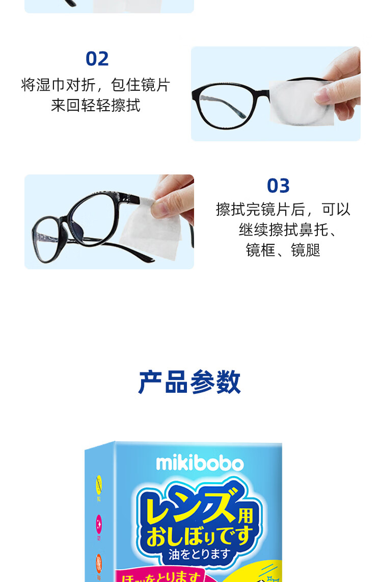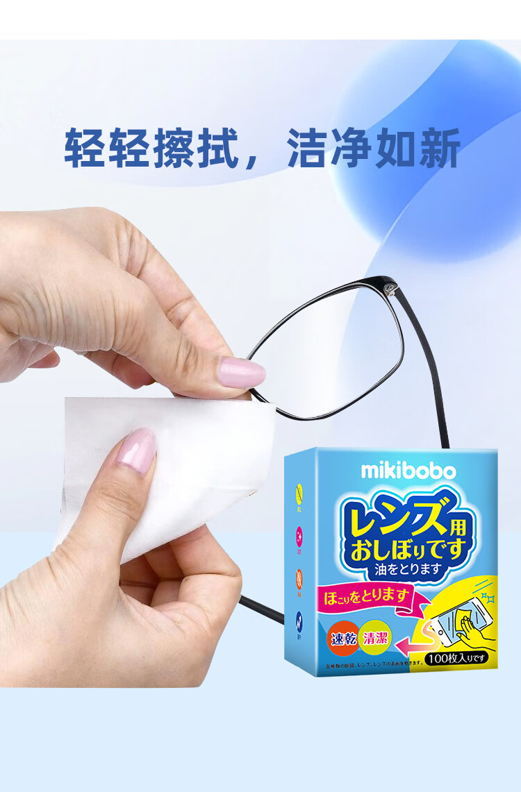 mikibobo眼镜清洁湿巾一次性擦镜纸镜片清洁纸速干无痕开学七夕