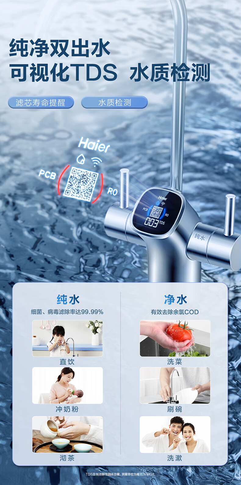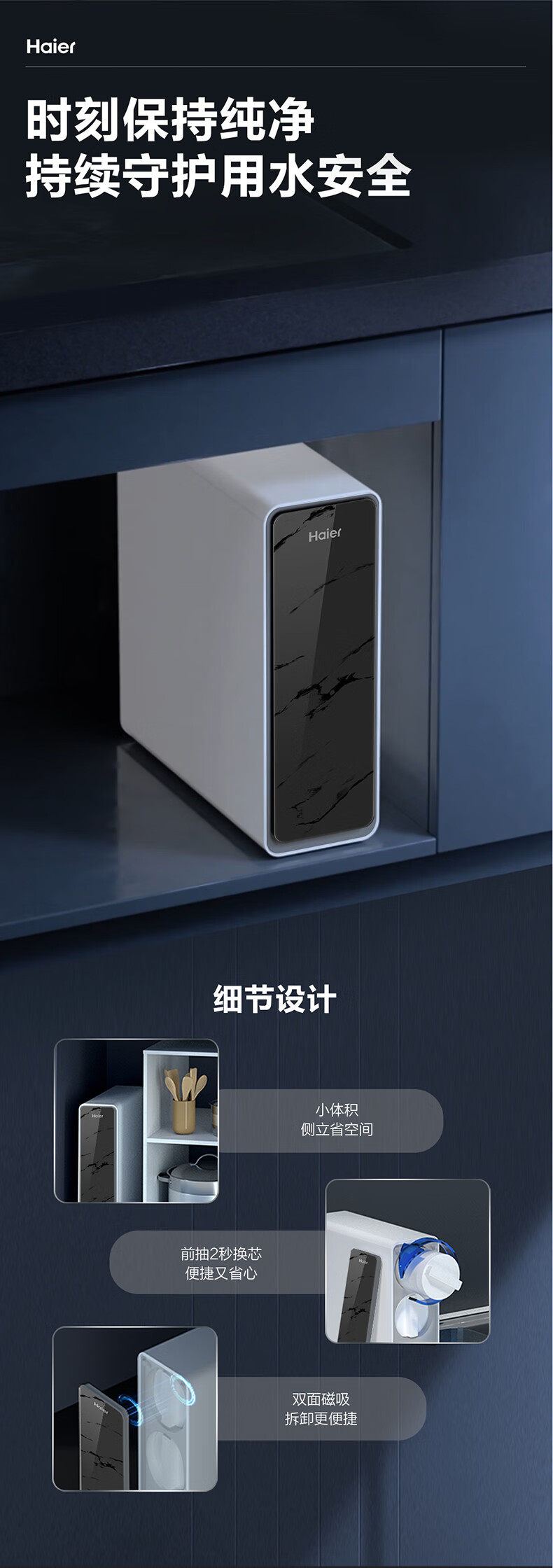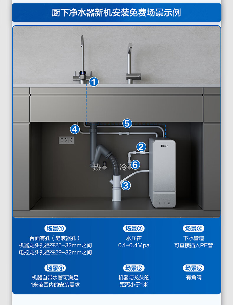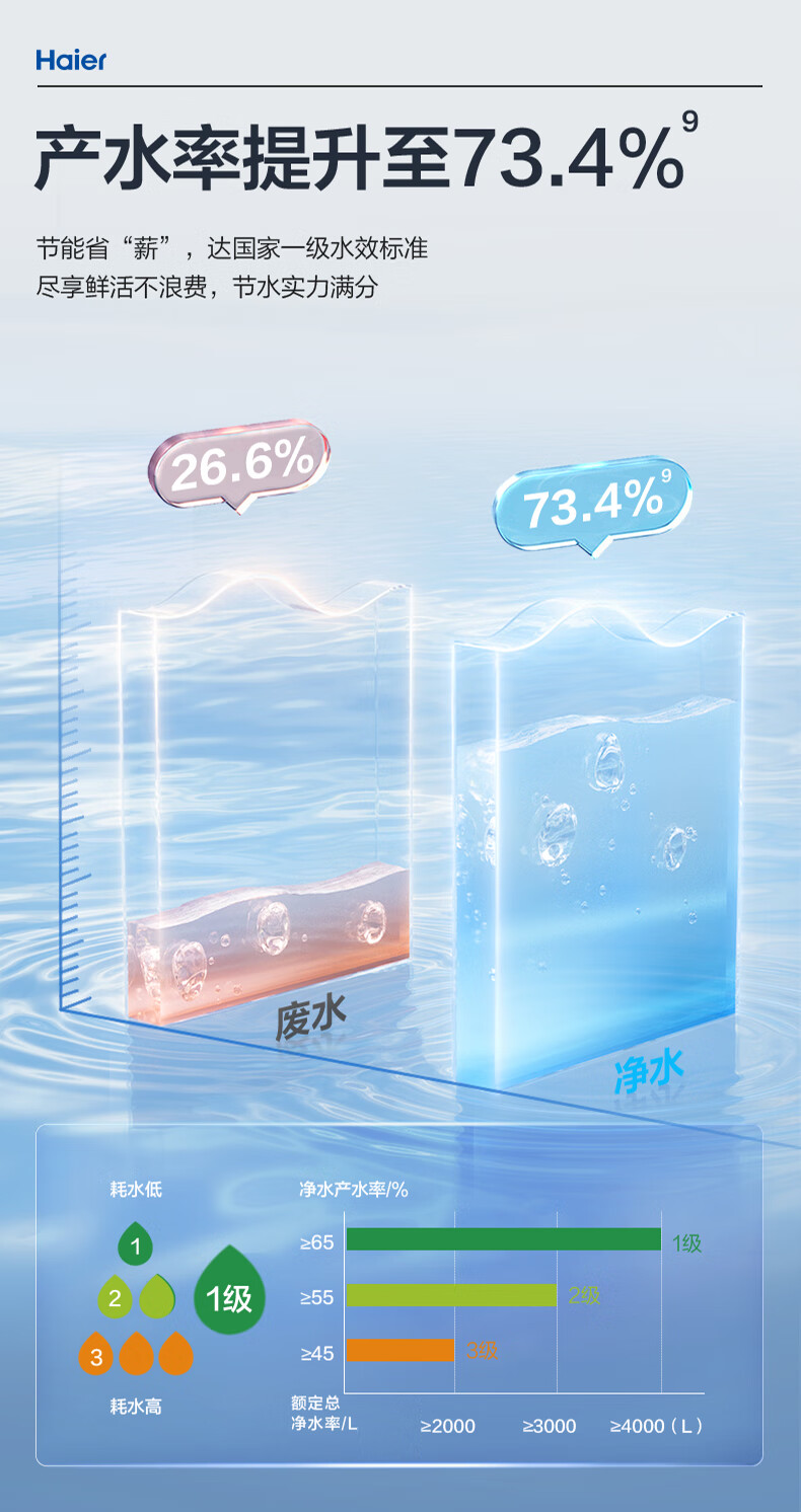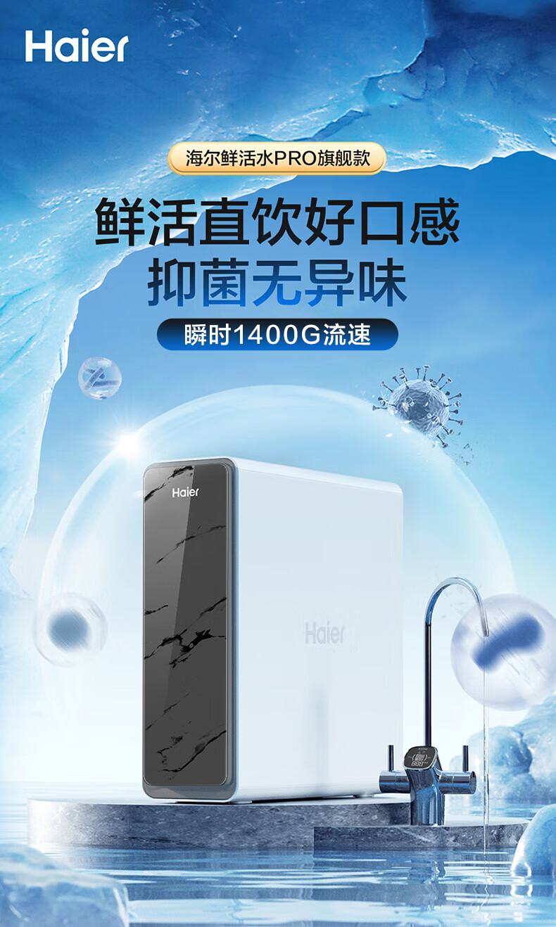 海尔(Haier)1400G鲜活水pro双出水净水器 政府补贴 家用星河厨下瞬时净水机 RO反渗透抑菌