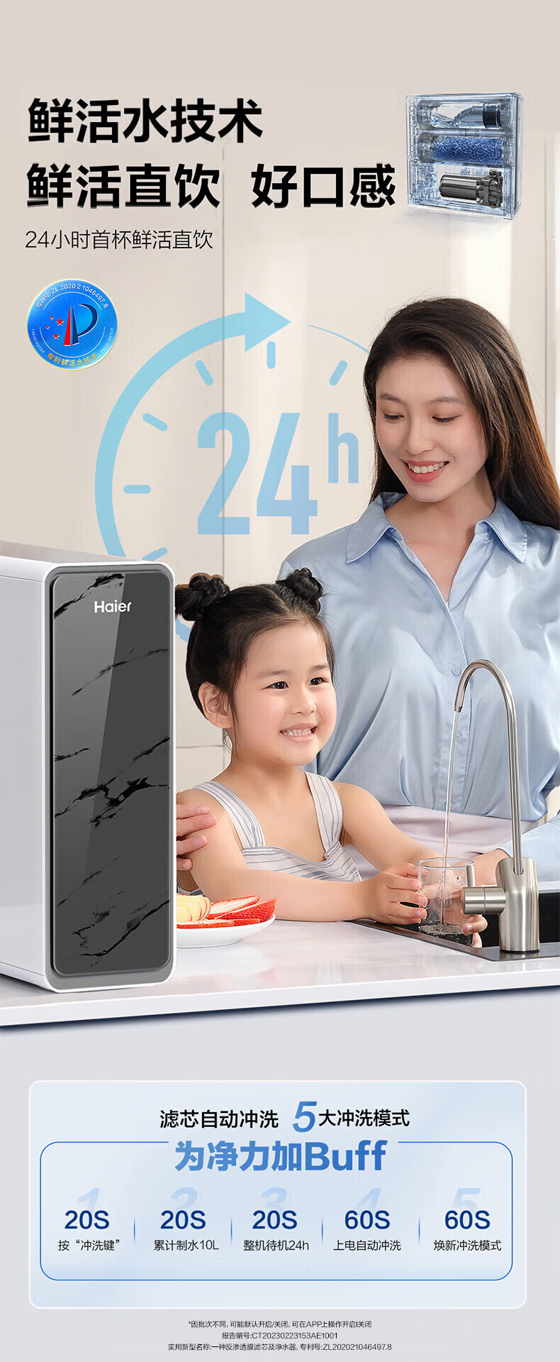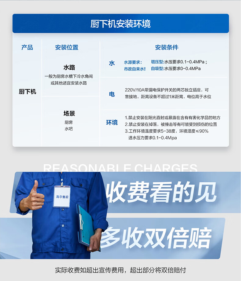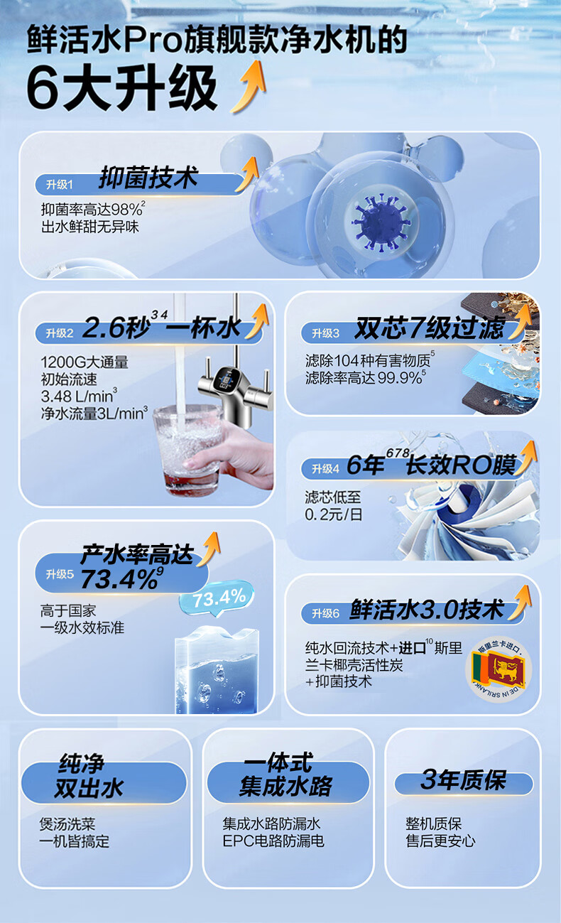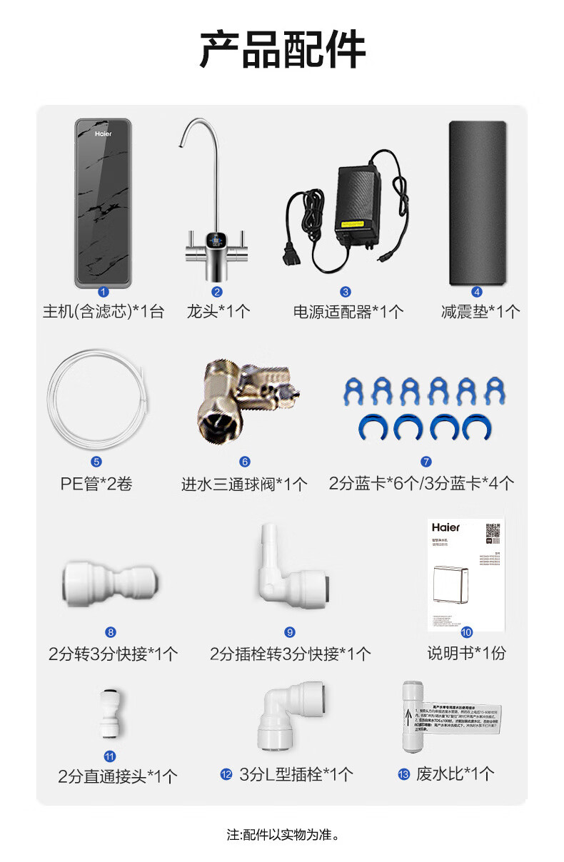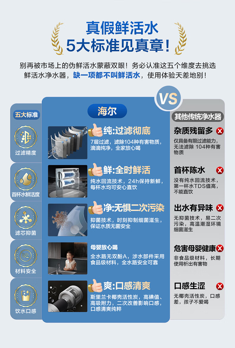 海尔(Haier)1400G鲜活水pro双出水净水器 政府补贴 家用星河厨下瞬时净水机 RO反渗透抑菌