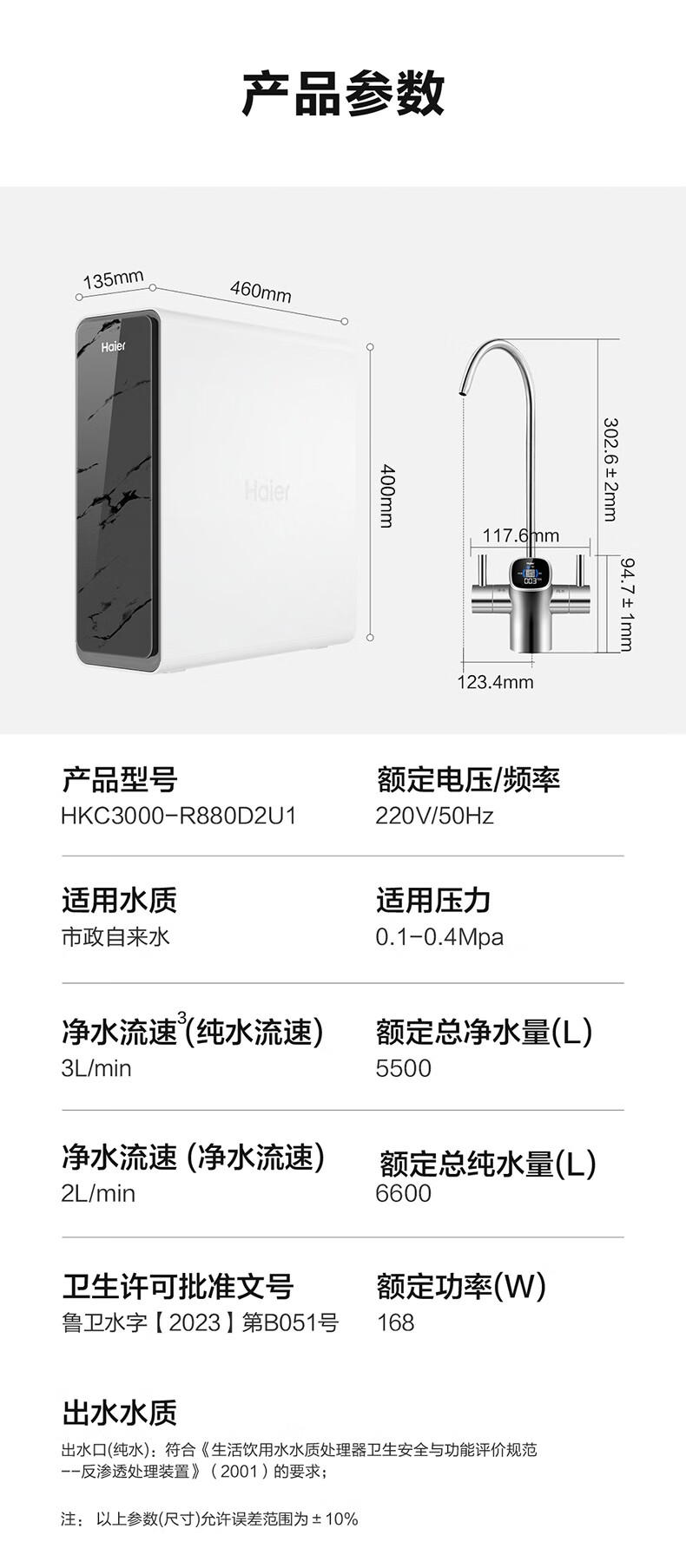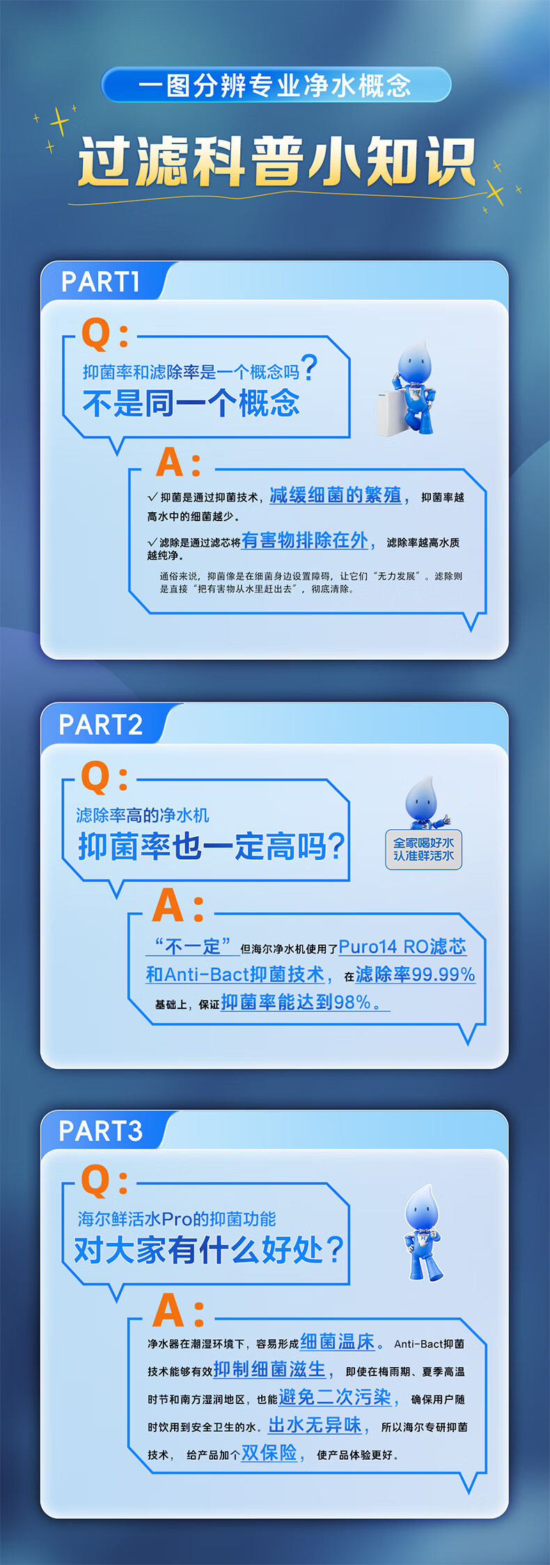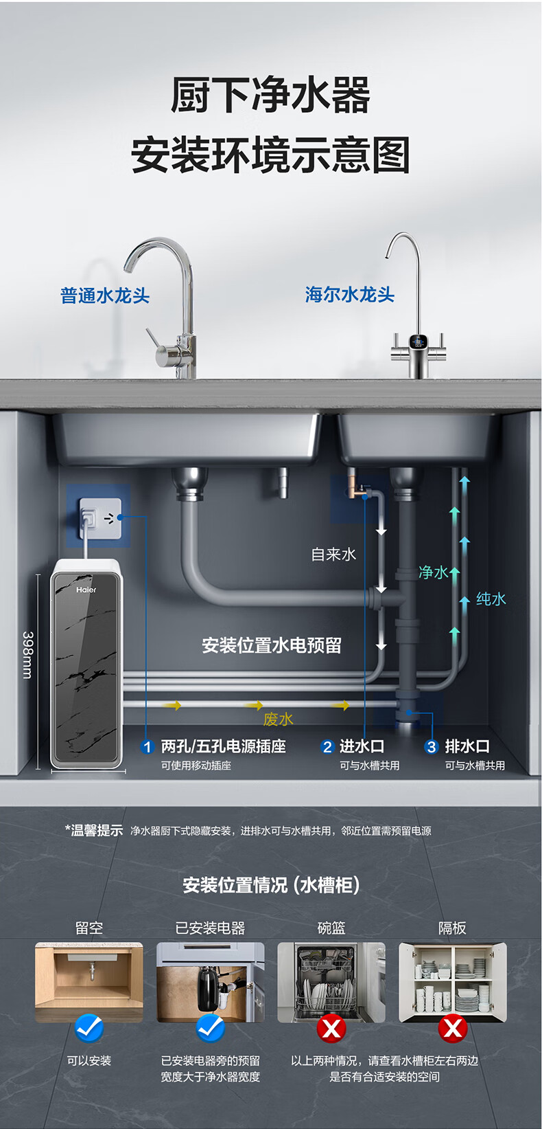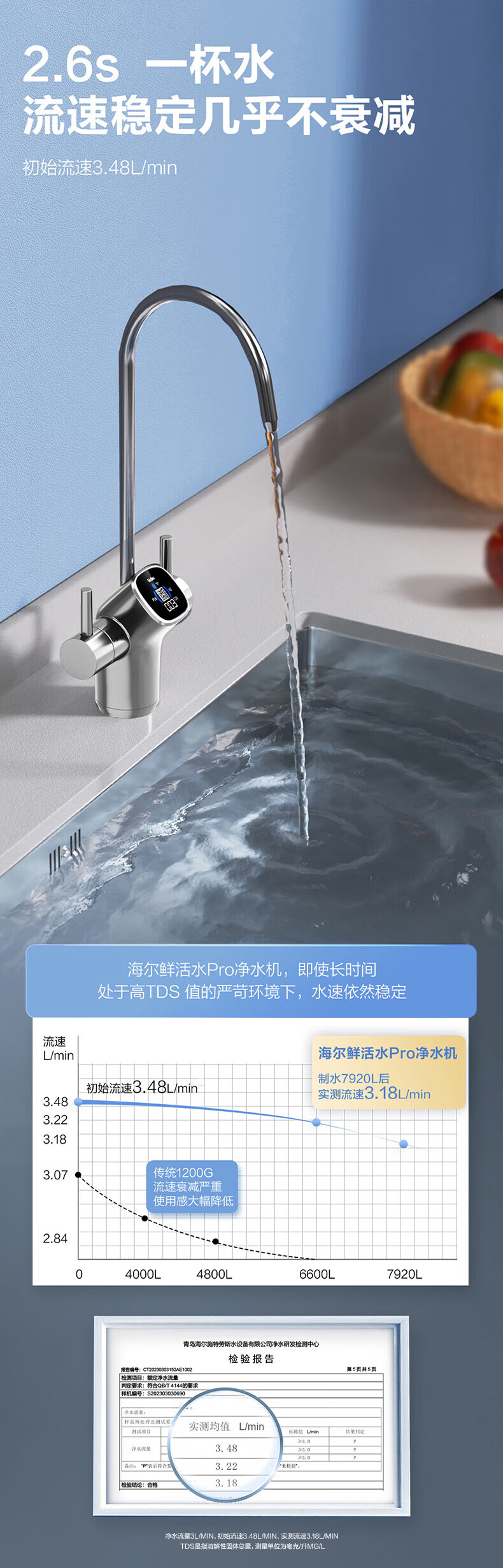 海尔(Haier)1400G鲜活水pro双出水净水器 政府补贴 家用星河厨下瞬时净水机 RO反渗透抑菌