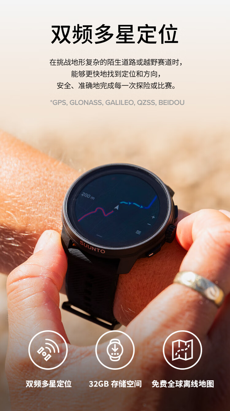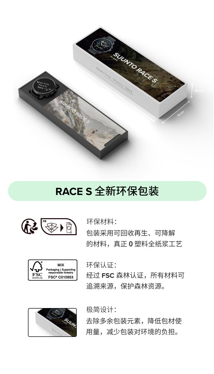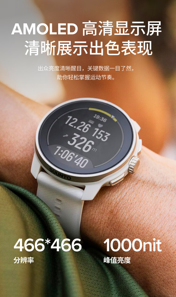颂拓(SUUNTO)RACE S 轻量户外训练腕表 专业跑步运动智能手表生日礼物 白松绿