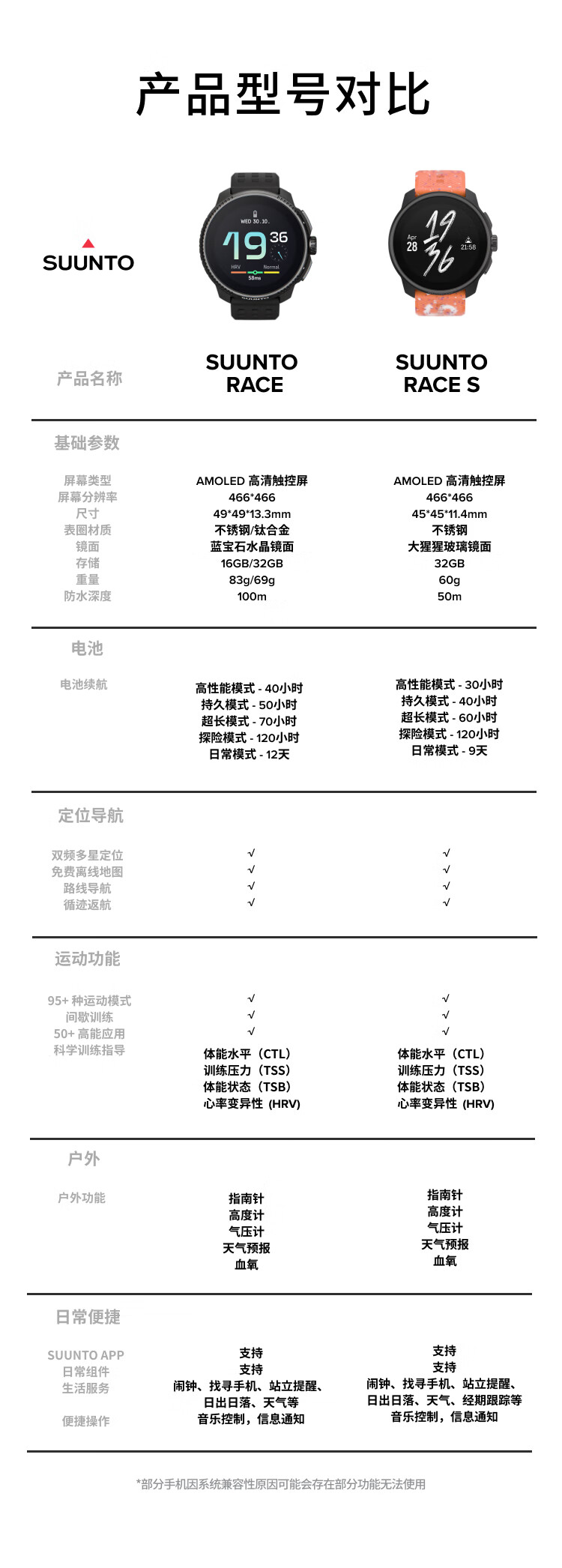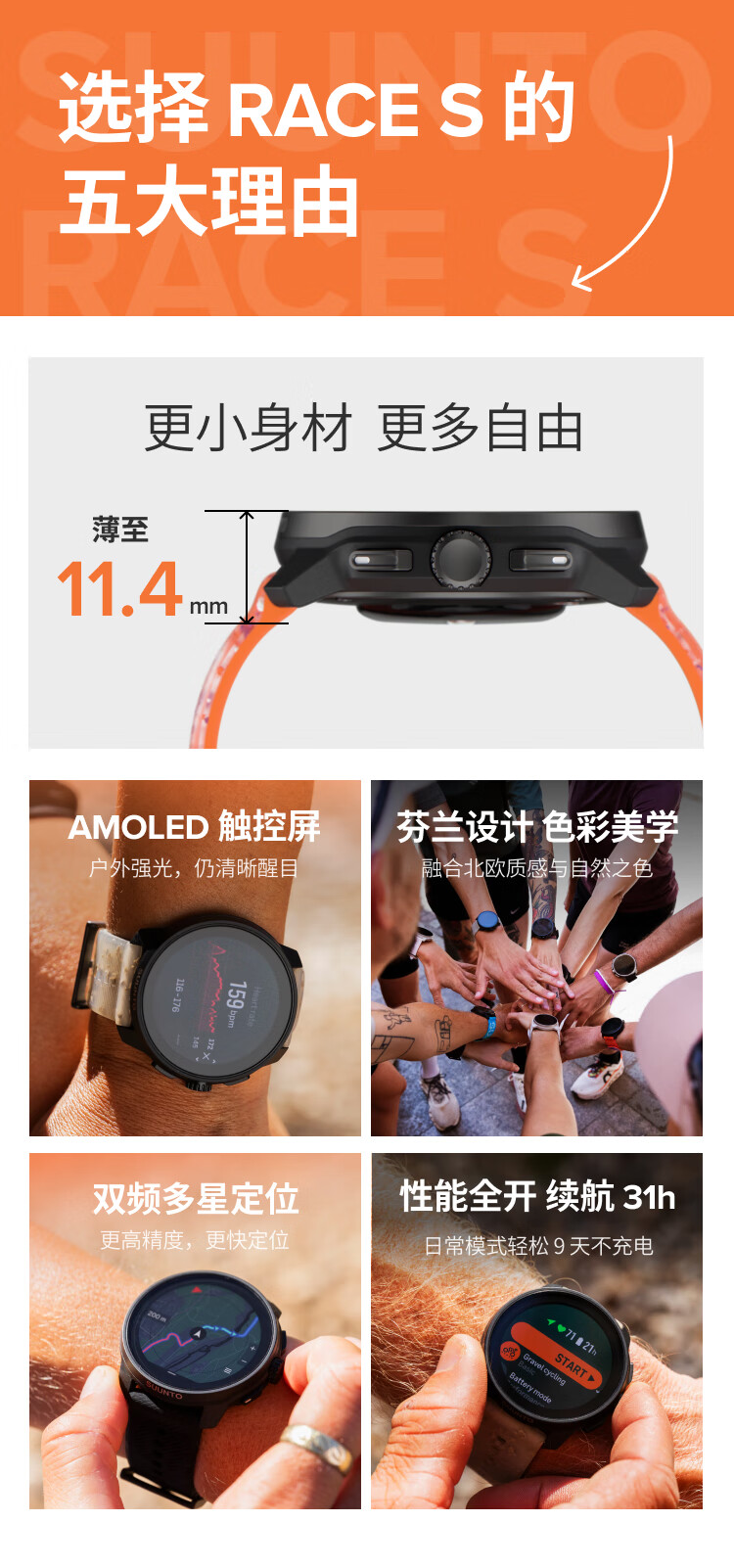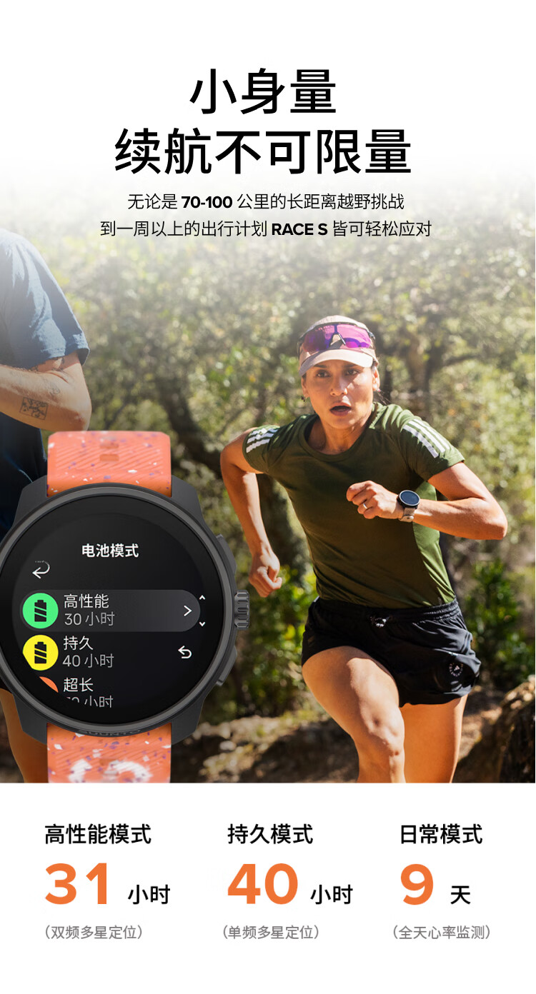 颂拓(SUUNTO)RACE S 轻量户外训练腕表 专业跑步运动智能手表生日礼物 白松绿