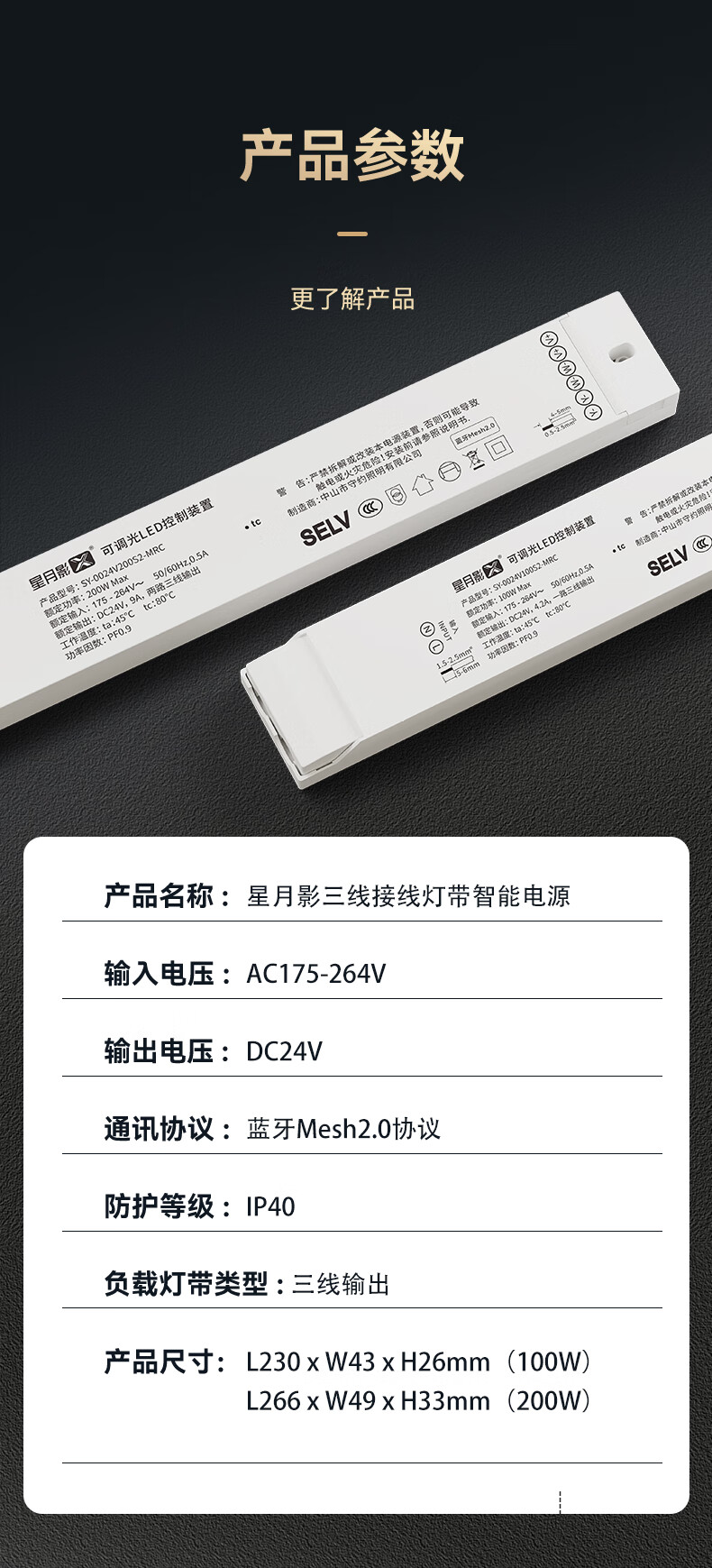 星月影Zen7三线灯带控制器已接入米家APP智能一体24V低压电源Mesh2.0 Zen7灯带智能电源100瓦【Mesh2.0】7米内使用